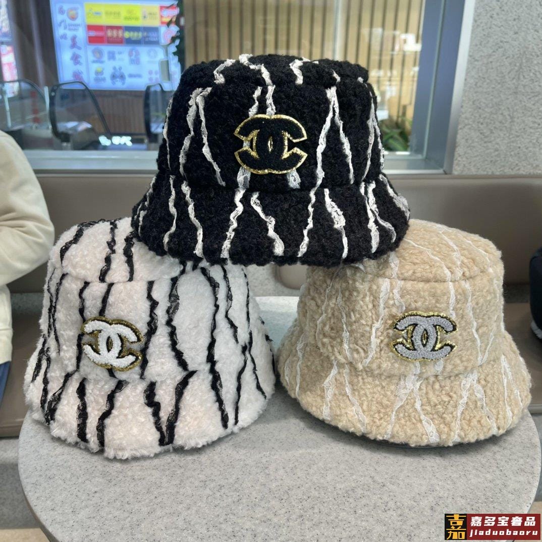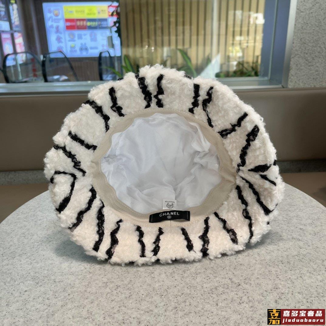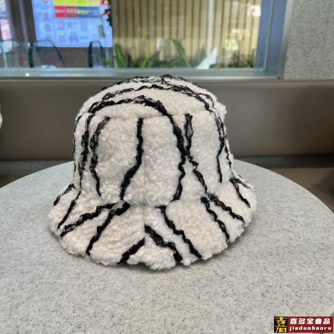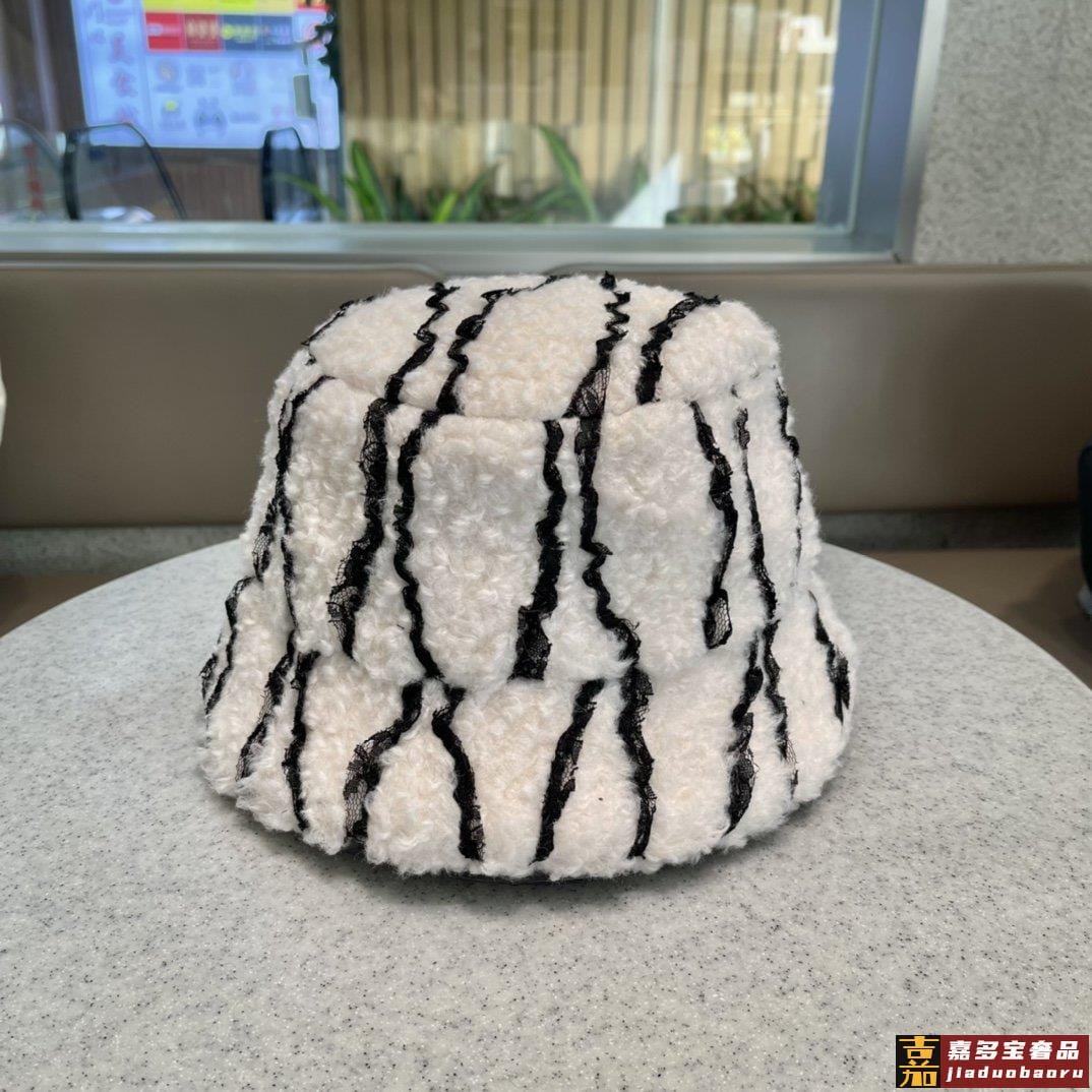 香奈儿秋冬新款保暖加厚防寒韩版条纹渔夫帽羊绒毛网红爆款男女同
