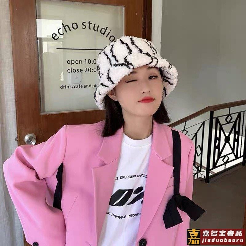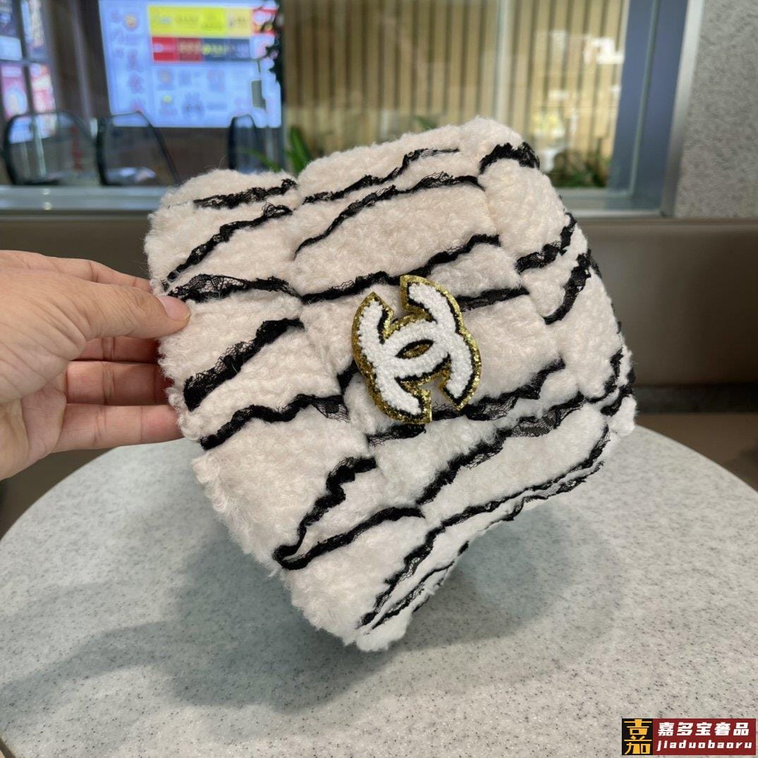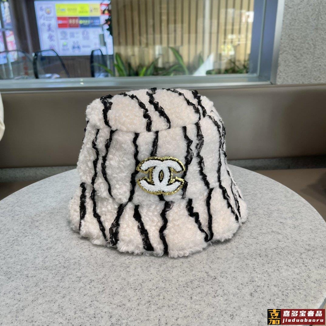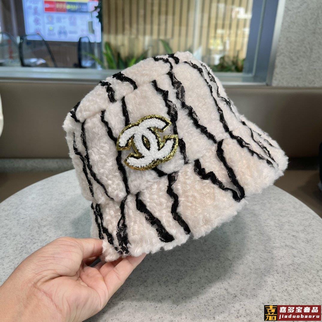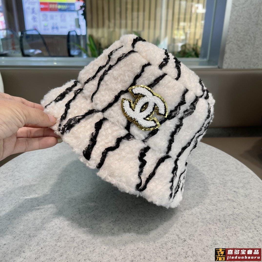 香奈儿秋冬新款保暖加厚防寒韩版条纹渔夫帽羊绒毛网红爆款男女同
