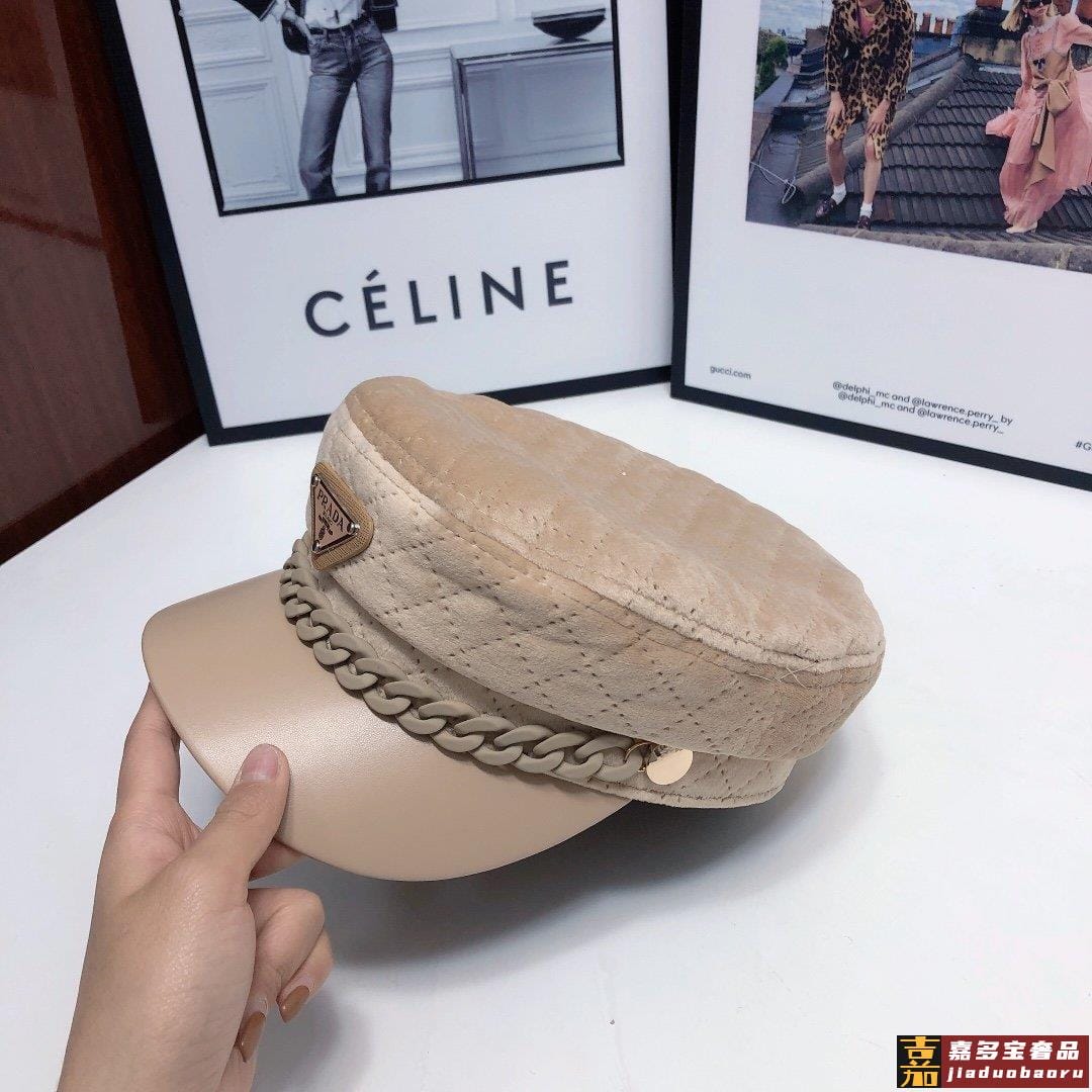 普拉达秋冬新款丝绒大牌军帽新款上架超好搭配赶紧入手吧