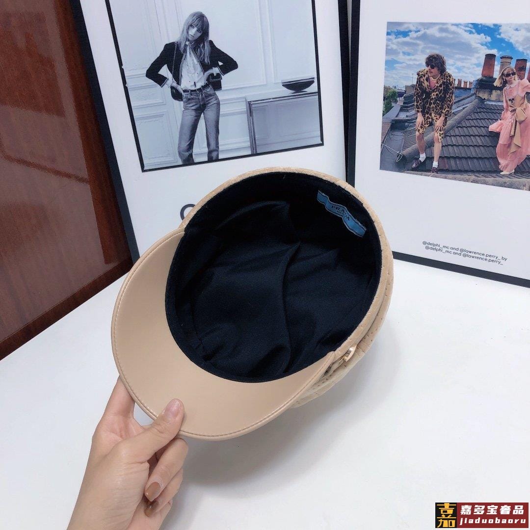 普拉达豹纹贝雷帽洗水皮包边秋季百搭水貂绒面料头围
