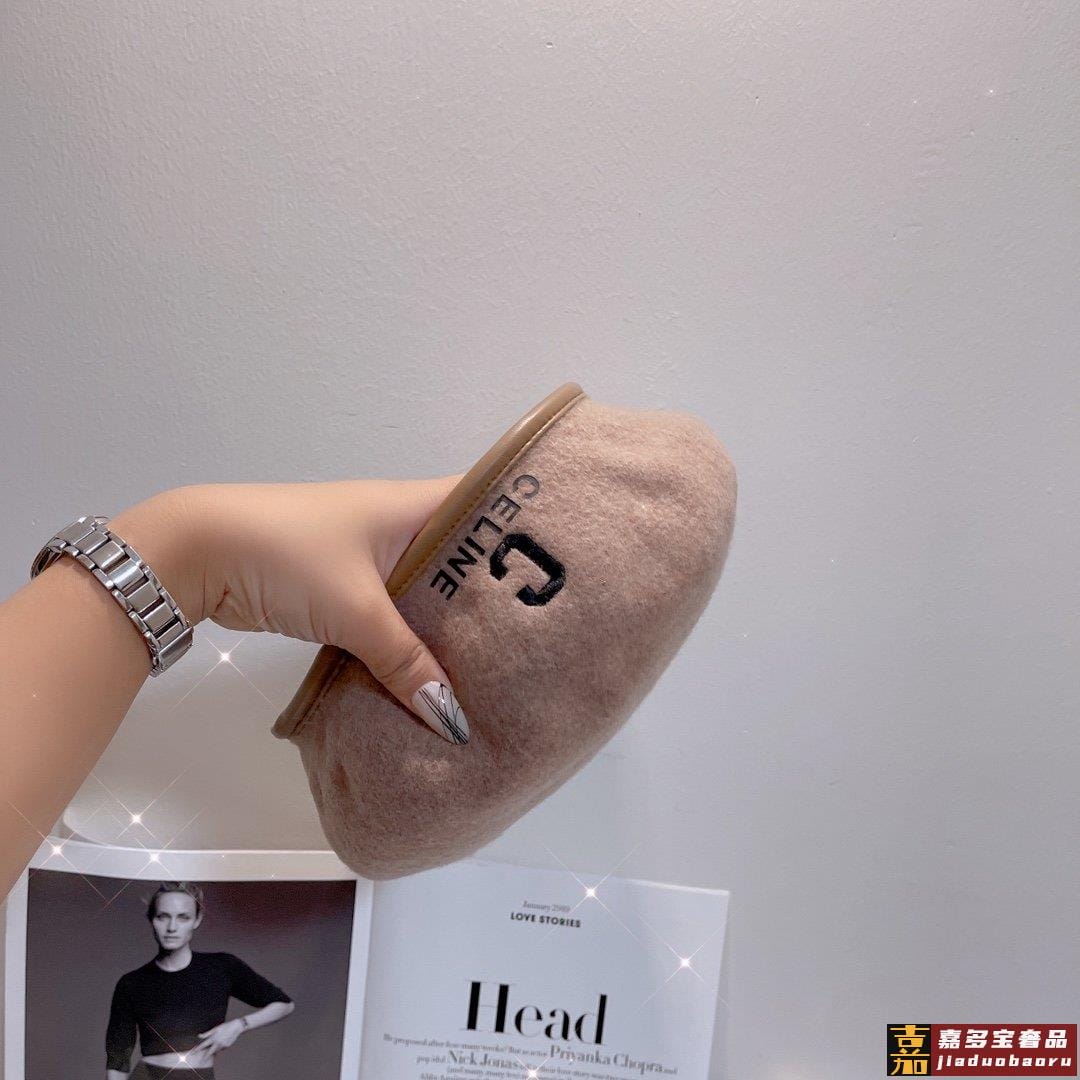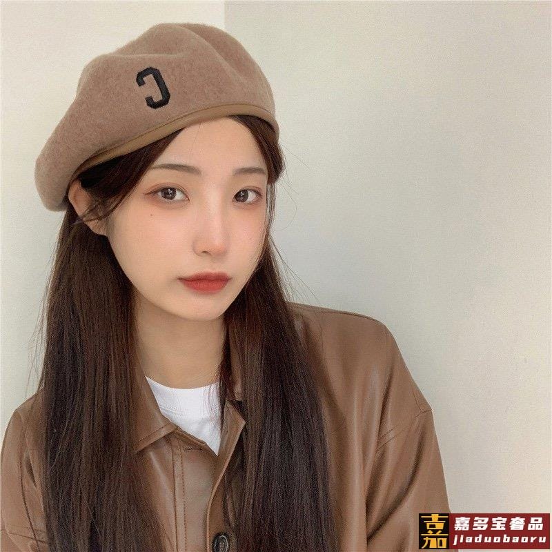 秋冬新款简约刺绣羊毛贝雷帽羊毛皮边彩色贝雷很俏皮的款式可爱甜