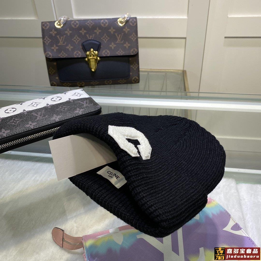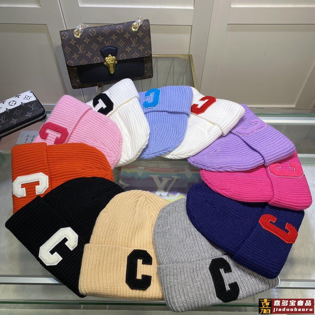 秋冬新款字母羊毛针织冷帽颜色橄榄绿黑色白色蓝色焦糖卡均码现货
