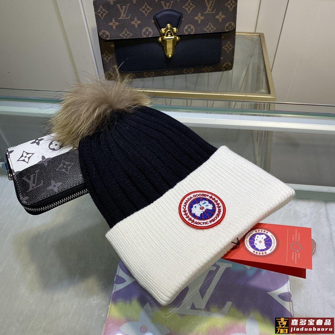 配防尘袋加拿大鹅配毛球羊毛针织官网最新羊毛针织帽官网原单复刻