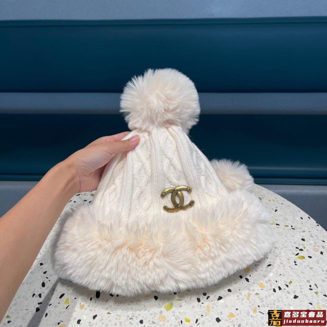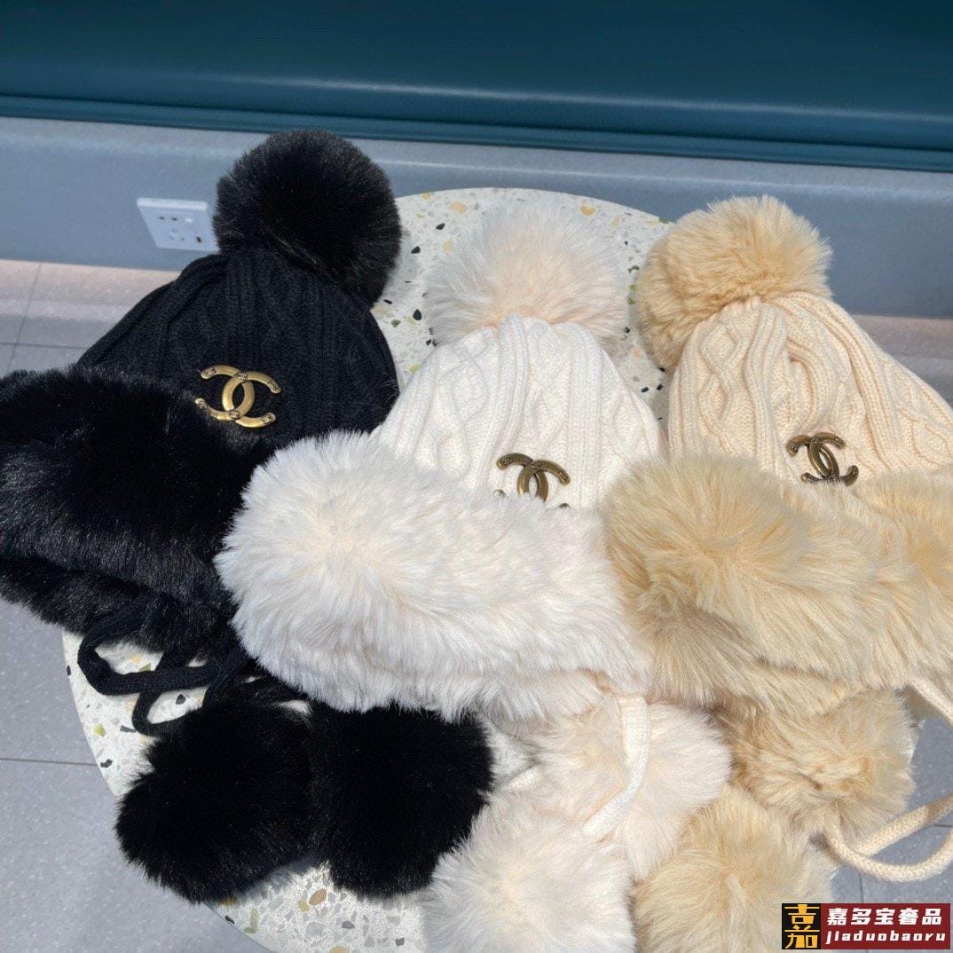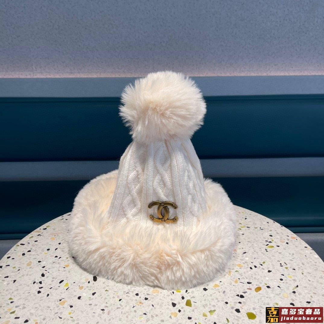 香奈儿新款毛线帽子女士冬季可爱毛球套头帽保暖加绒护耳套头雷锋