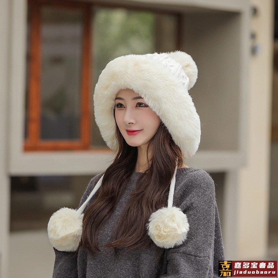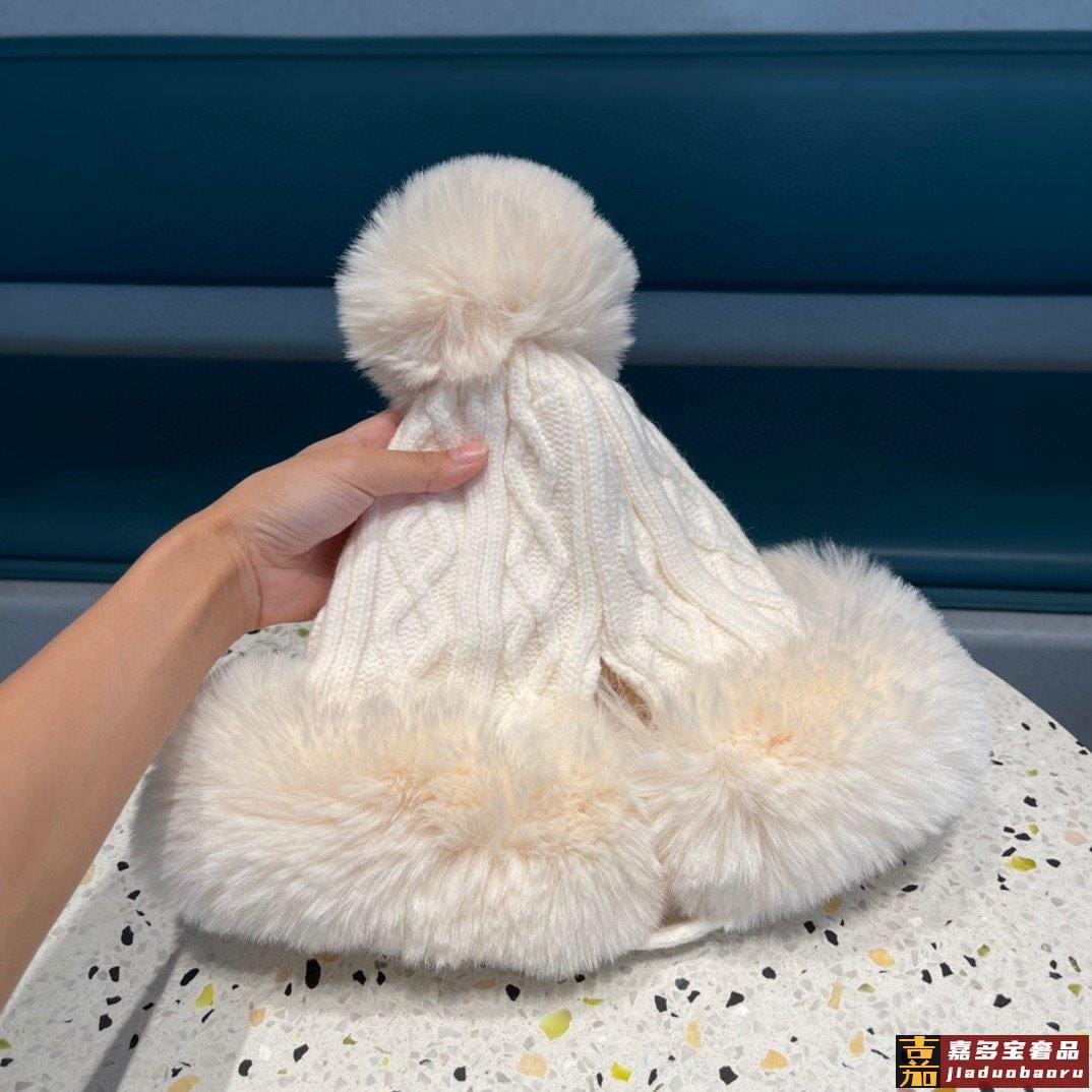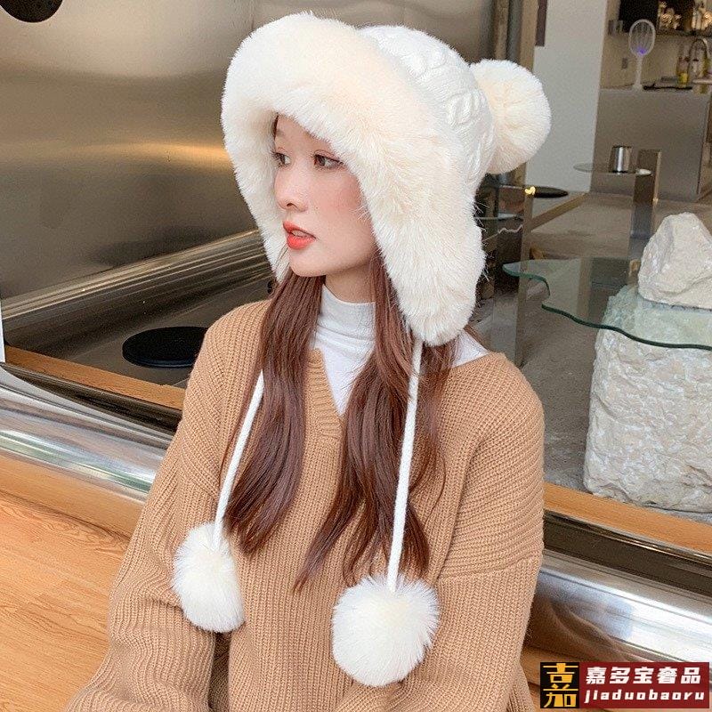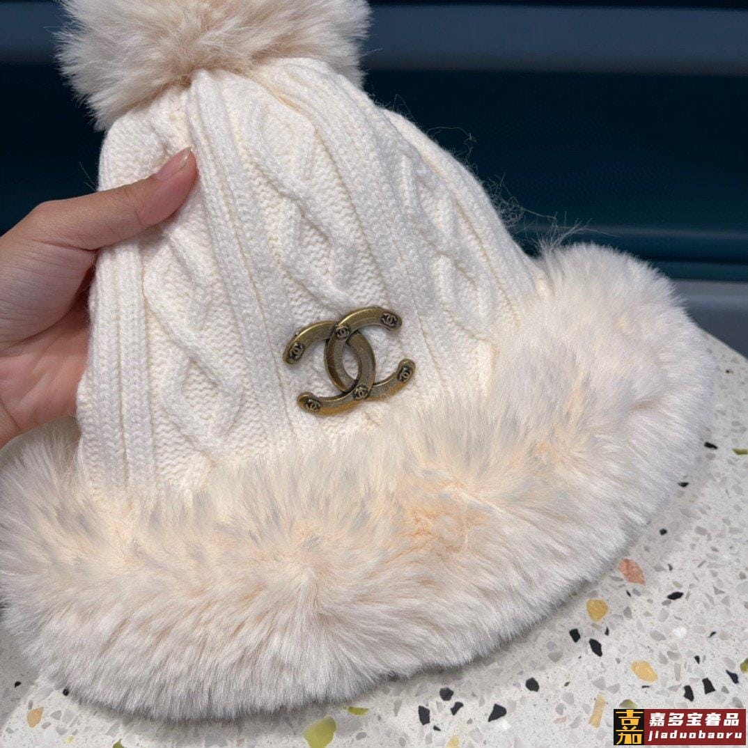香奈儿新款毛线帽子女士冬季可爱毛球套头帽保暖加绒护耳套头雷锋
