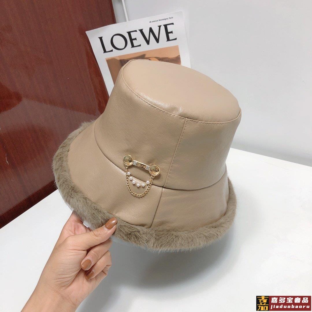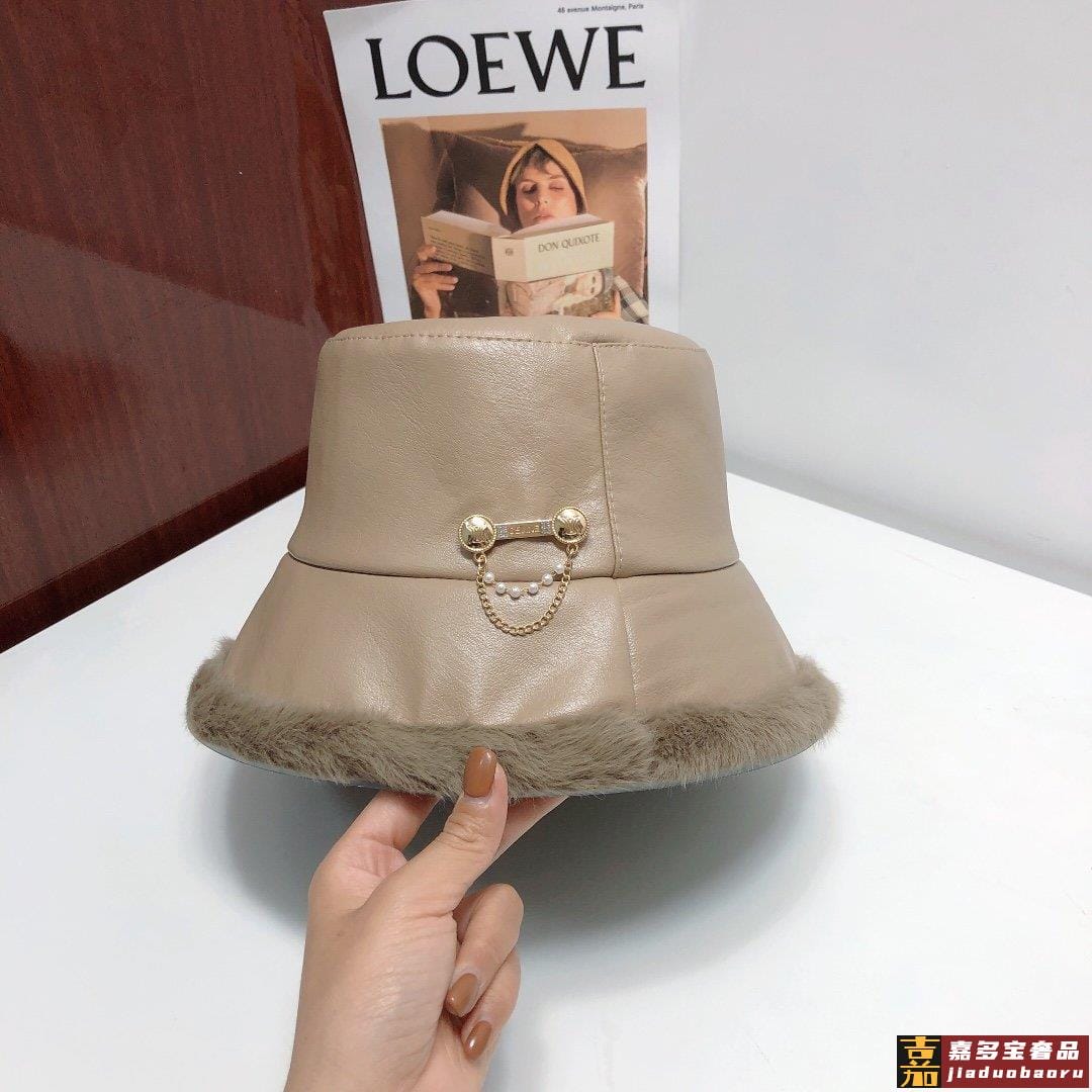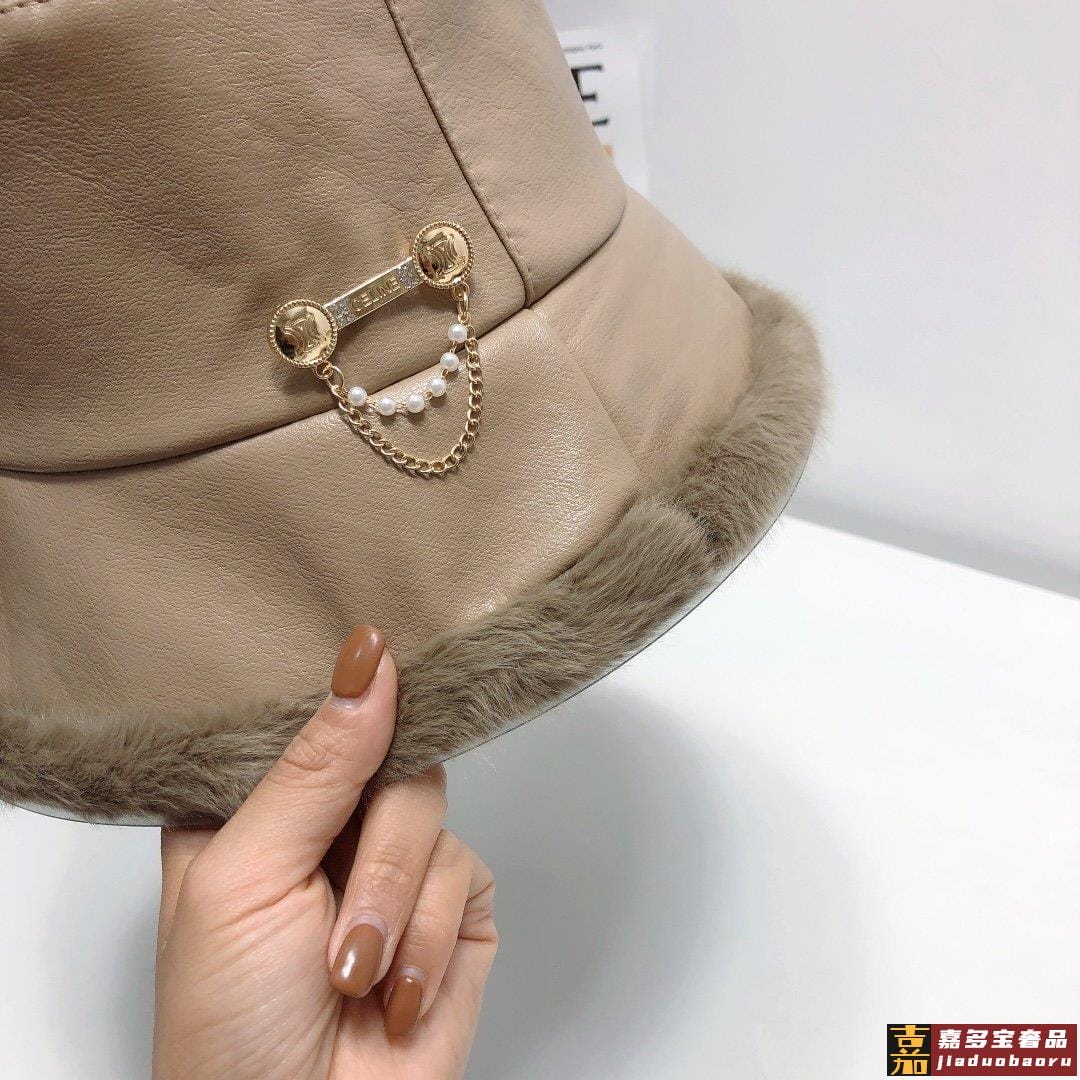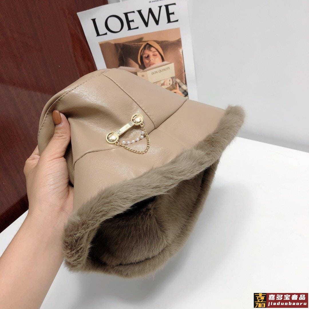 思琳秋冬款仿兔毛拼皮桶帽渔夫帽最强凹造型街拍风可甜可盐桶帽巨