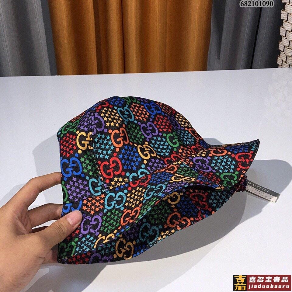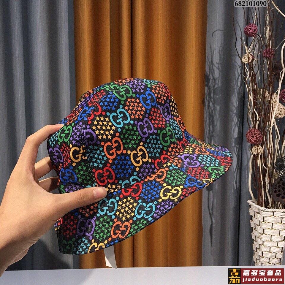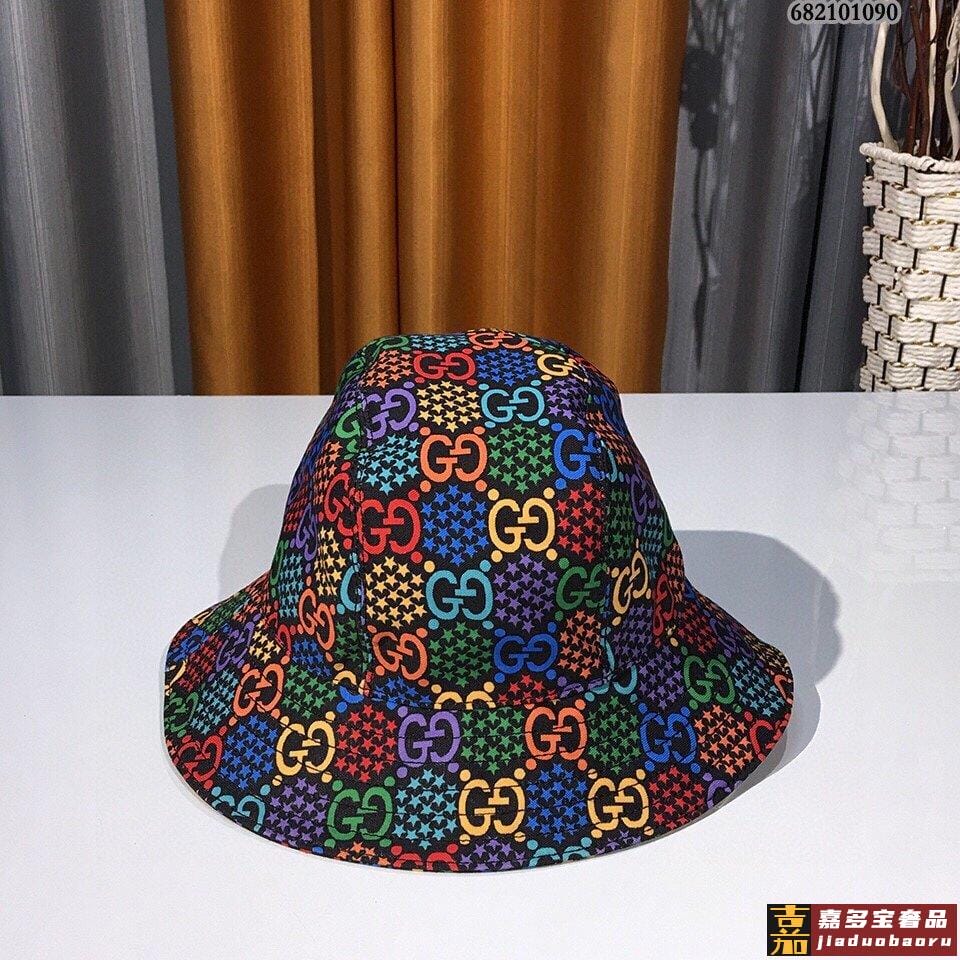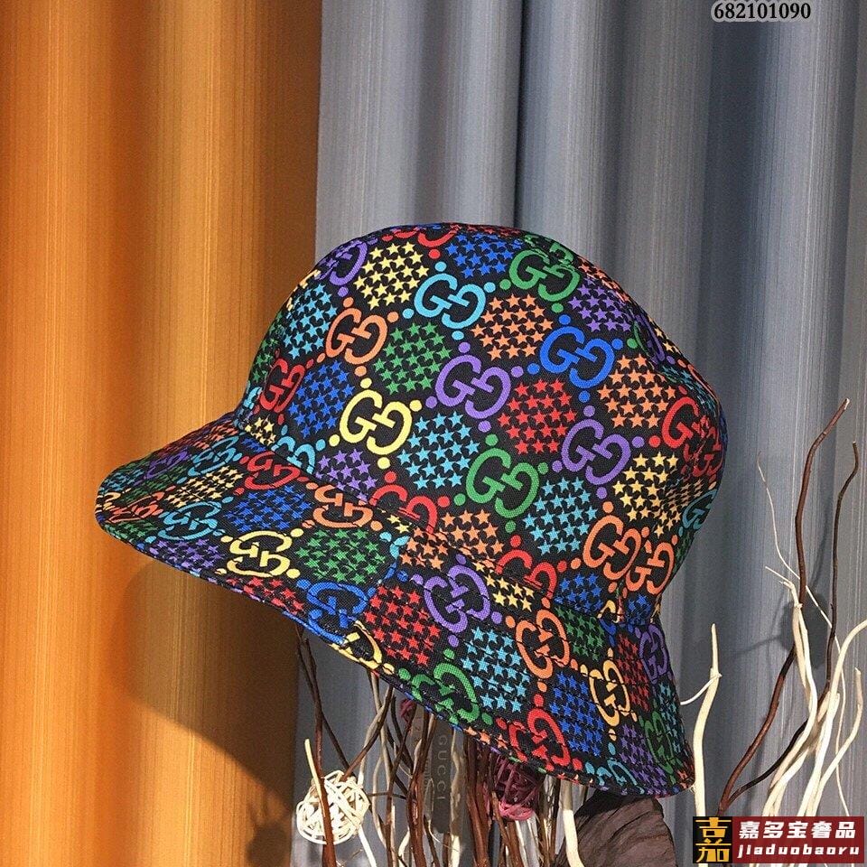古奇新款早春女士迷幻印花魔幻跳跳糖时尚渔夫帽活力时尚色系男女