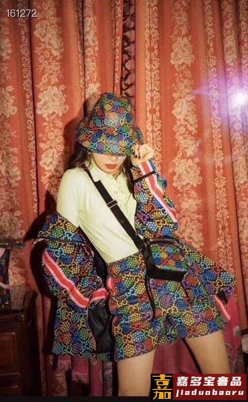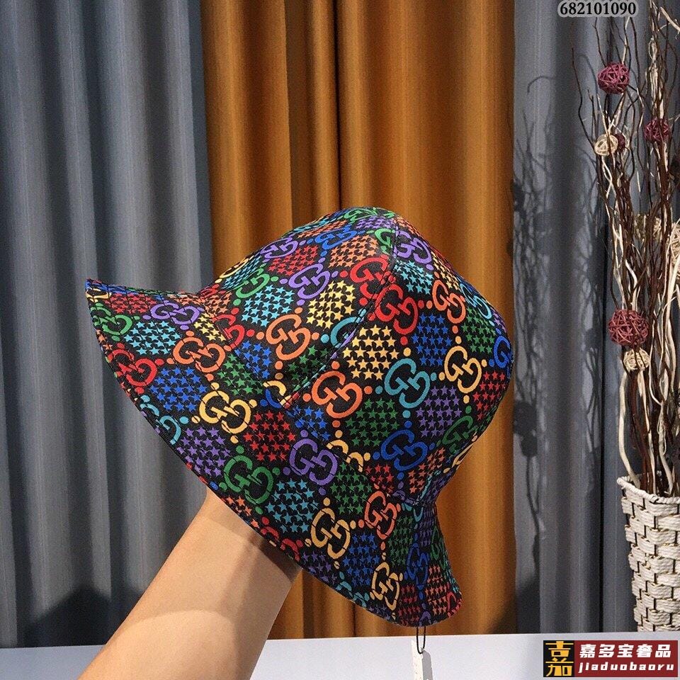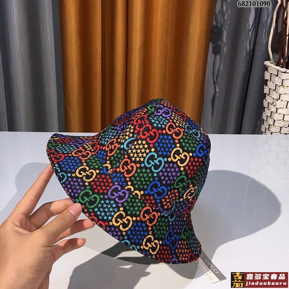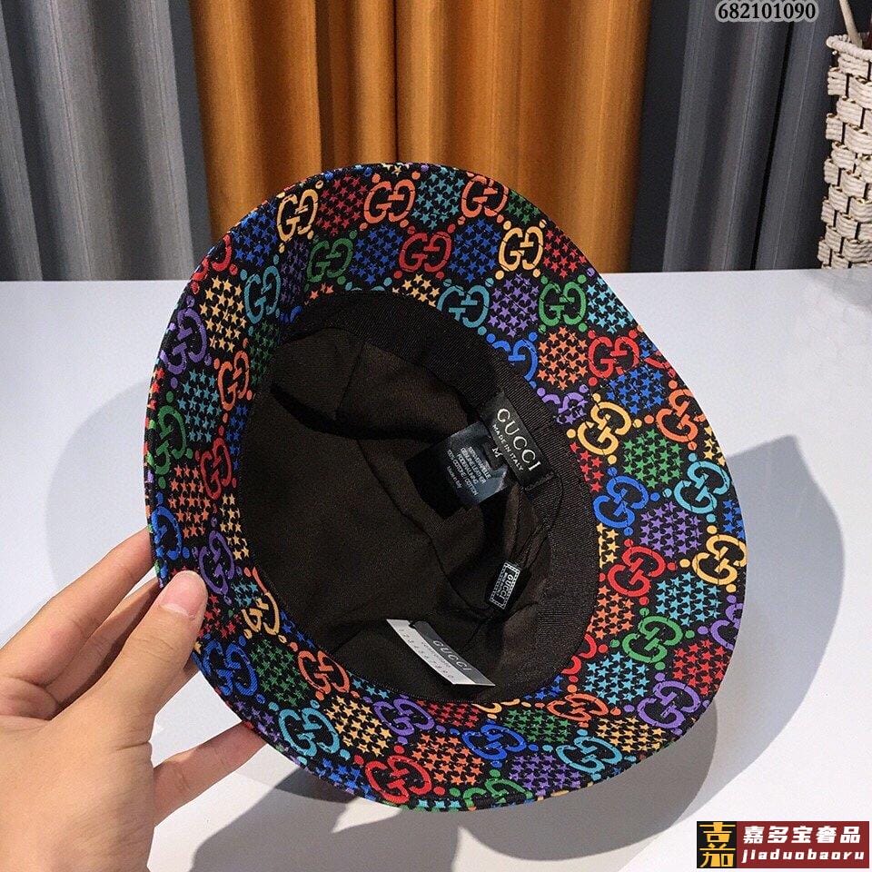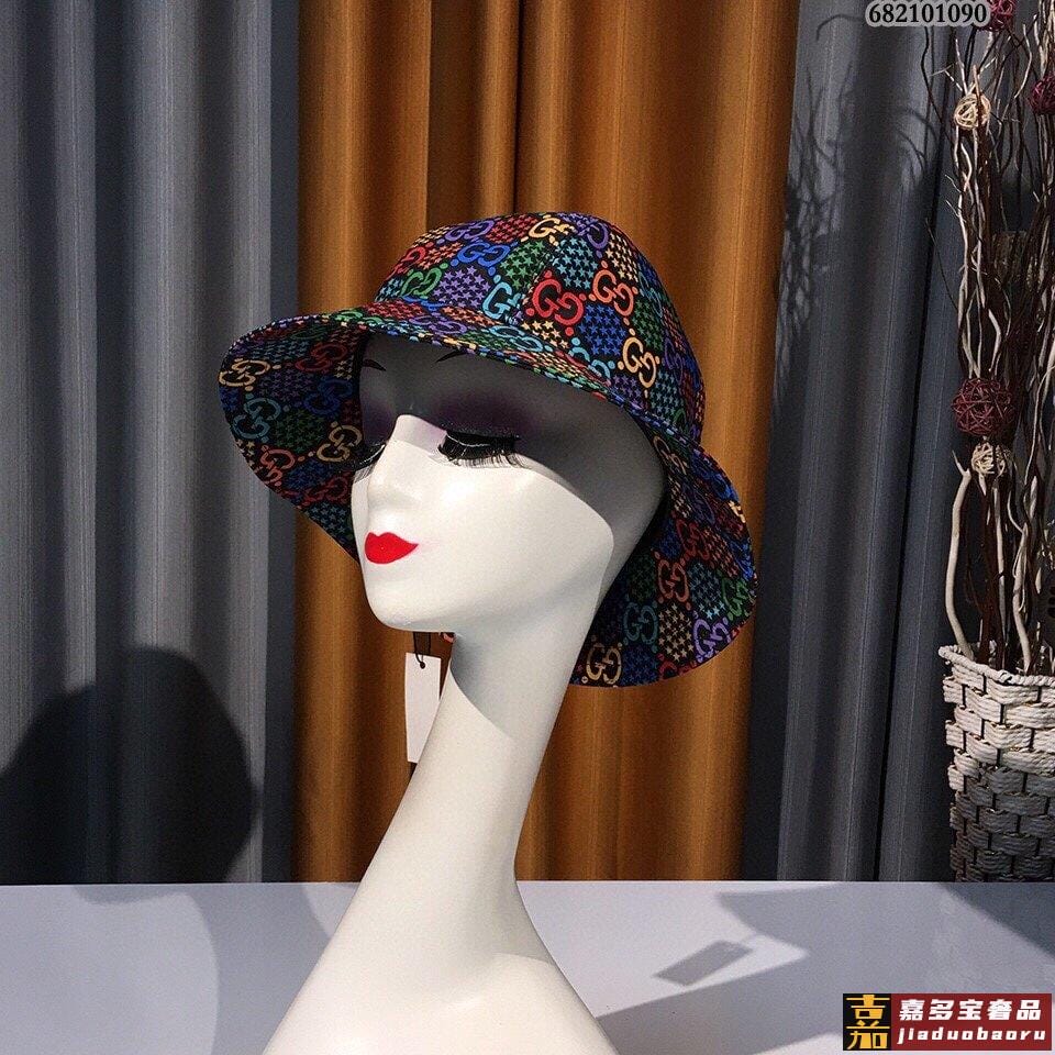 古奇新款早春女士迷幻印花魔幻跳跳糖时尚渔夫帽活力时尚色系男女