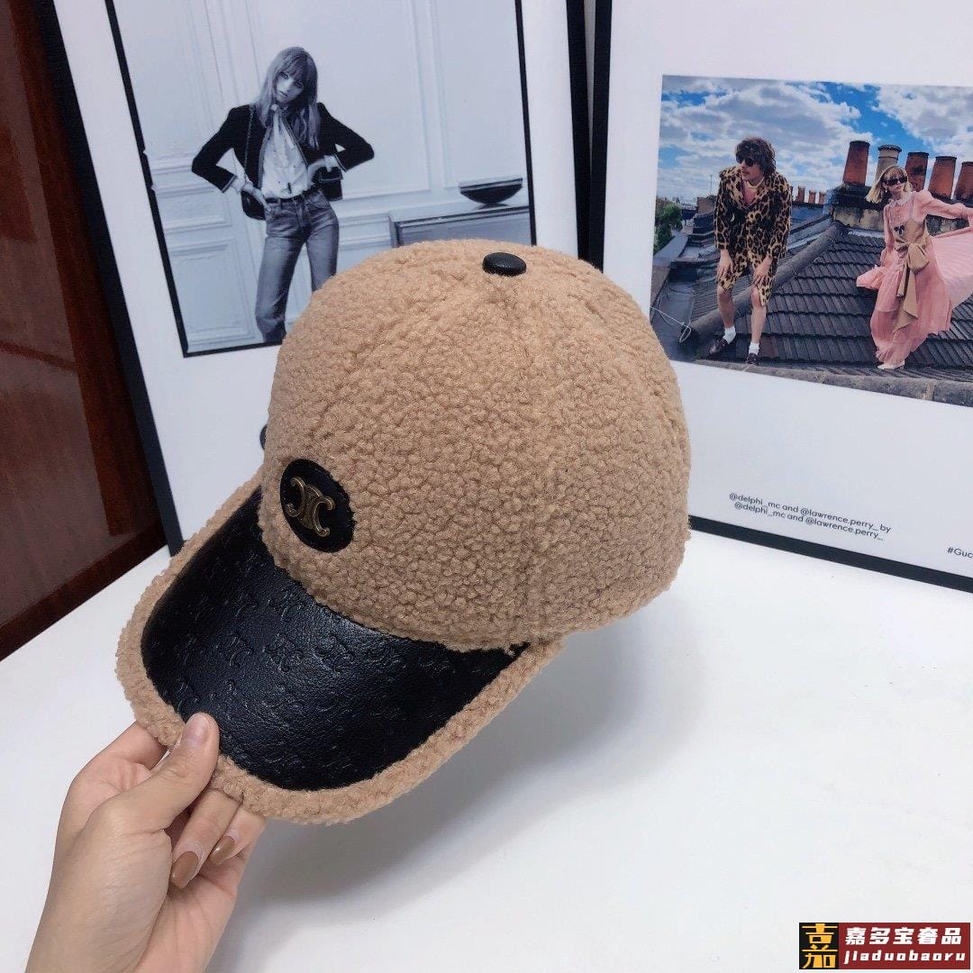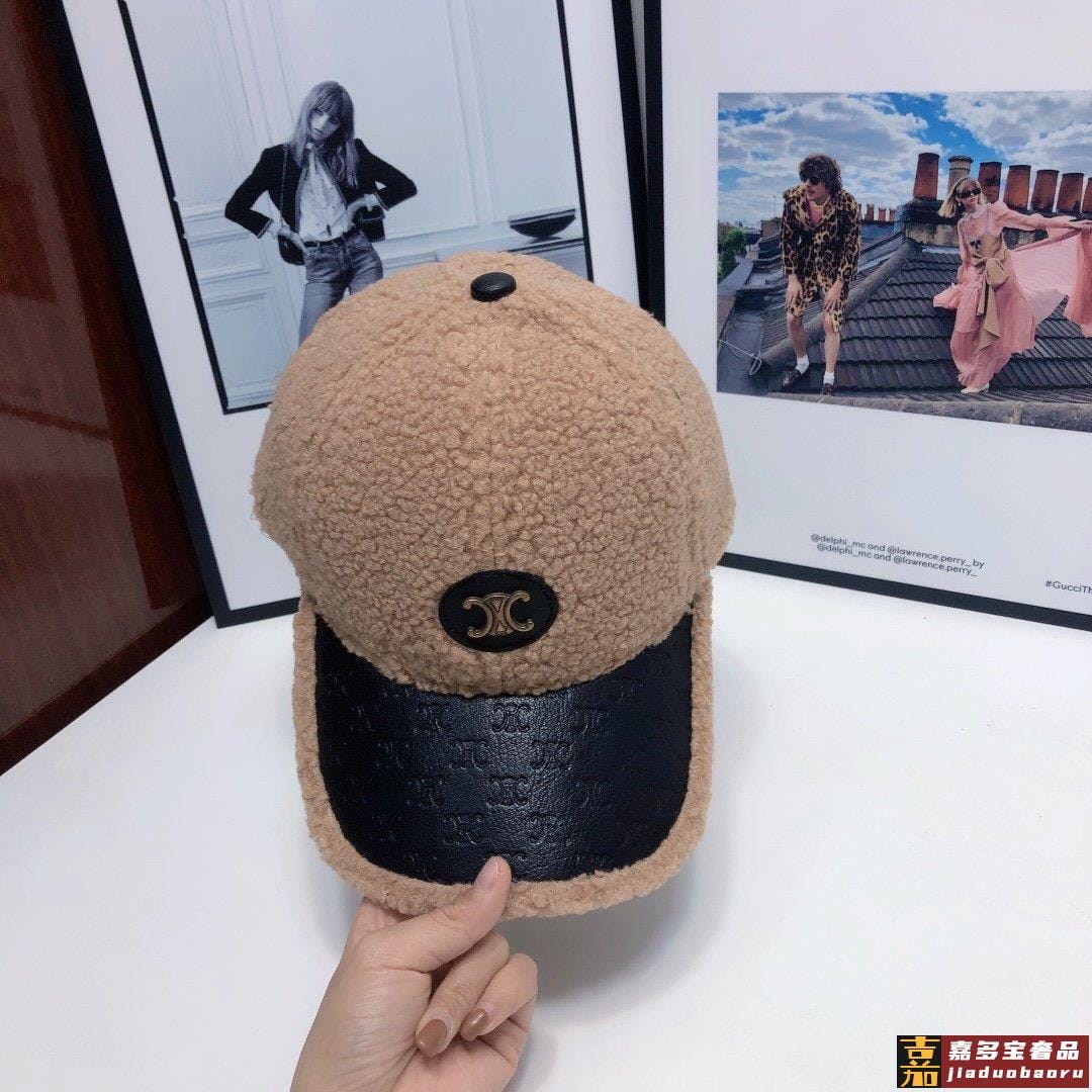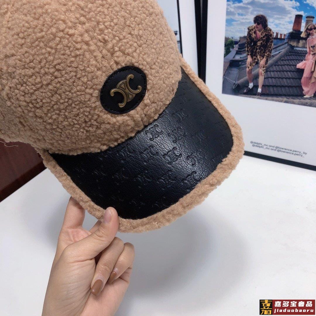 赛琳秋冬款羔毛拼皮棒球帽可爱小泰迪卷超减龄羔毛融入搭配立体标