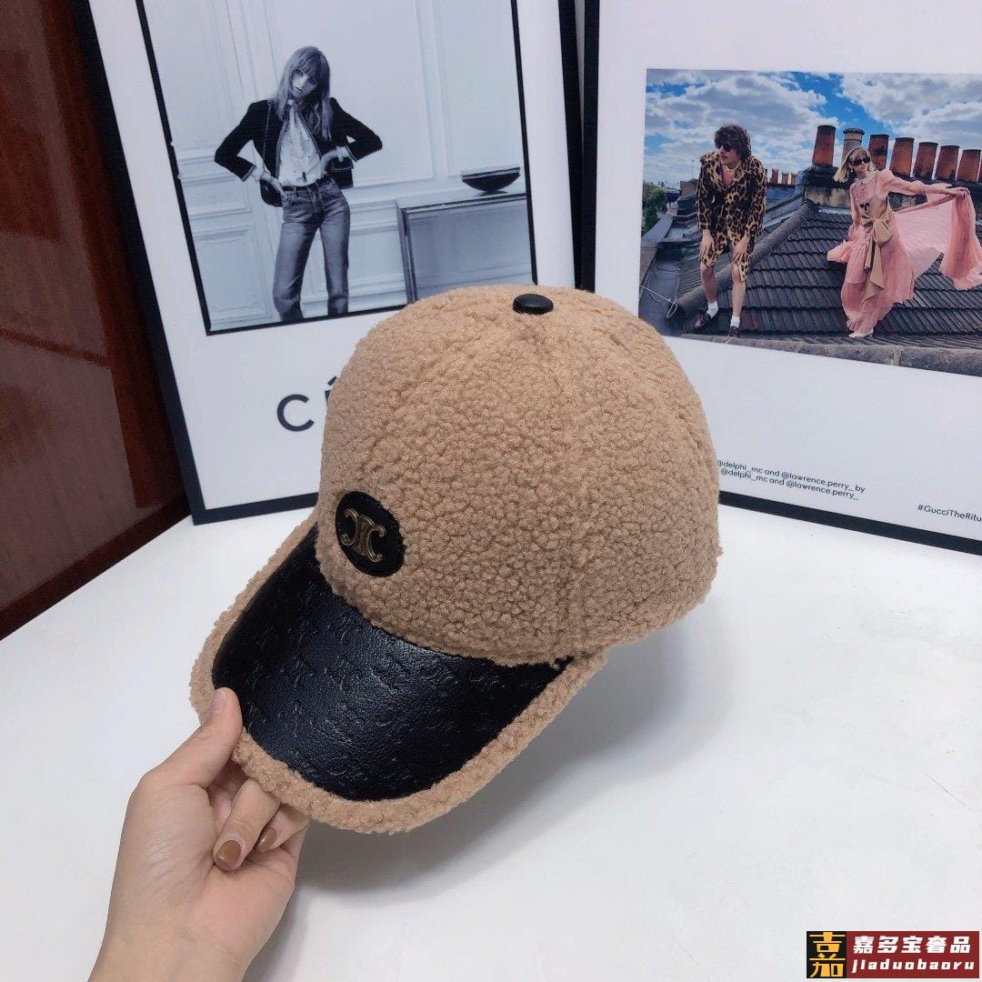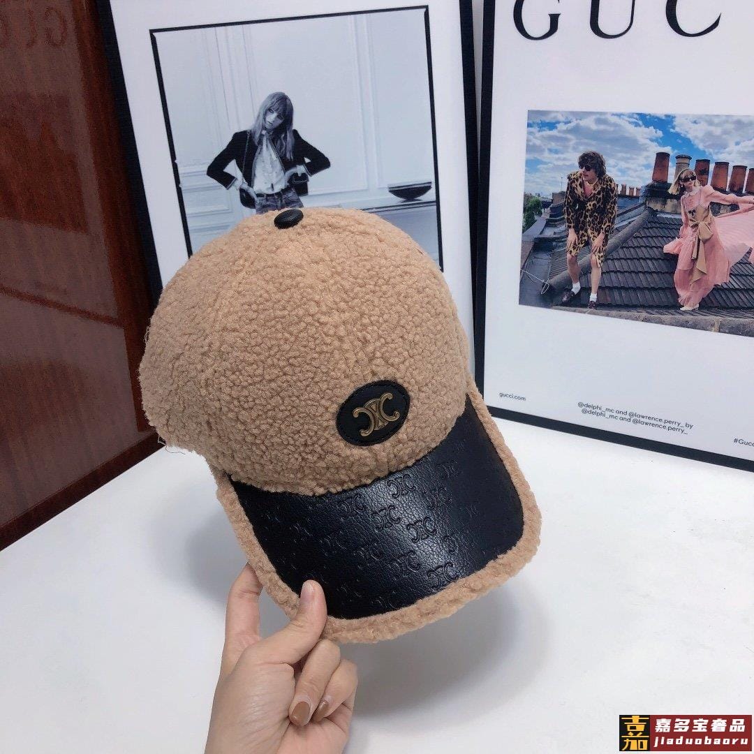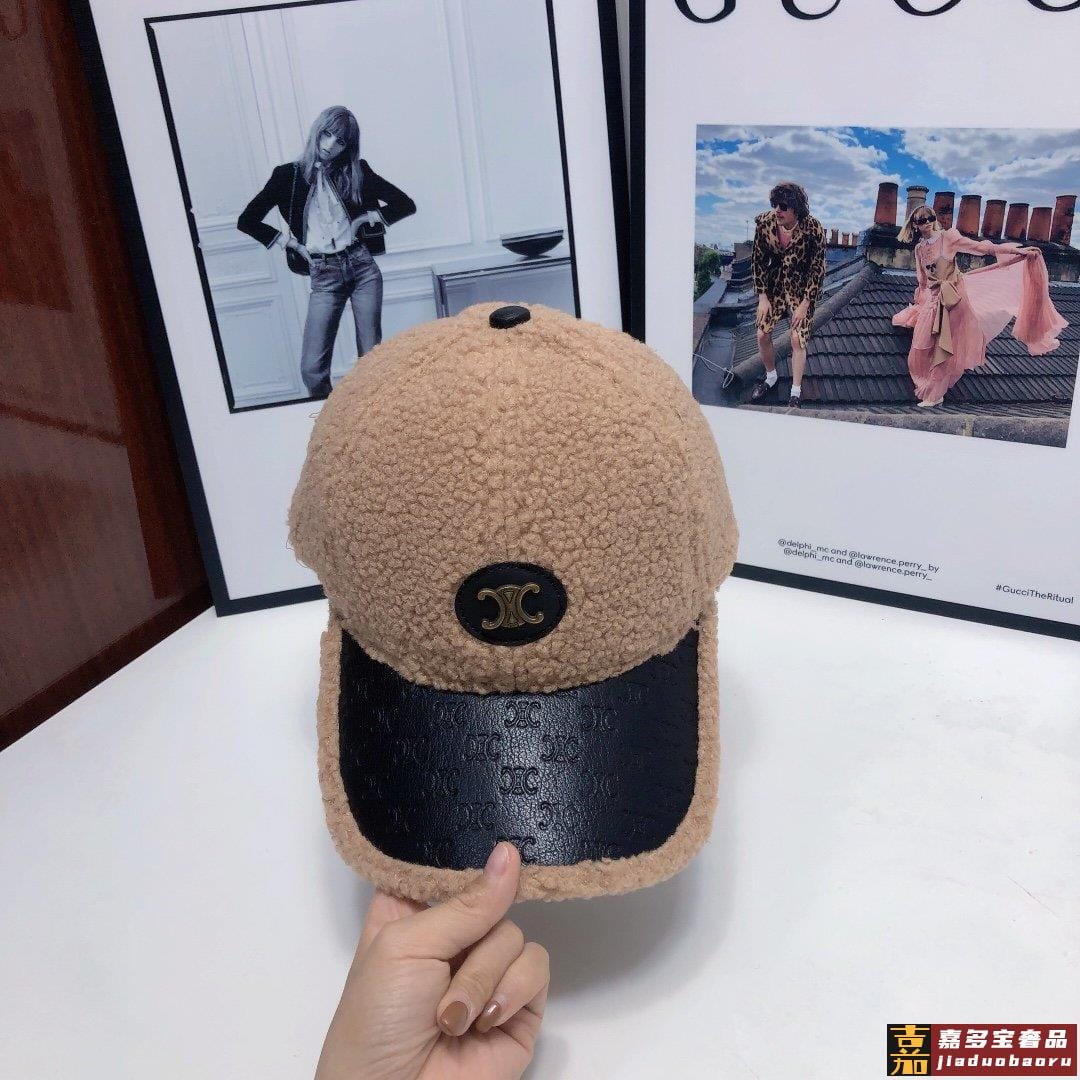 赛琳秋冬款羔毛拼皮棒球帽可爱小泰迪卷超减龄羔毛融入搭配立体标