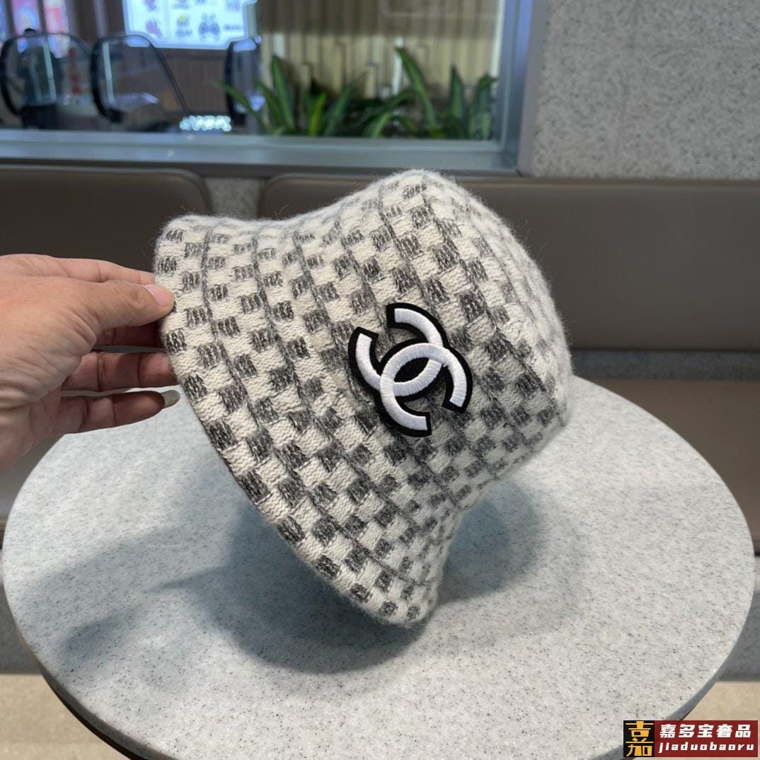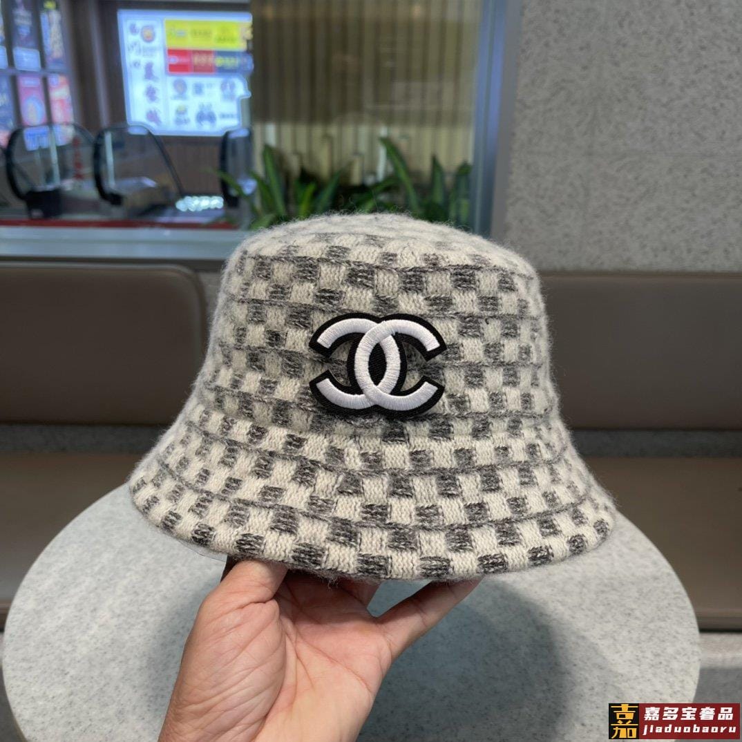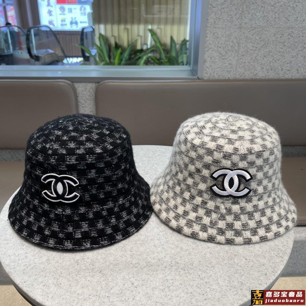 香奈儿秋冬新款香奈儿刺绣羊羔毛加厚保暖款渔夫帽高级网红韩版帽
