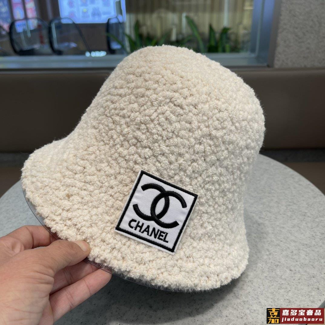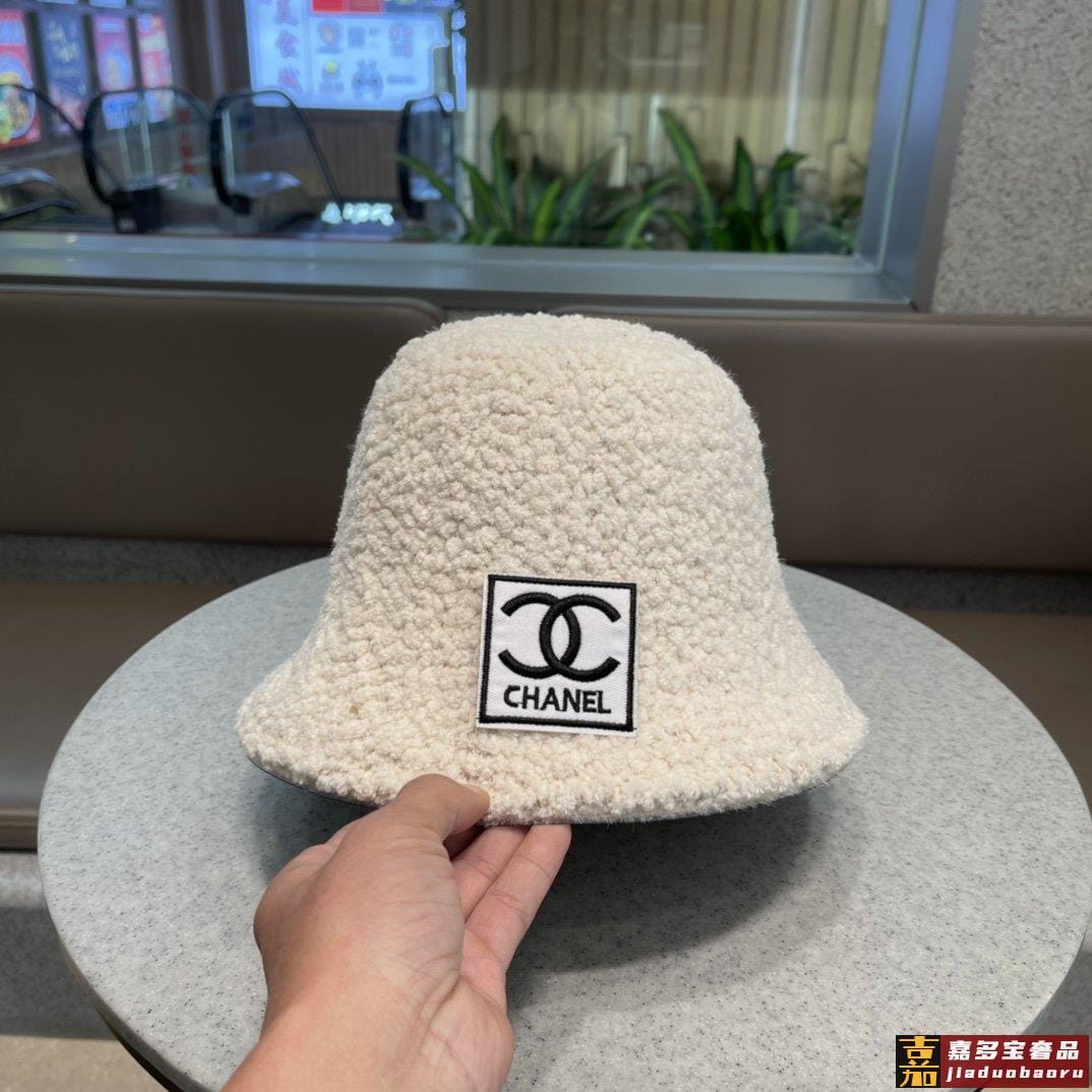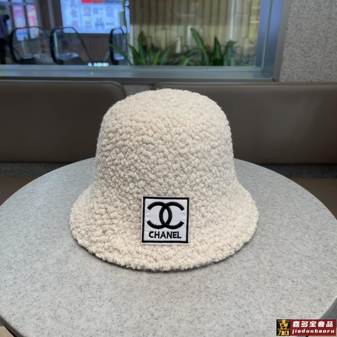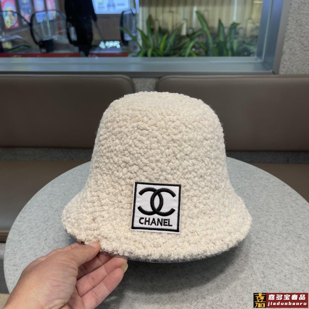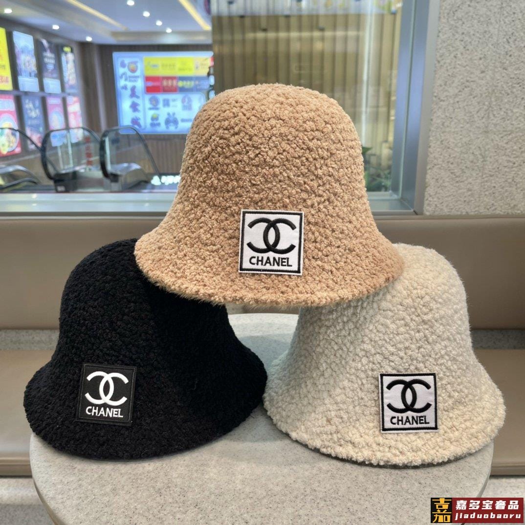 香奈儿秋冬新款香奈儿刺绣羊羔毛加厚保暖款渔夫帽高级网红韩版帽
