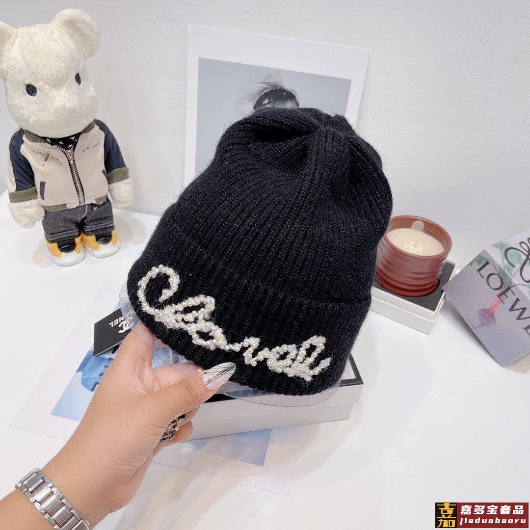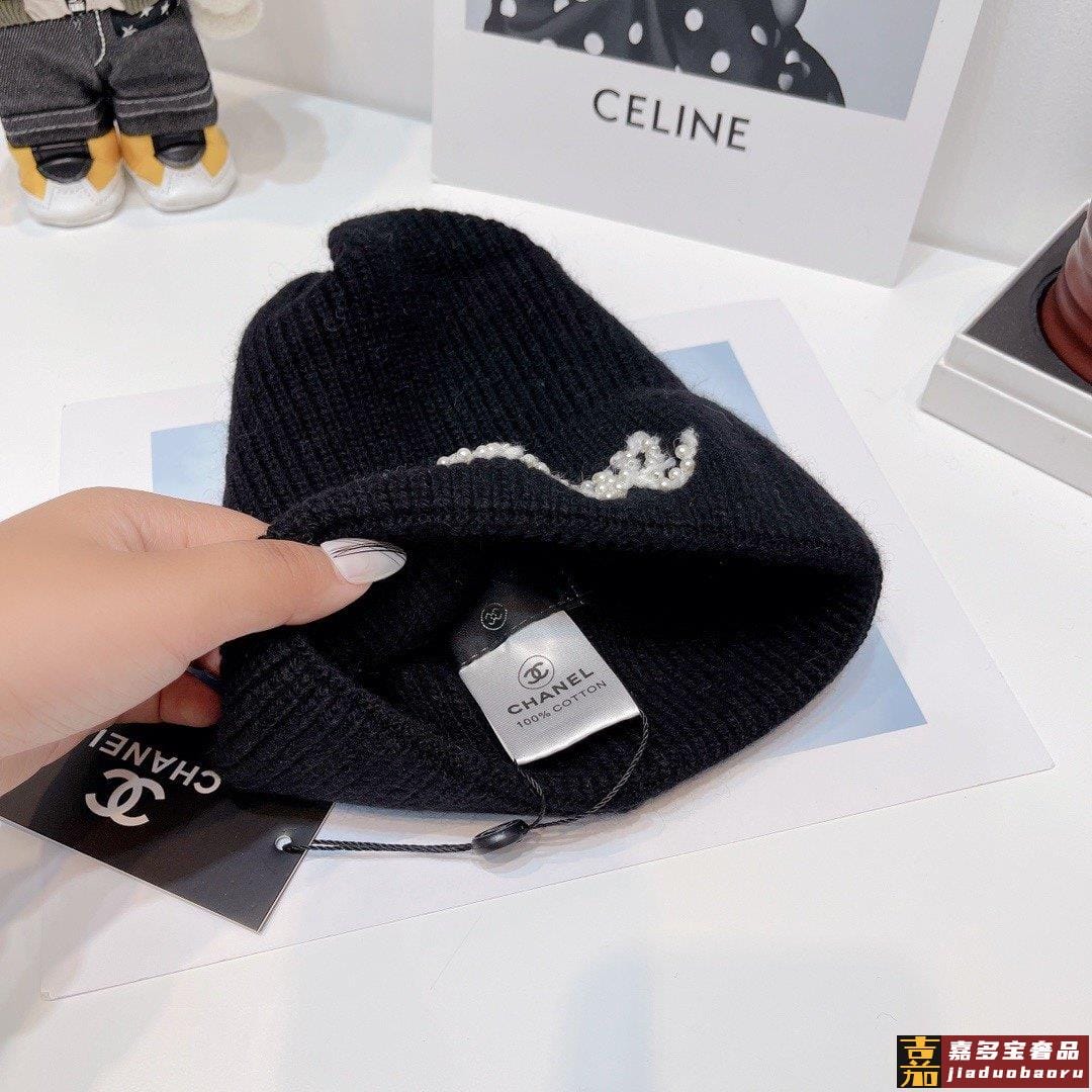 小香秋冬专柜新款绣珠标志明星时尚达人爆款针织帽蓬松松软针织手