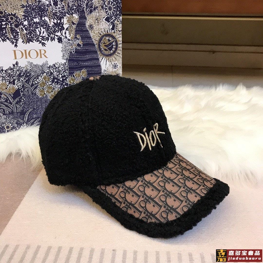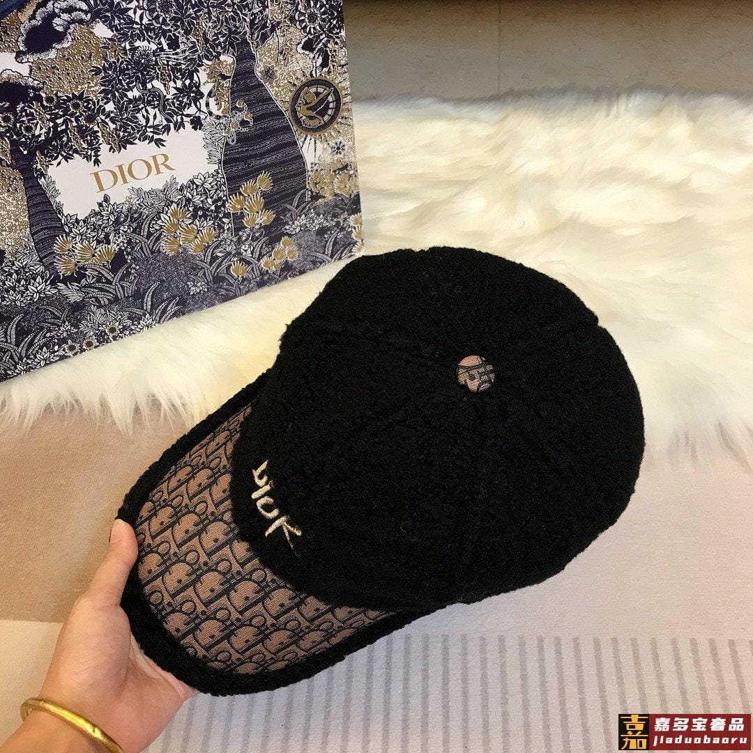 迪奥新款羊羔毛棒球帽金线立体刺绣高品质定制羊毛超酷帅气时尚街