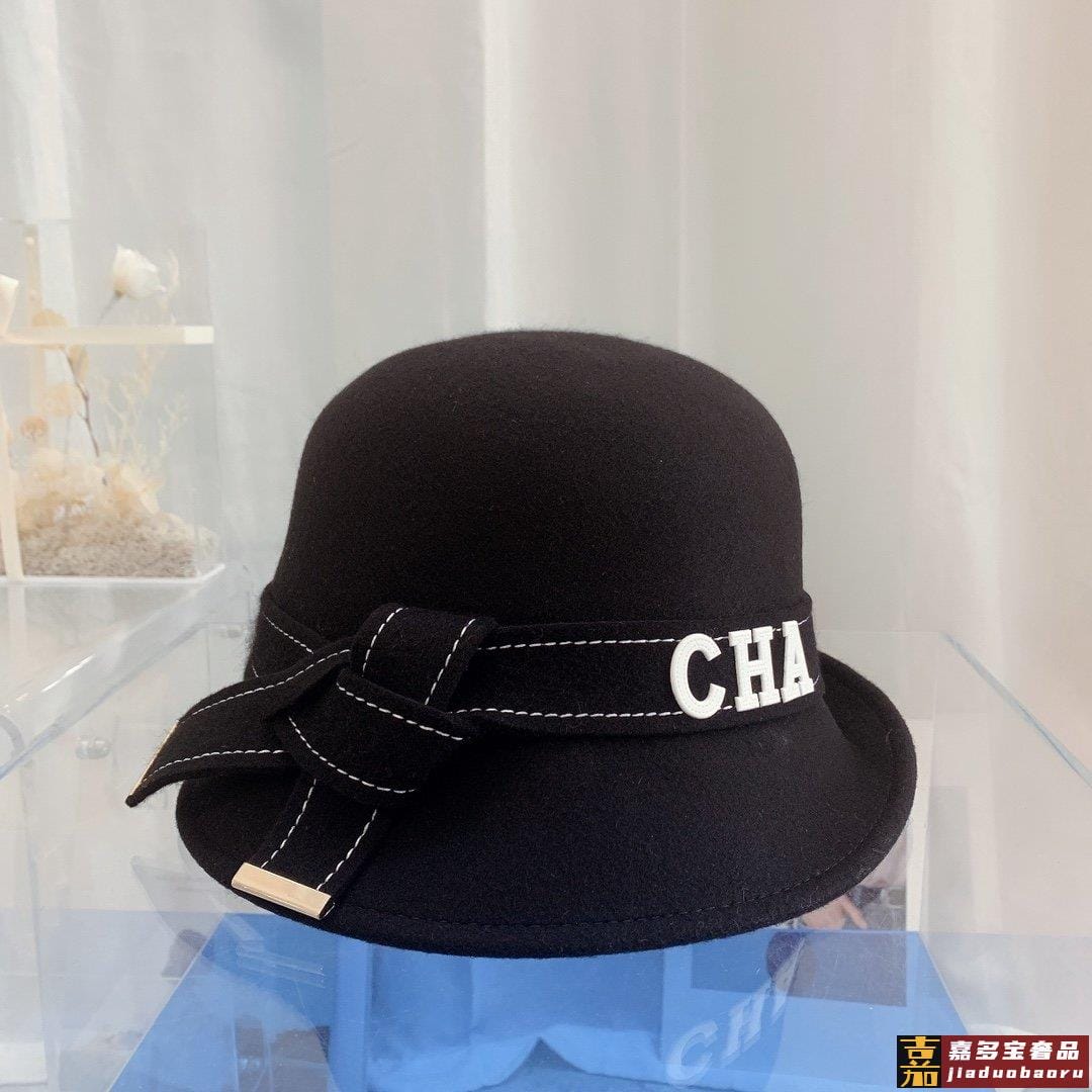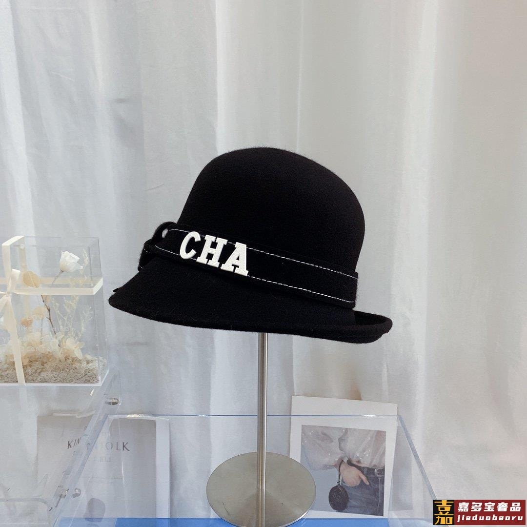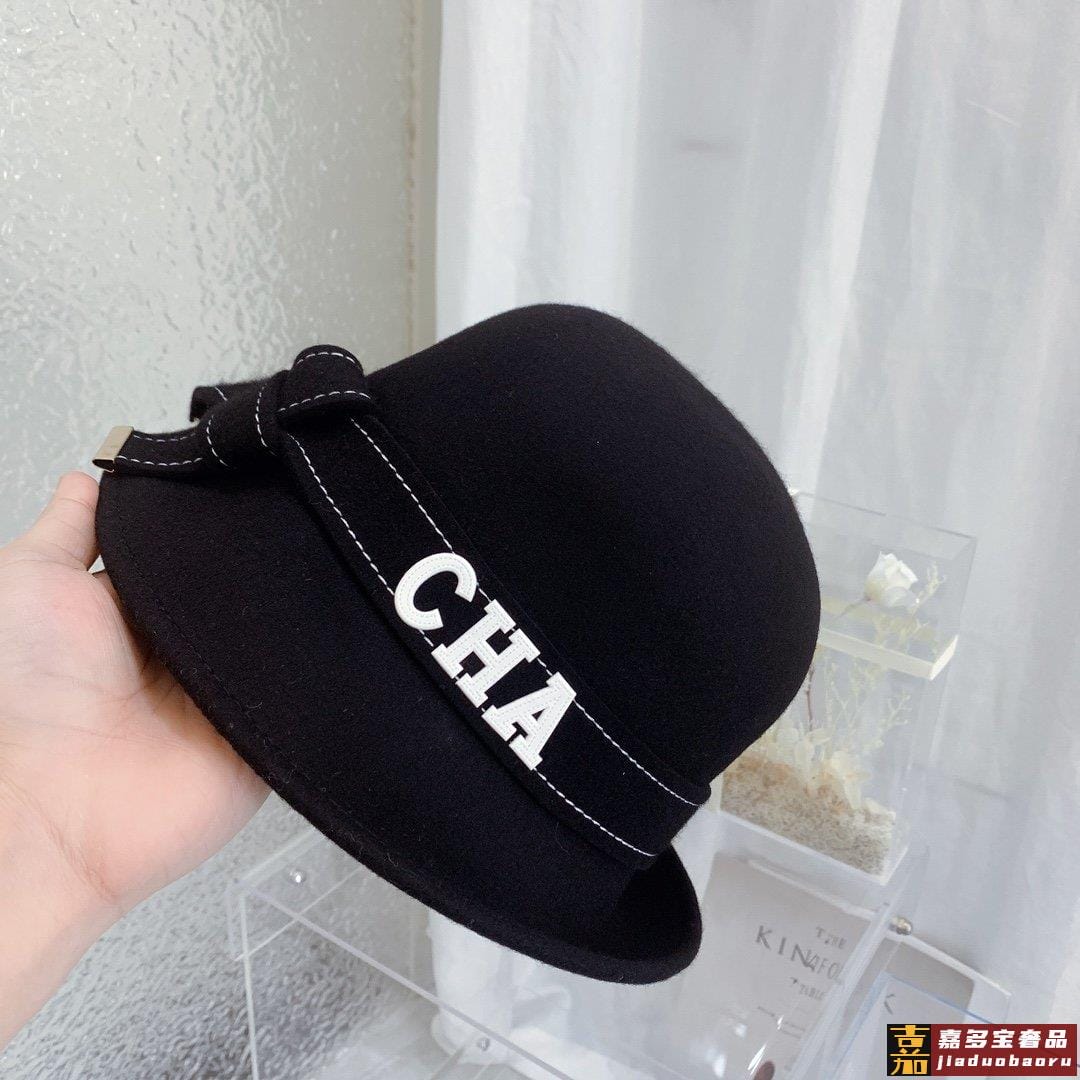 香奈儿秋冬新款渔夫帽爆款系列极简带子装饰经典字样小檐礼帽很百