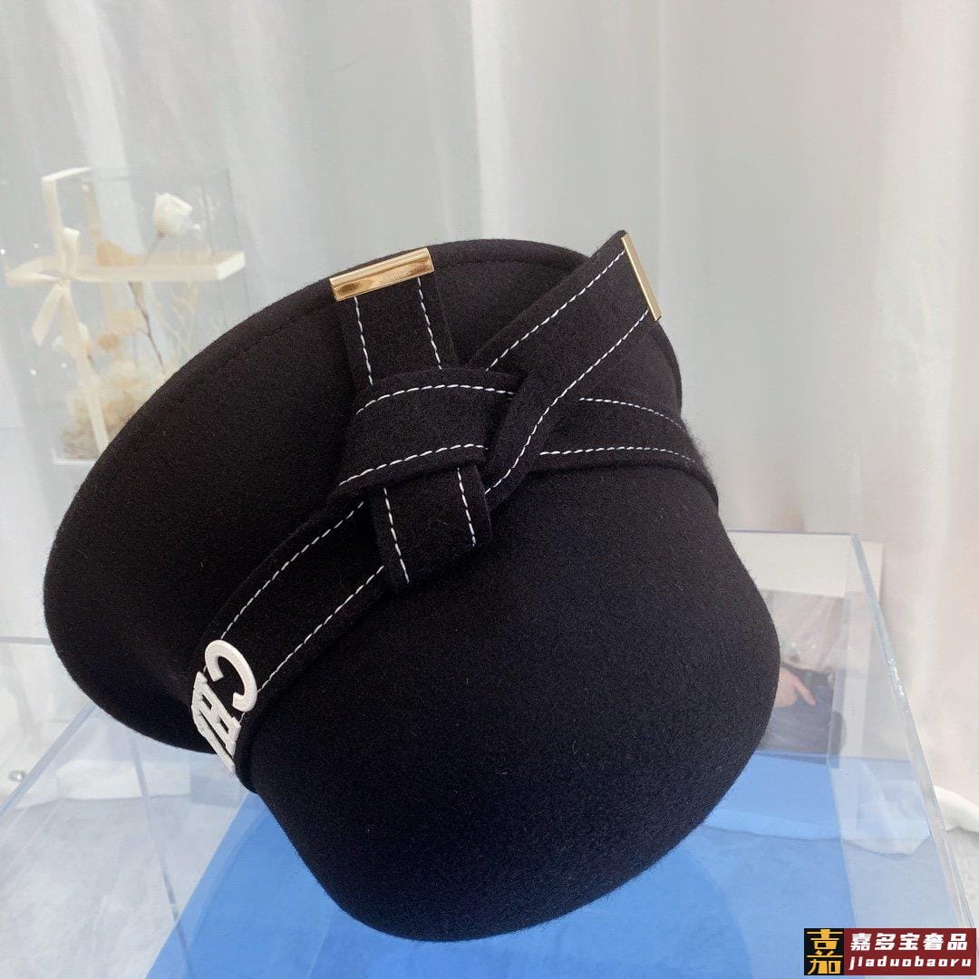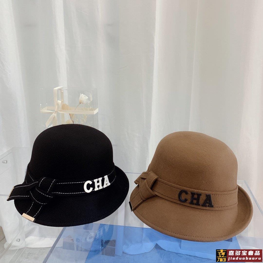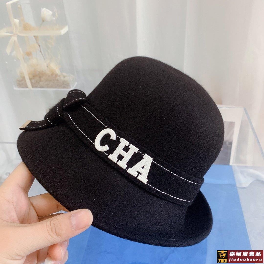 香奈儿秋冬新款渔夫帽爆款系列极简带子装饰经典字样小檐礼帽很百