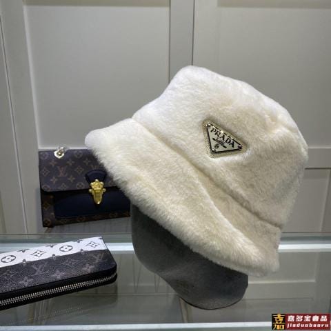 普拉达官方新款渔夫帽兔毛面料三角标渔夫帽头围左右跑量色
