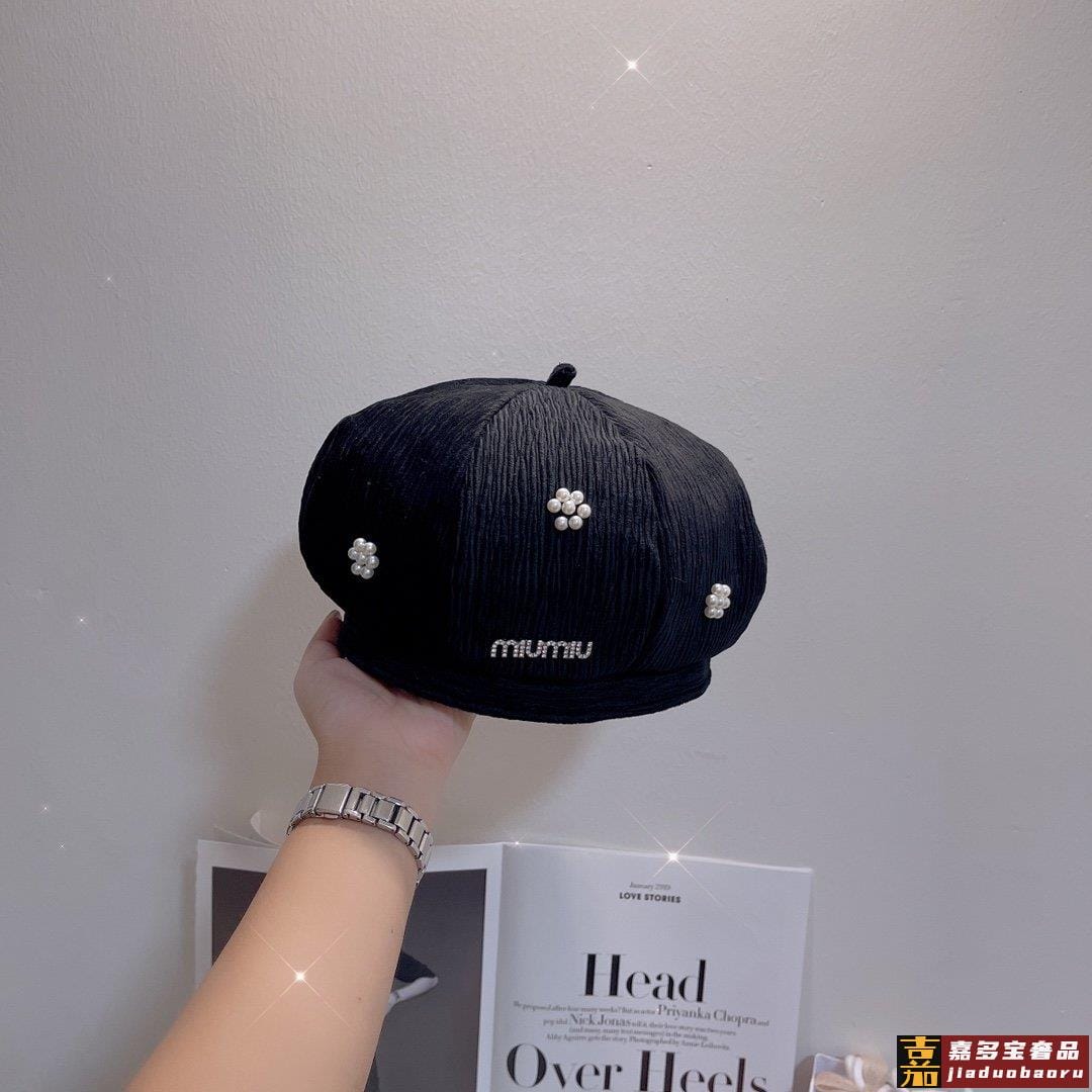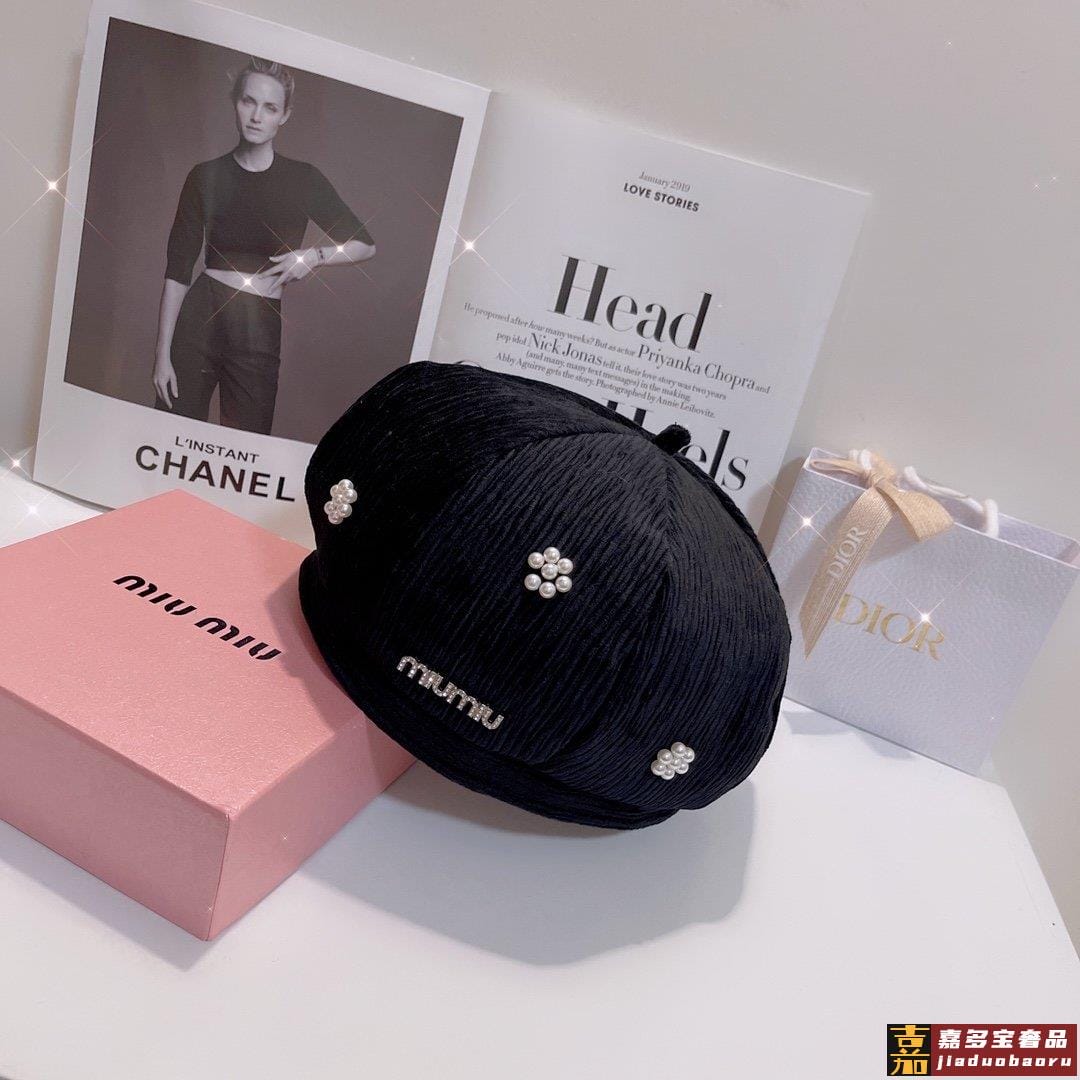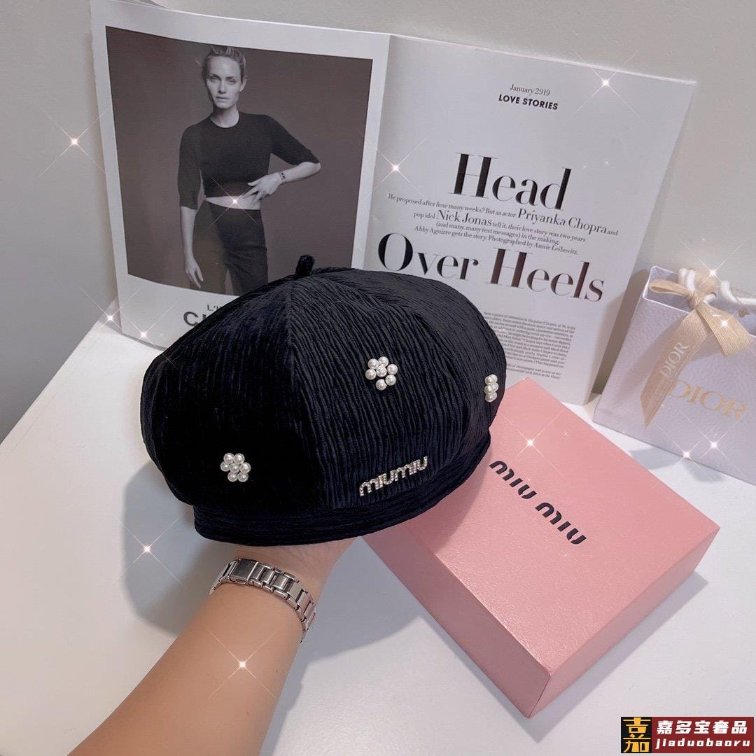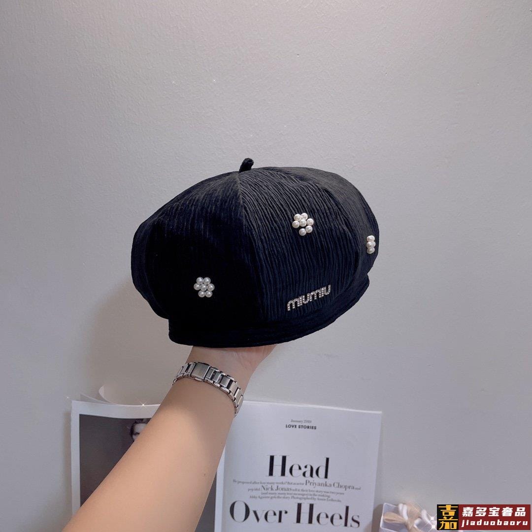 缪缪新款丝绒珍珠贝雷帽法式名媛风珍珠装饰超吸晴超洋气盘它 <