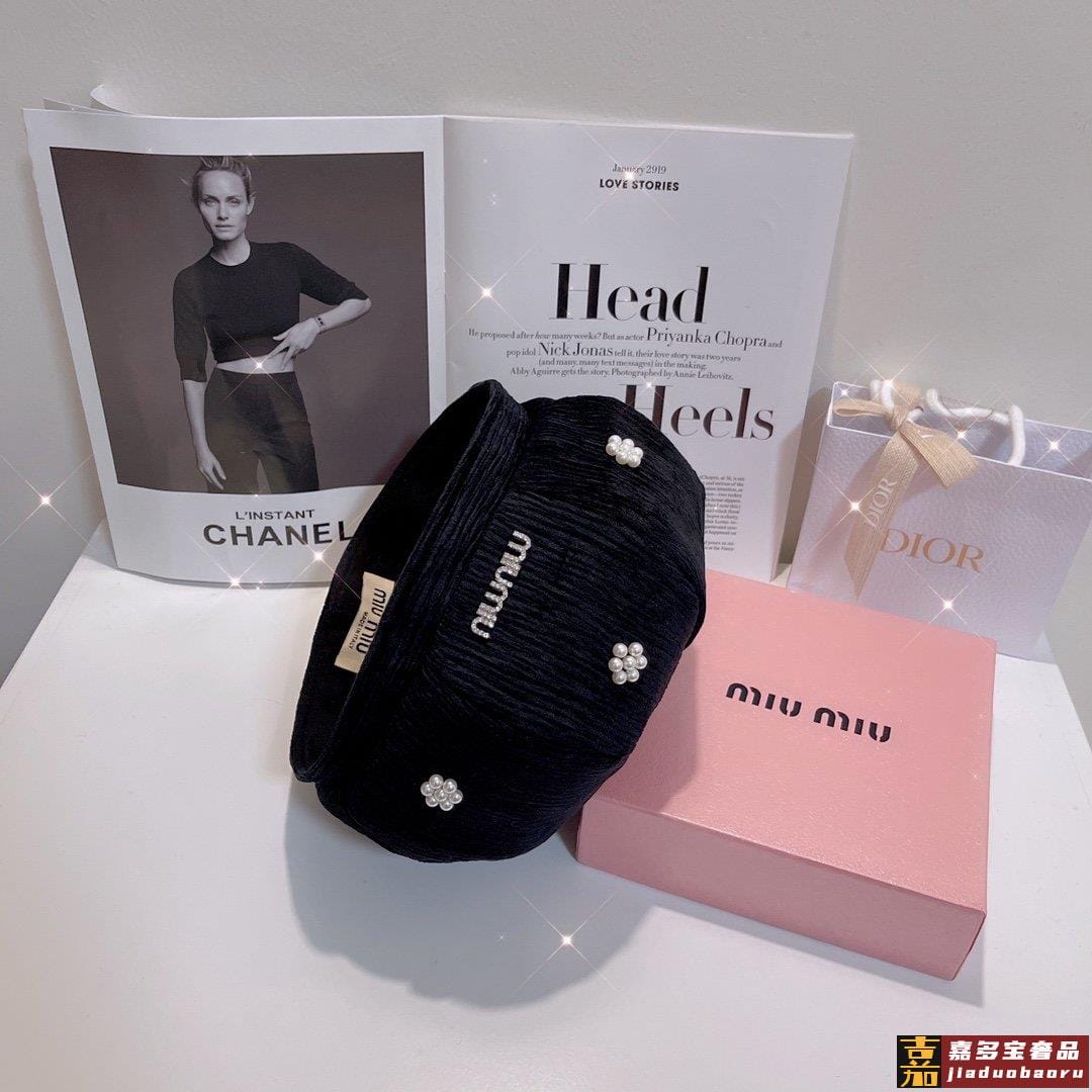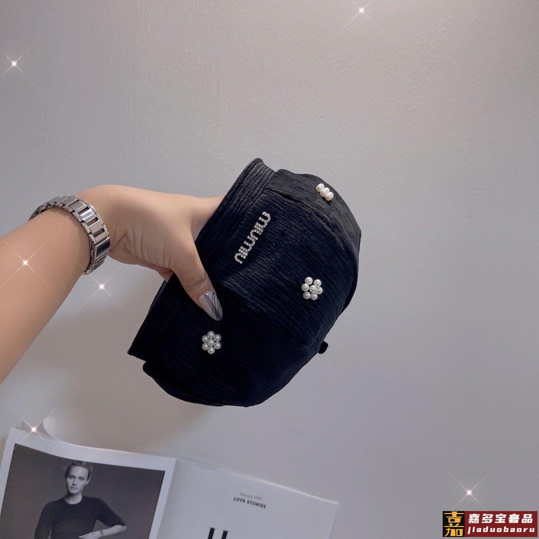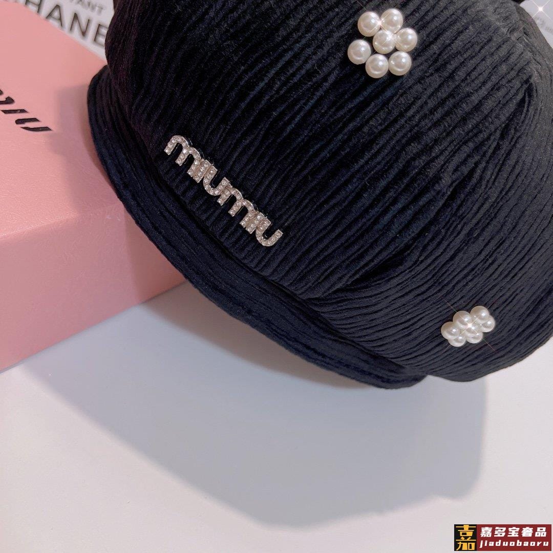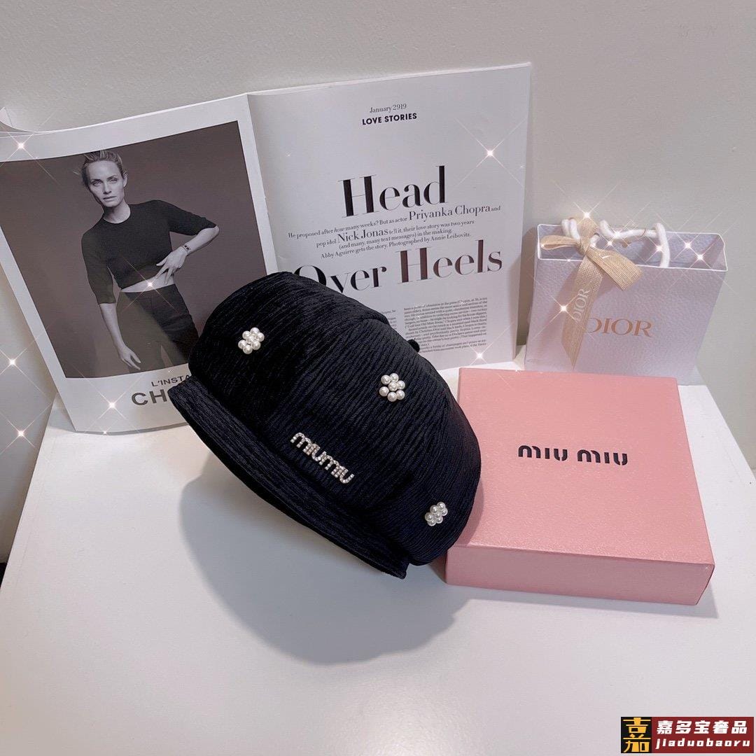 缪缪新款丝绒珍珠贝雷帽法式名媛风珍珠装饰超吸晴超洋气盘它 <