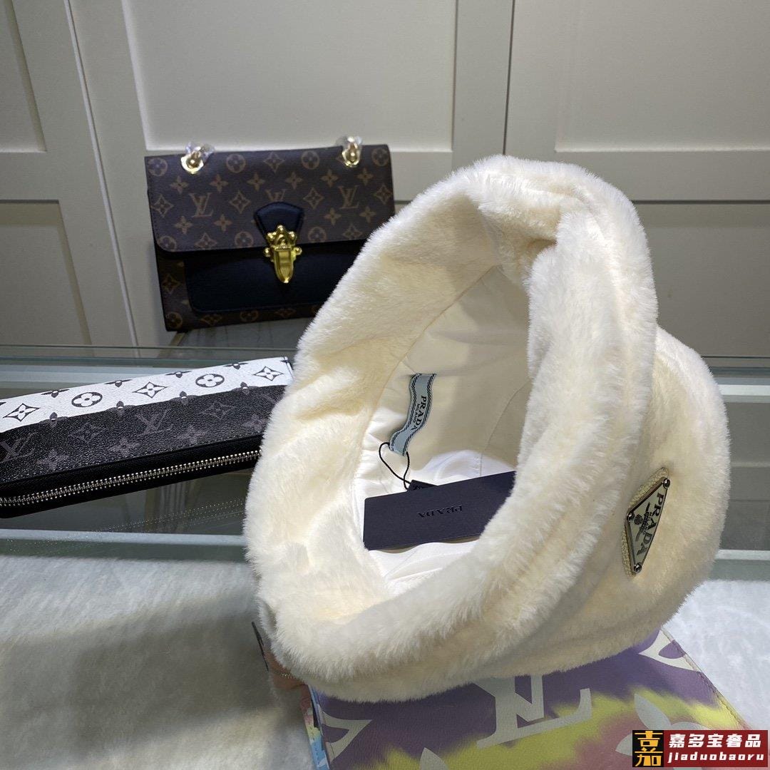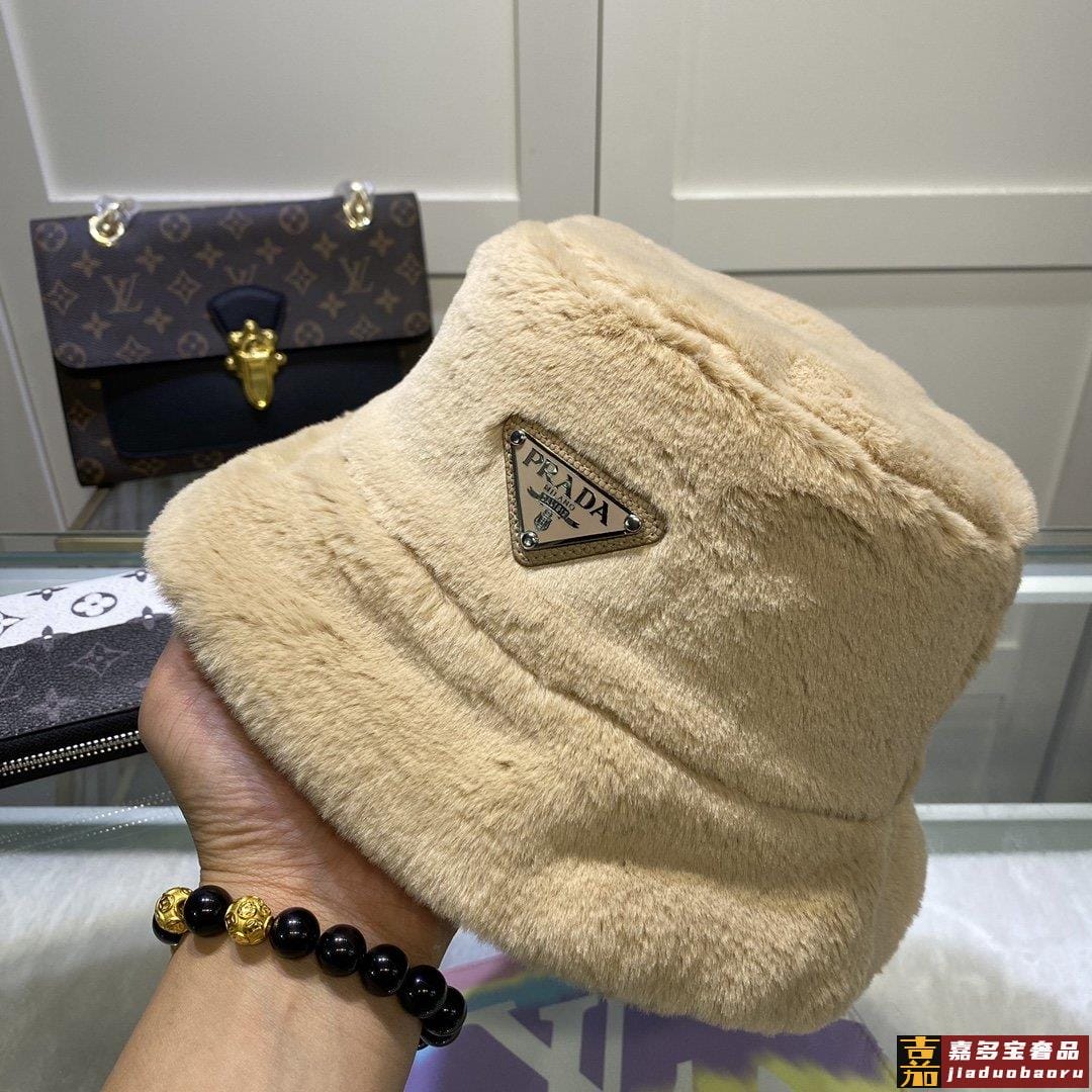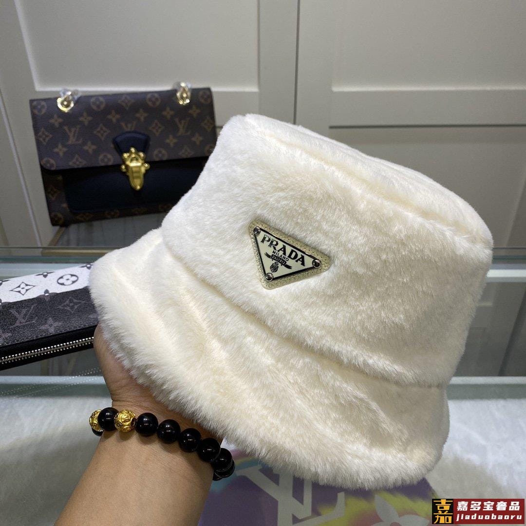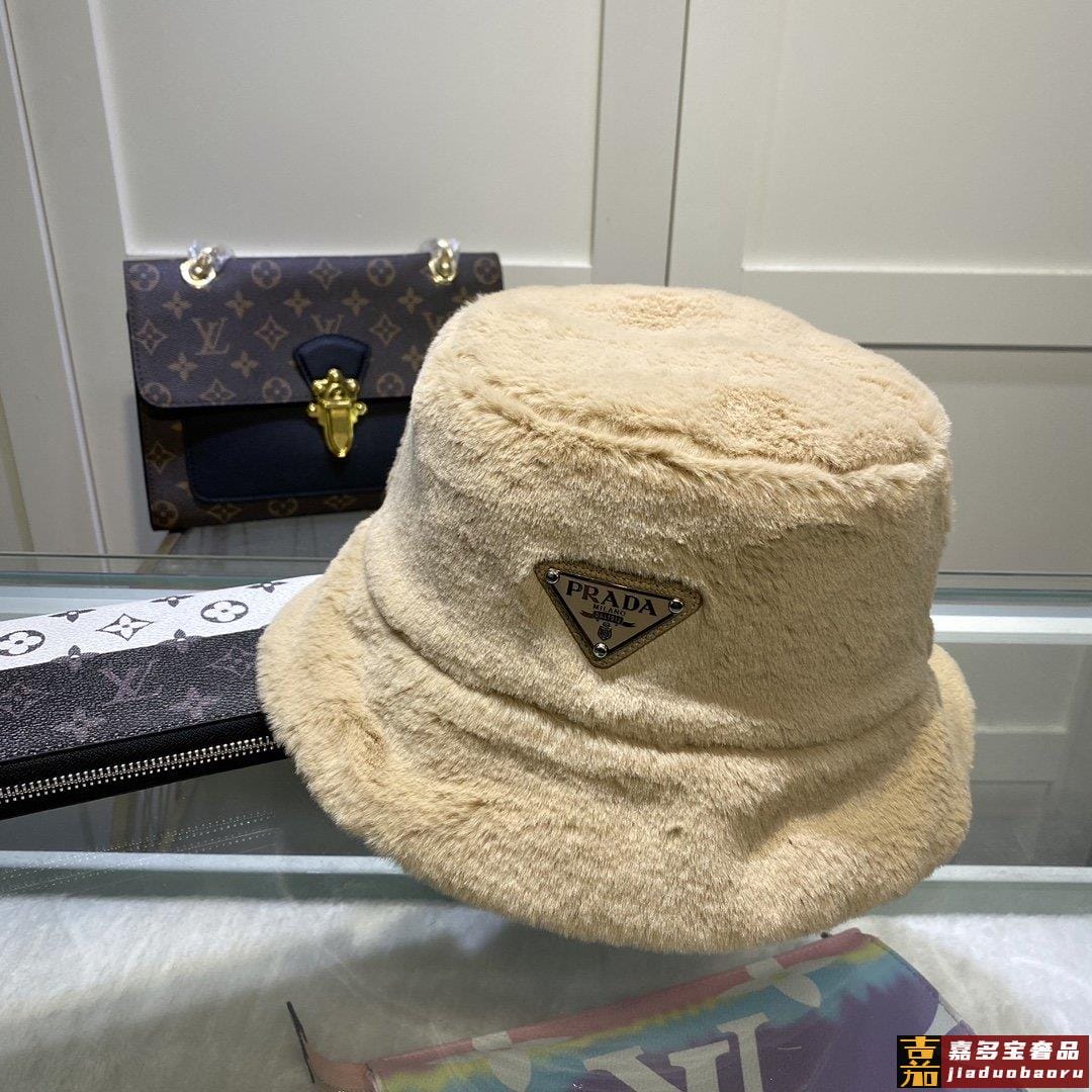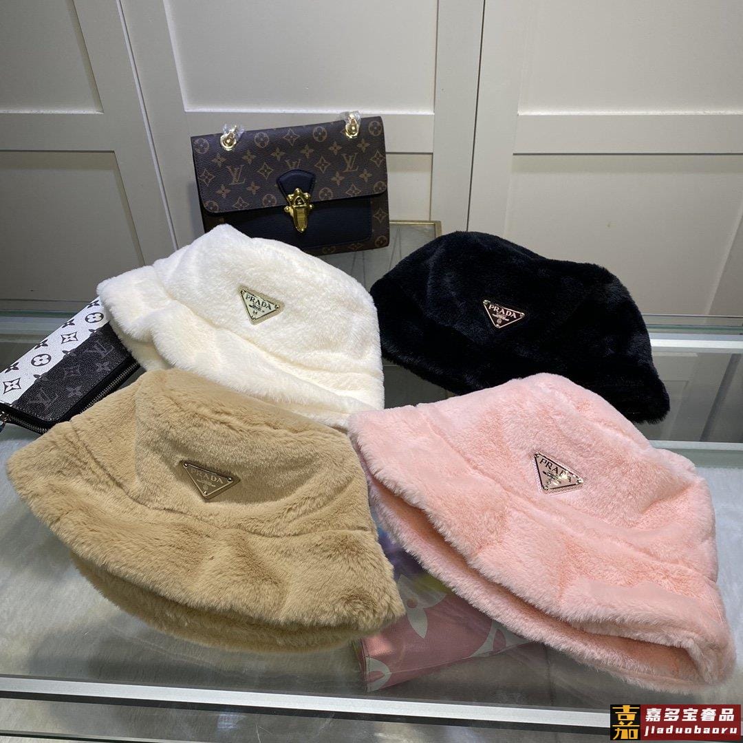 普拉达官方新款渔夫帽兔毛面料三角标渔夫帽头围左右跑量色