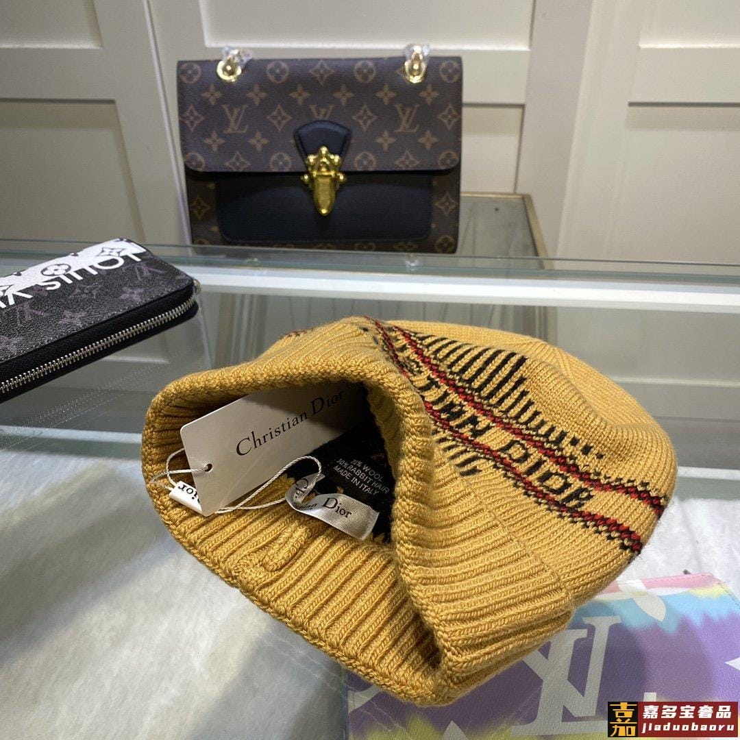 配防尘袋迪奥官网经典款百分之羊毛兔毛针织帽男女同款加厚更保暖