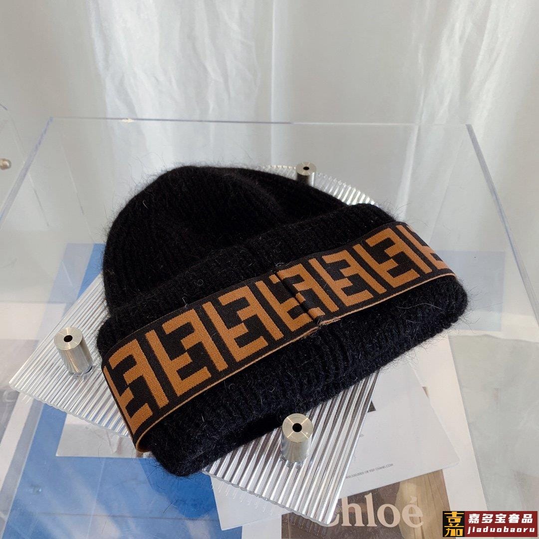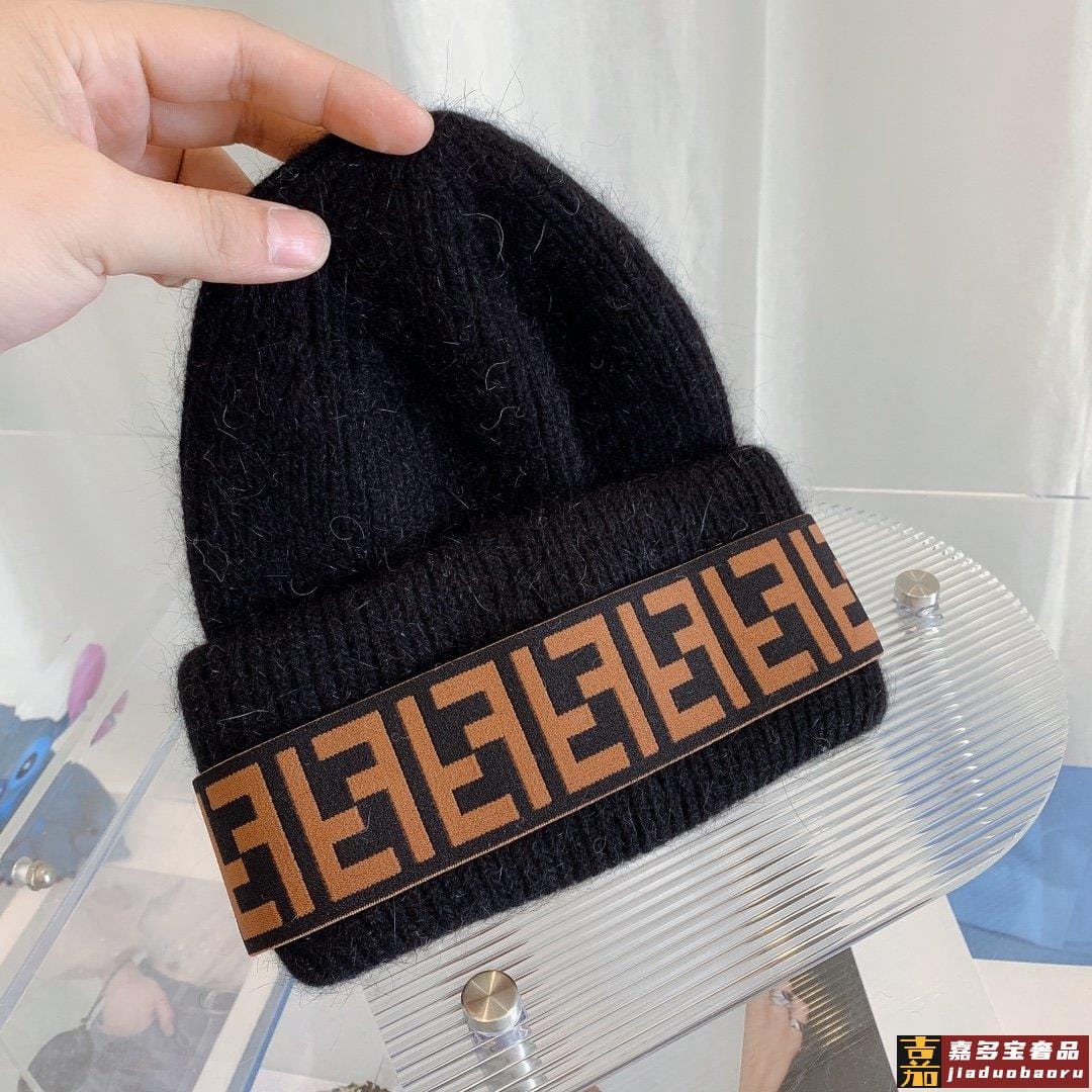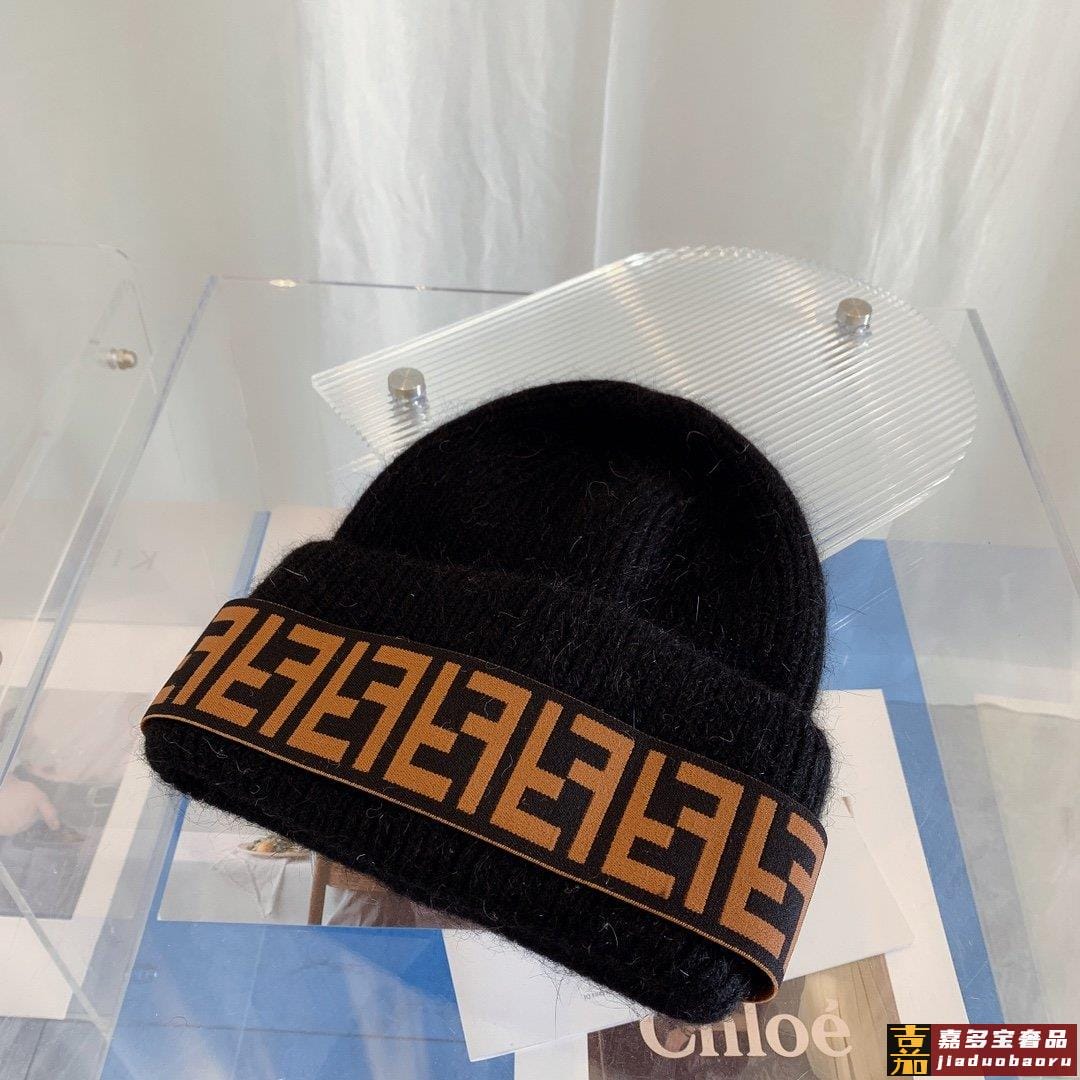 芬迪秋冬安哥拉兔毛羊毛针织厚翻边毛线帽年末重磅高颜值仙女针织