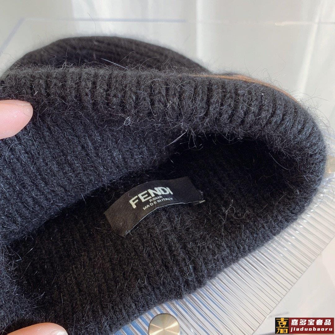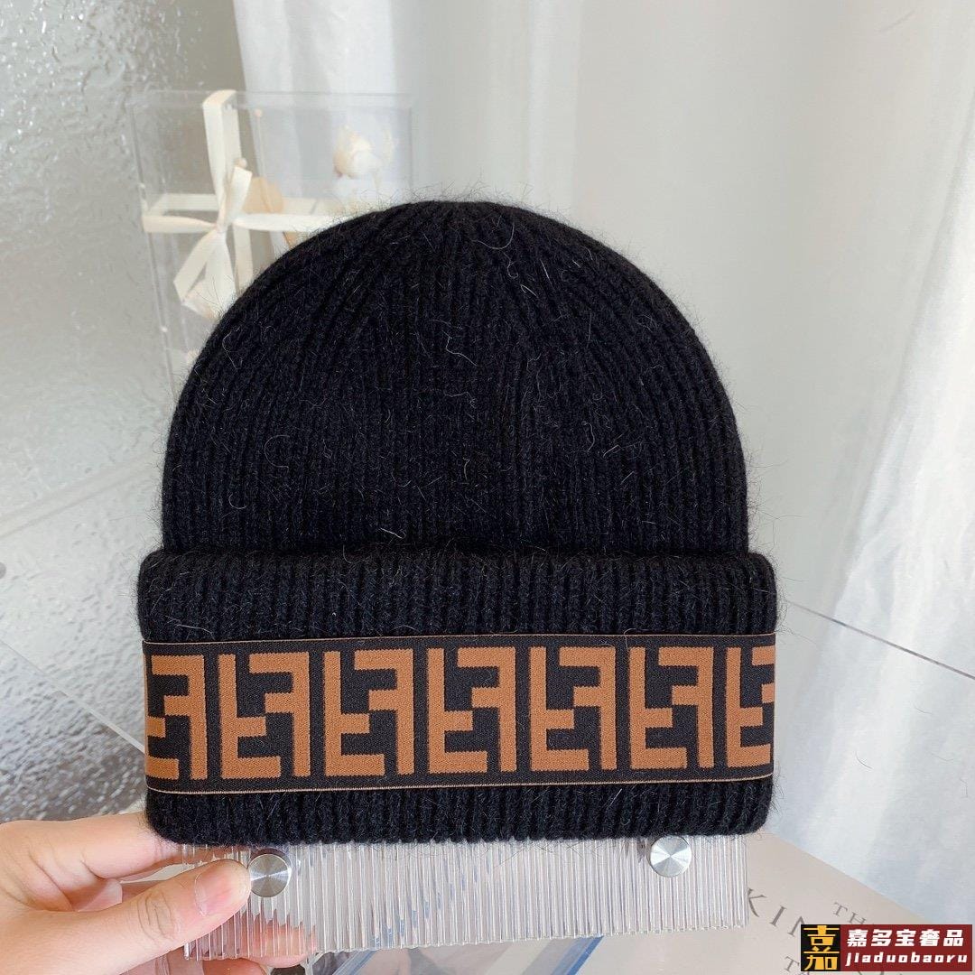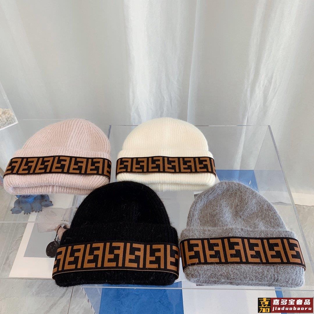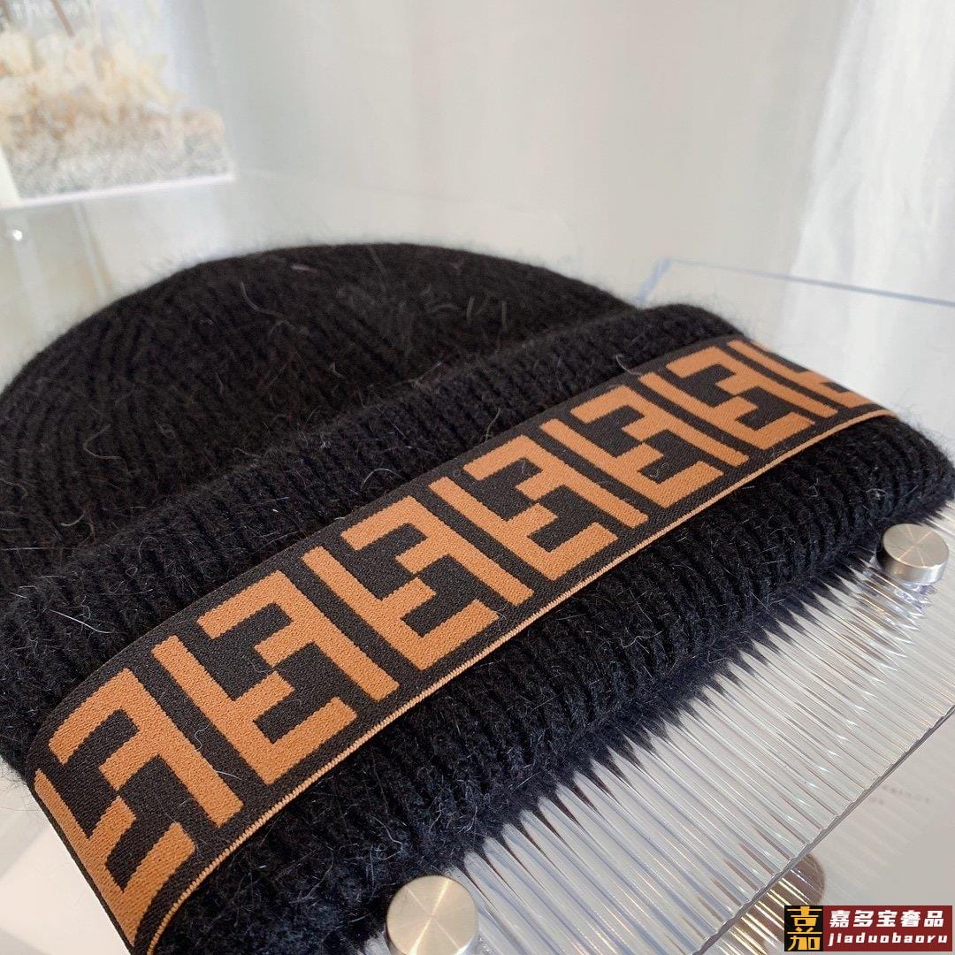 芬迪秋冬安哥拉兔毛羊毛针织厚翻边毛线帽年末重磅高颜值仙女针织