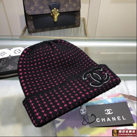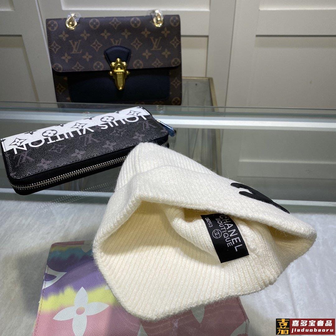香奈儿秋冬网红时尚博主推荐款贴布绣小香风图案毛线帽手感超柔软