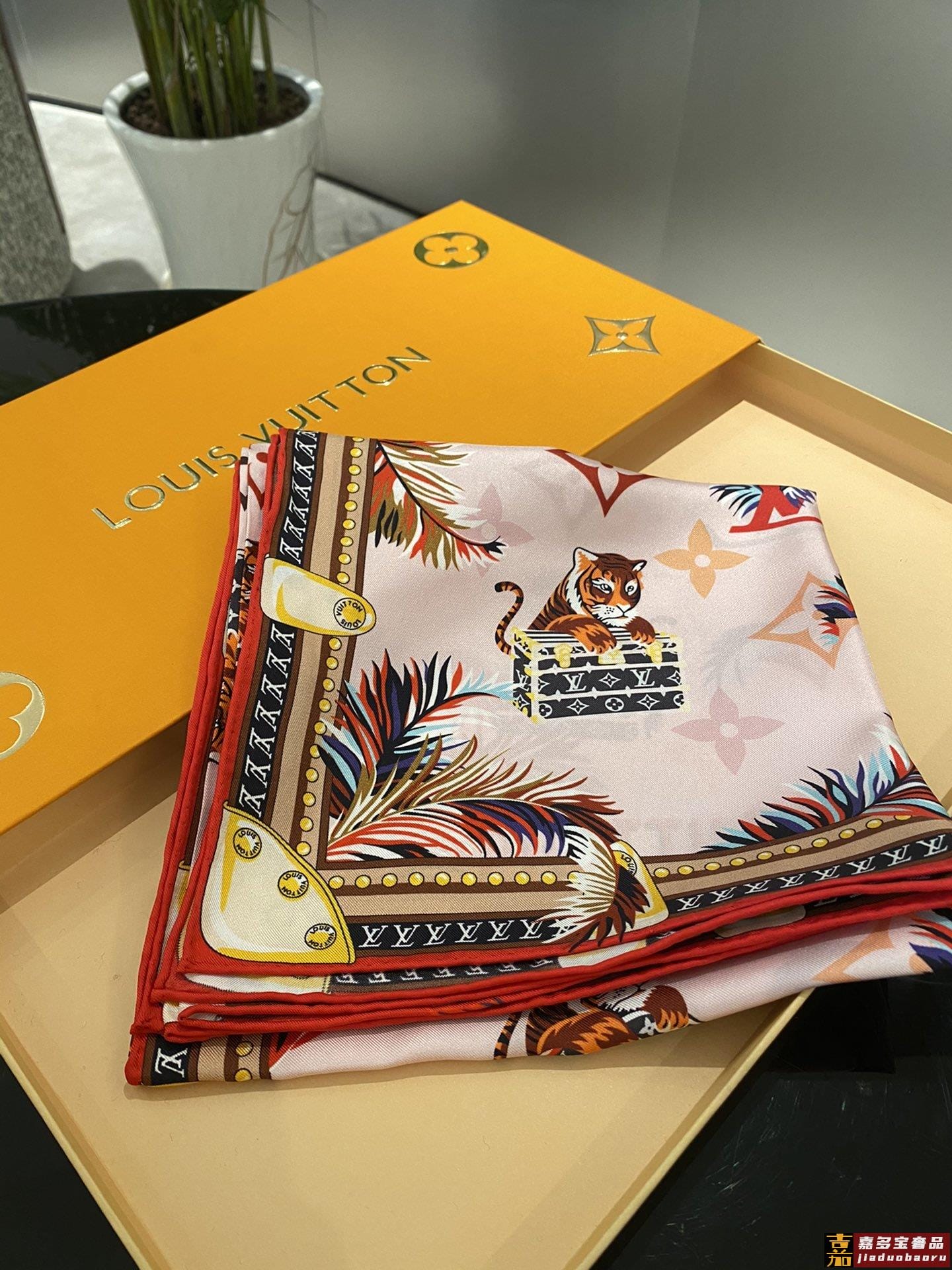 上新新年限定款方巾与丝带新年生肖元素描绘猛虎守路易威登行李箱