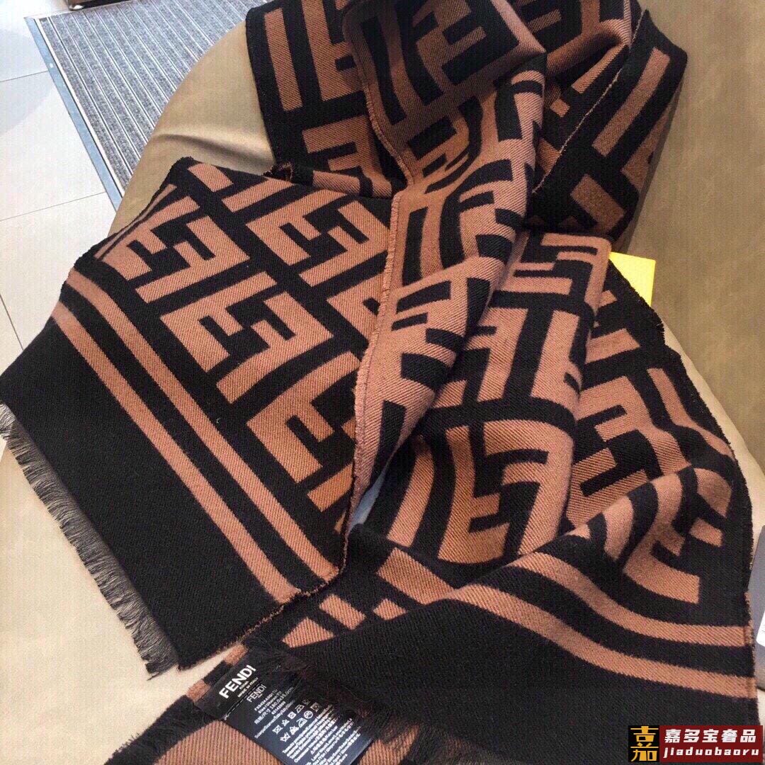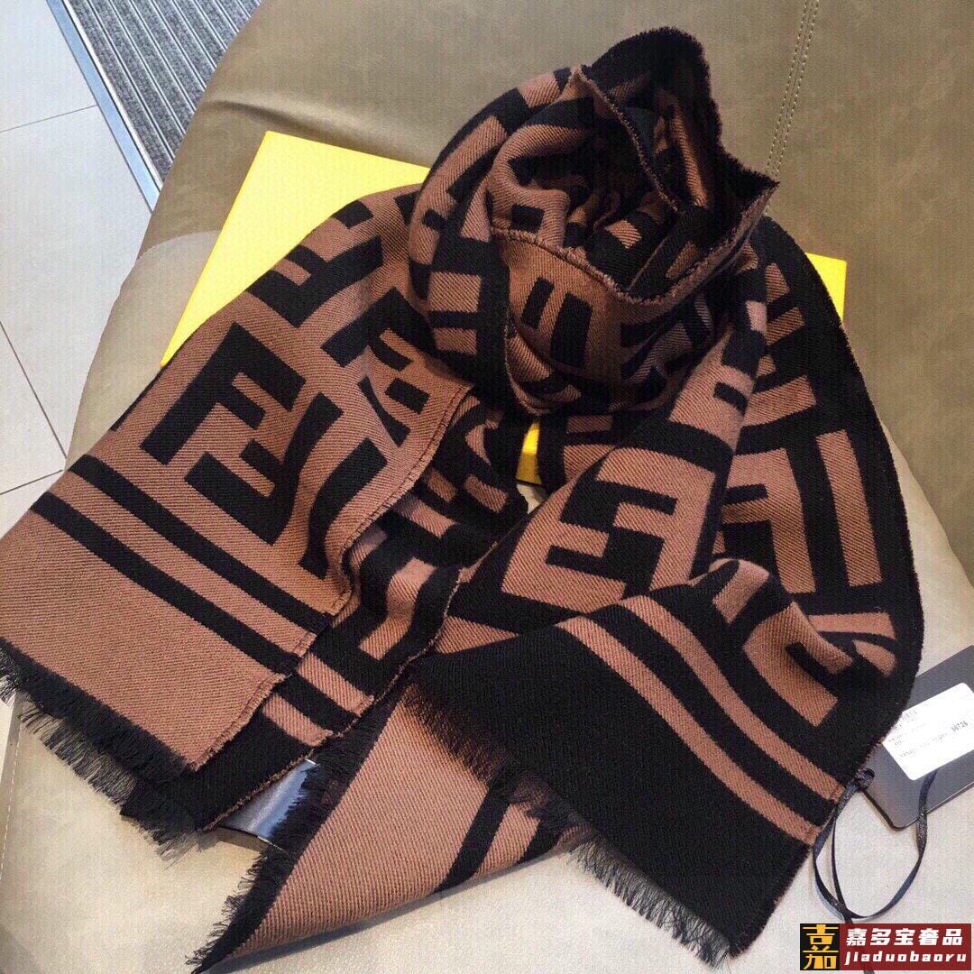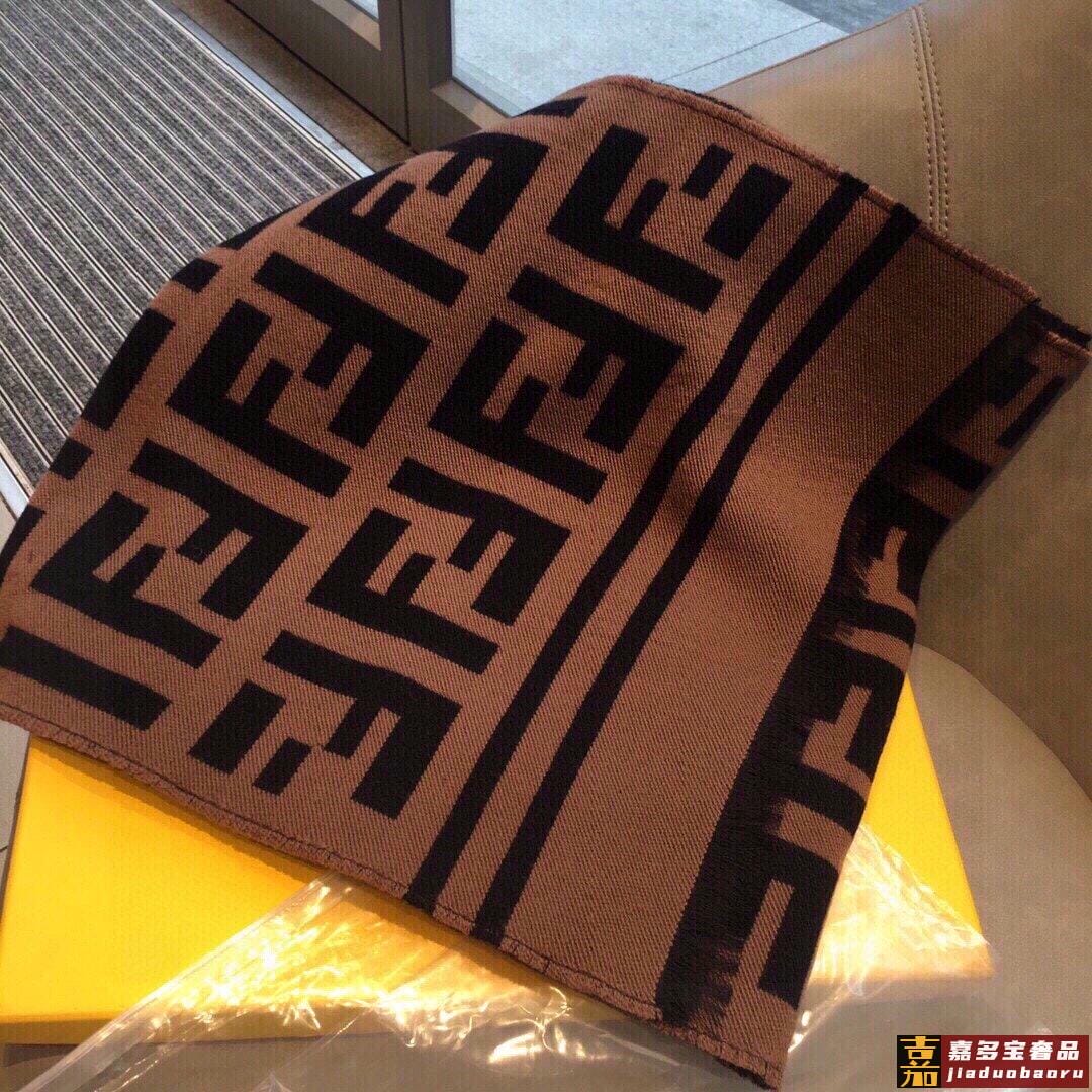 顶级原单芬迪最新款尺寸材料羊毛真丝矩形黑色羊毛真丝针织围巾饰