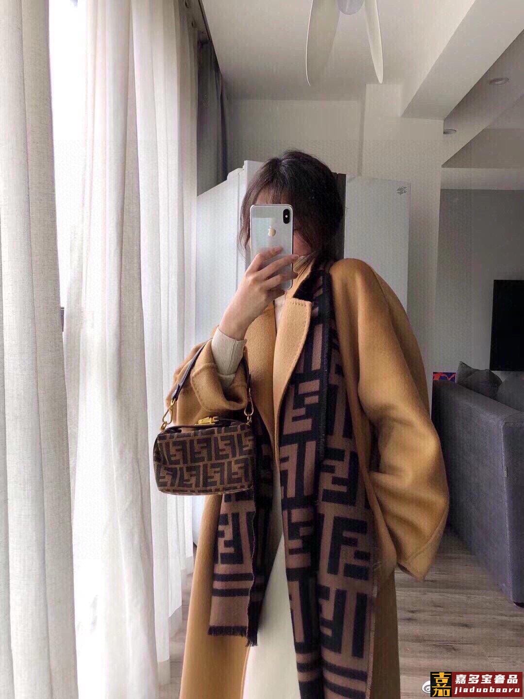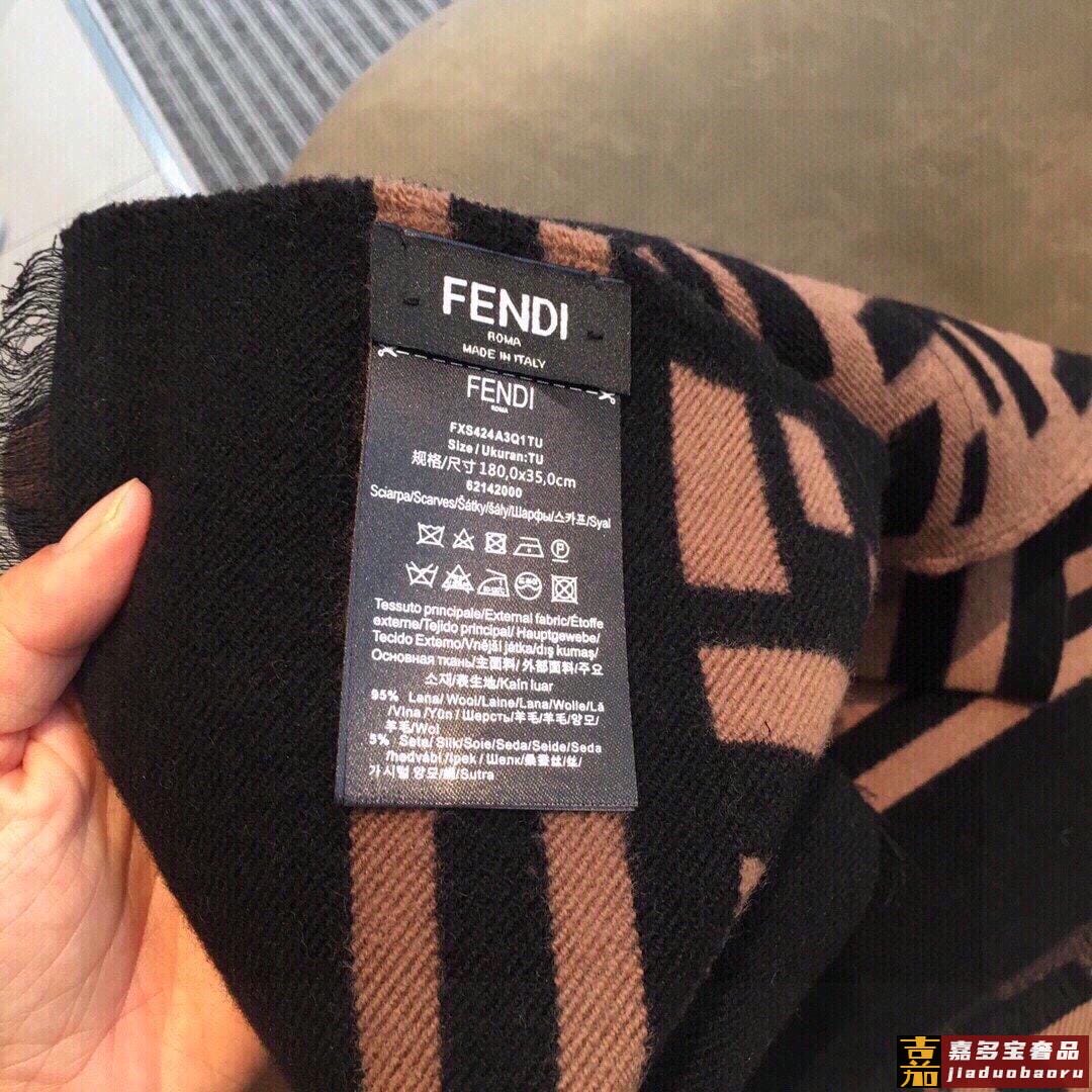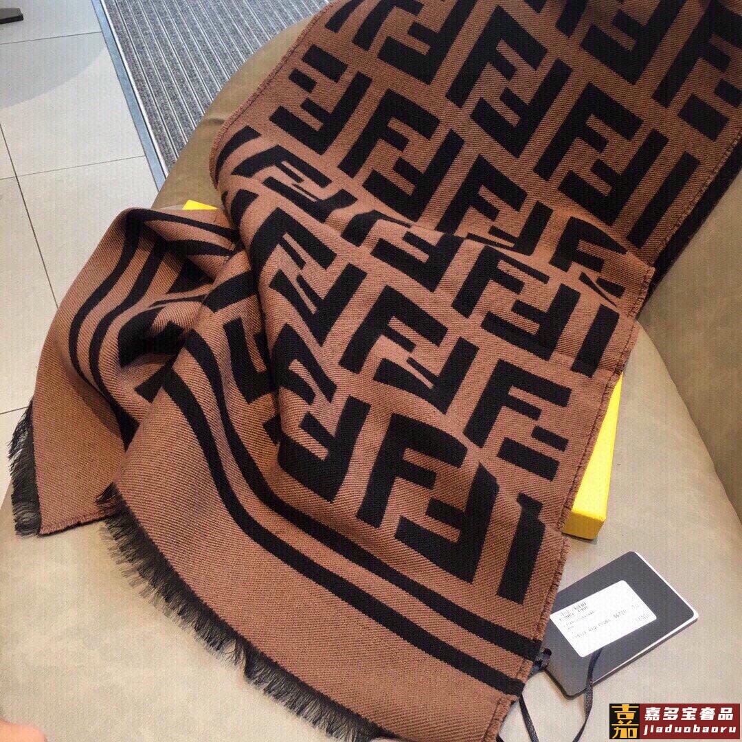 顶级原单芬迪最新款尺寸材料羊毛真丝矩形黑色羊毛真丝针织围巾饰
