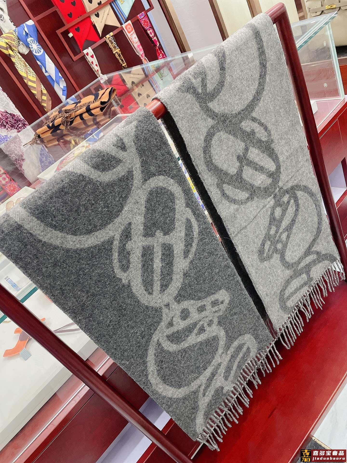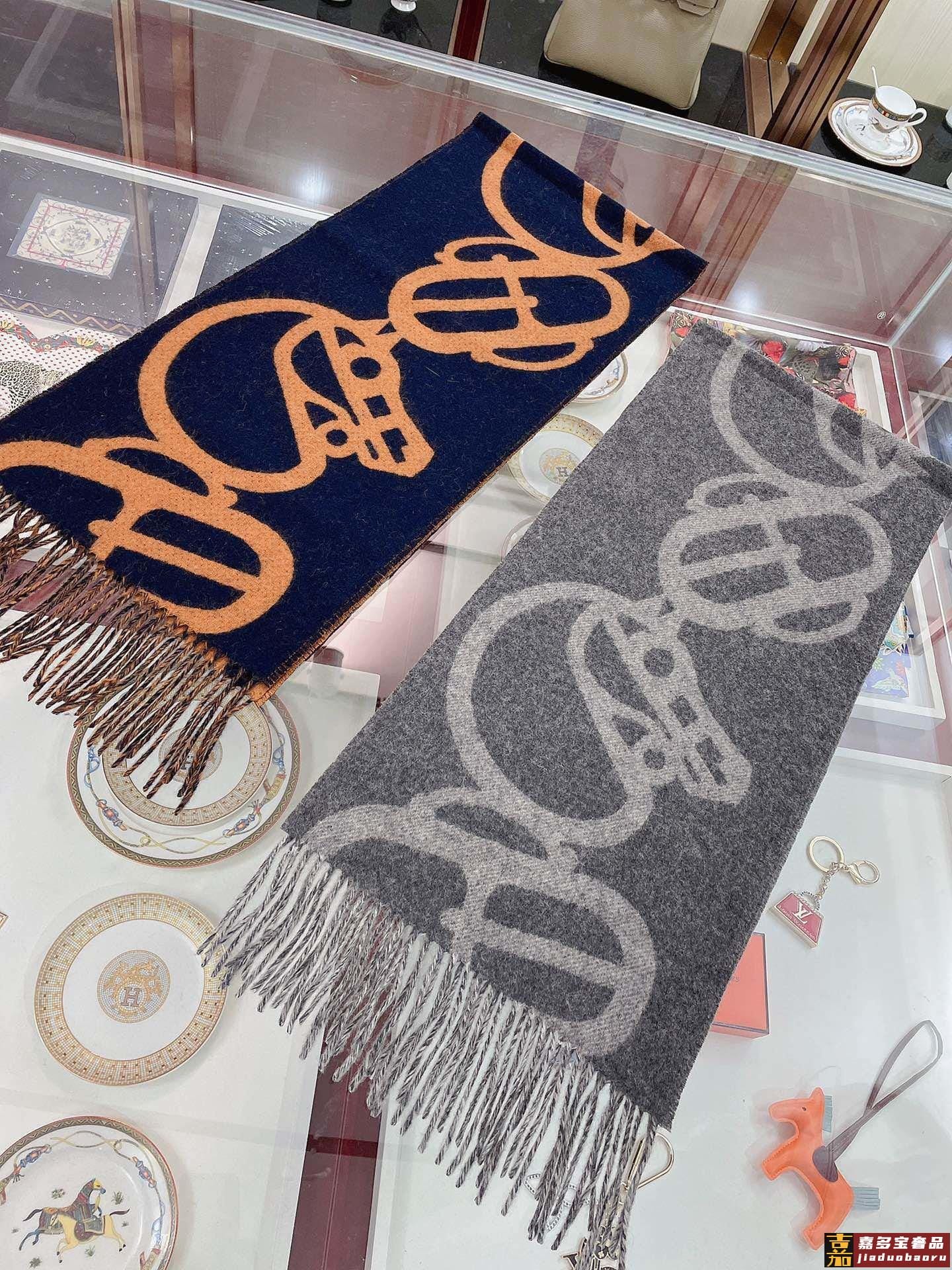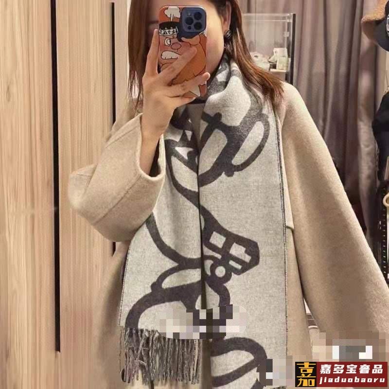 爱马仕专柜年度最牛硬货环扣双面长巾男女适用中性款重磅双面羊绒