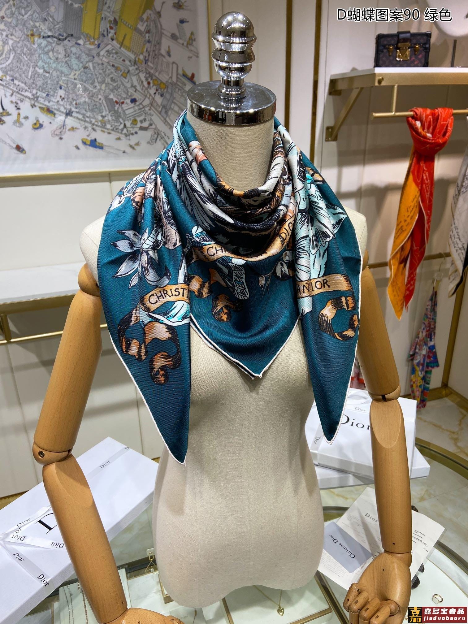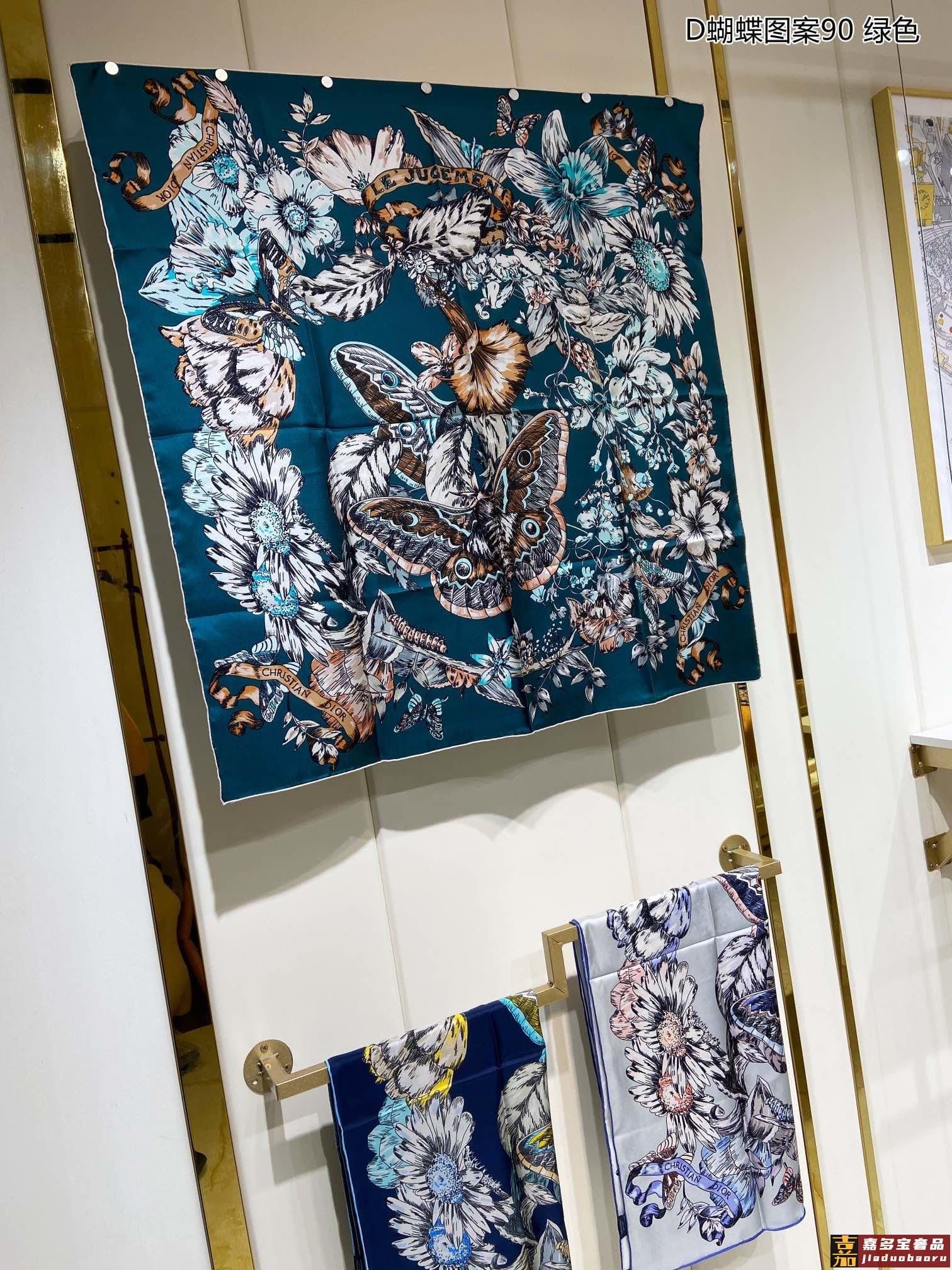 家专柜同步上新蝴蝶图案真丝方巾卖的超爆的上身才会知道她的美洋