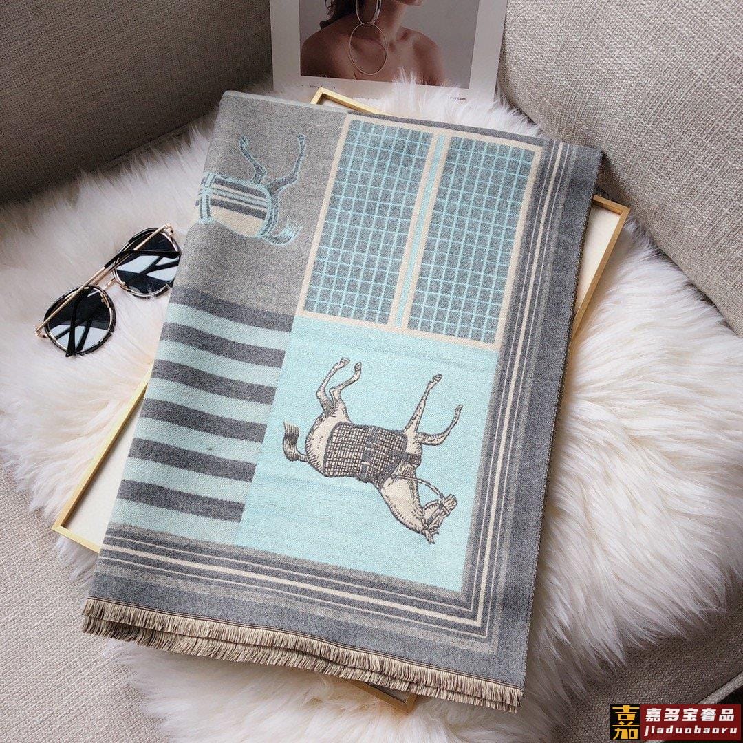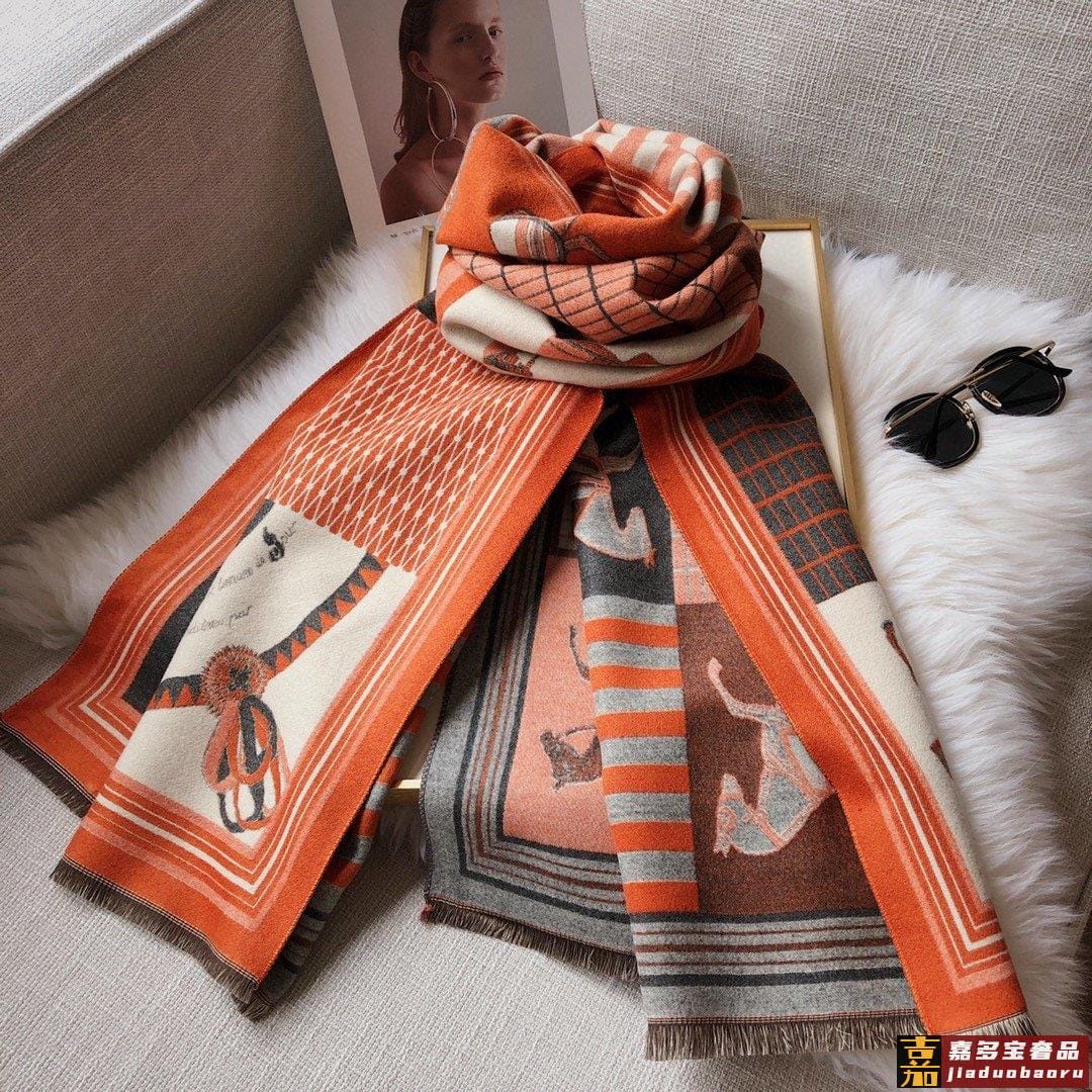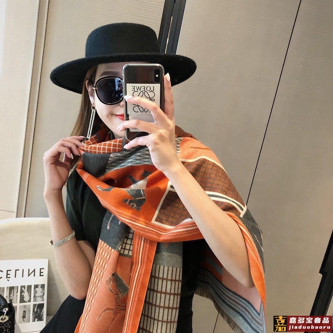 欧版战马仿羊绒提花围巾时尚大牌风格多年龄段可用保暖装饰两不误