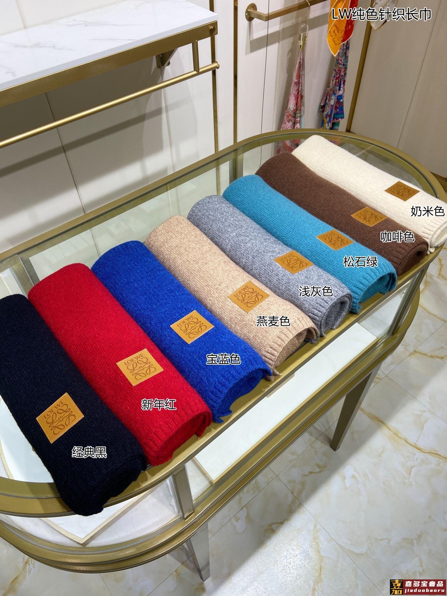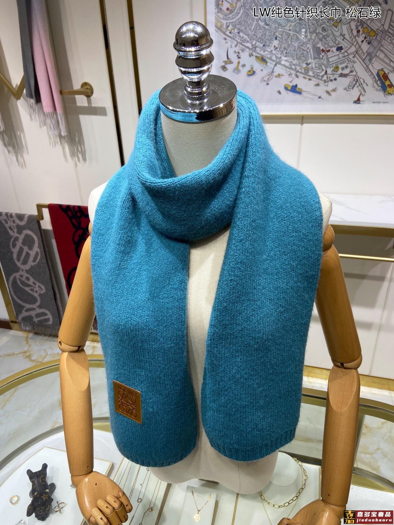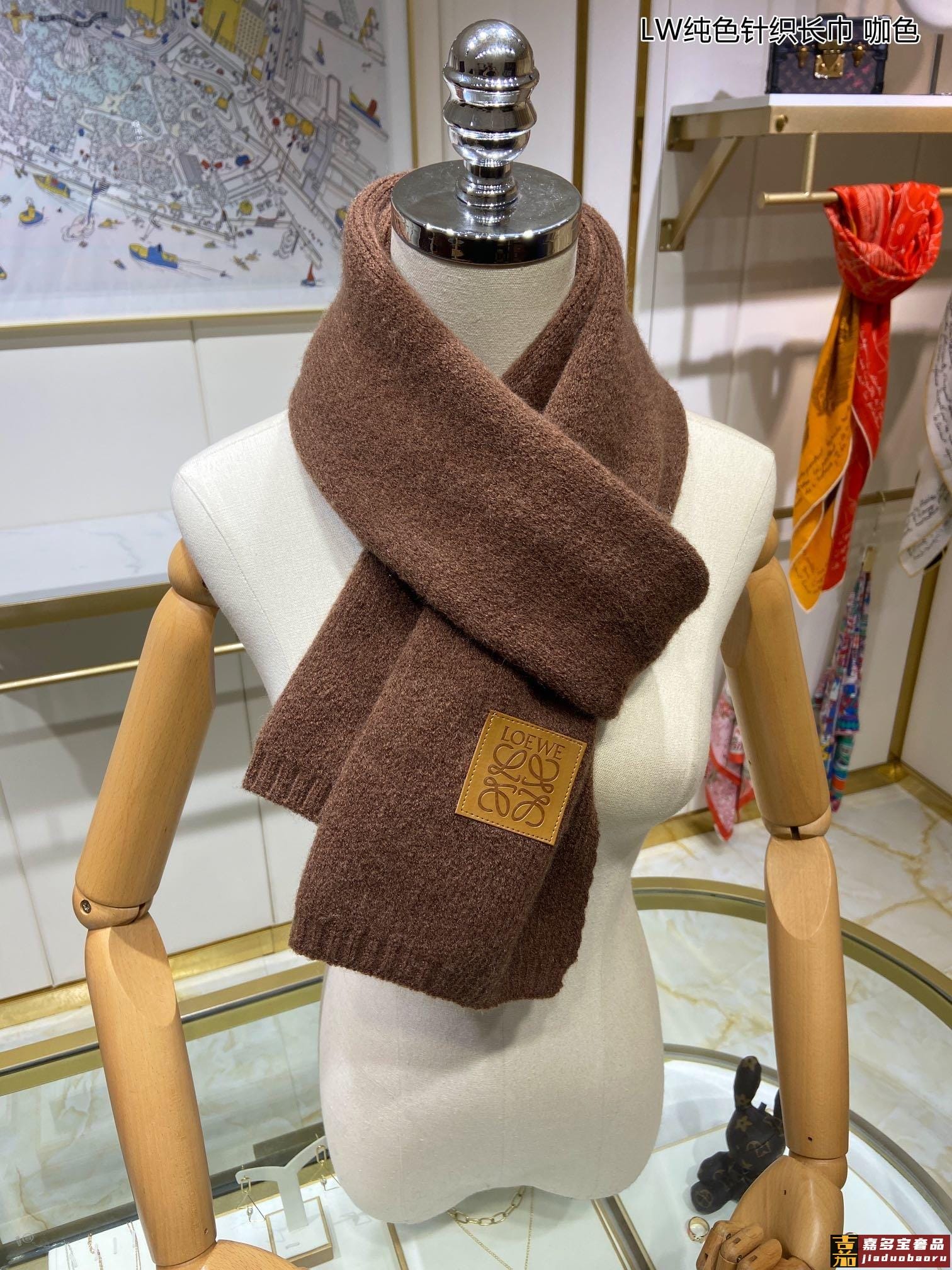 爆款上罗意威家牛货纯色针织长巾皮标纯色针织毛线围巾真是超极高