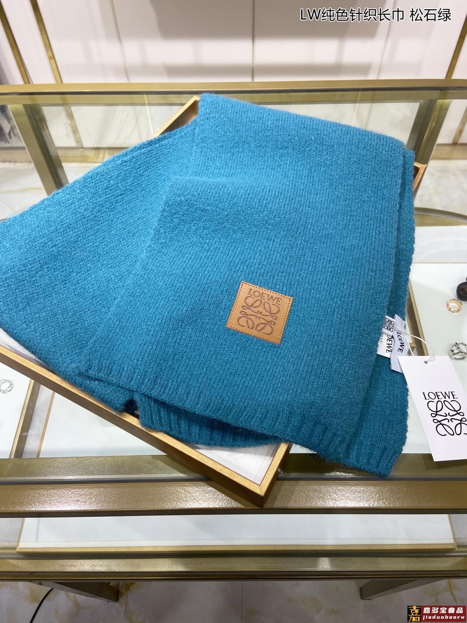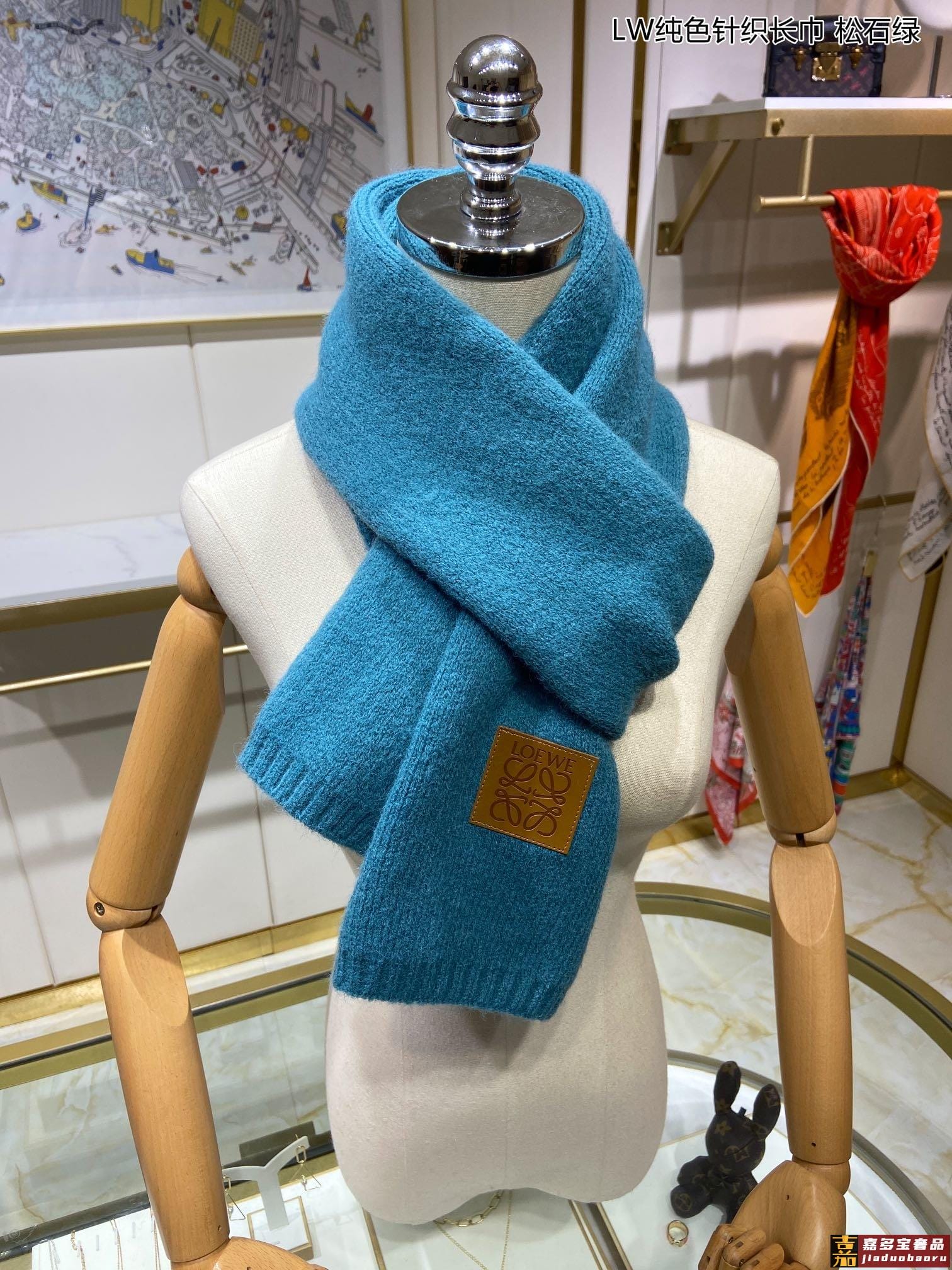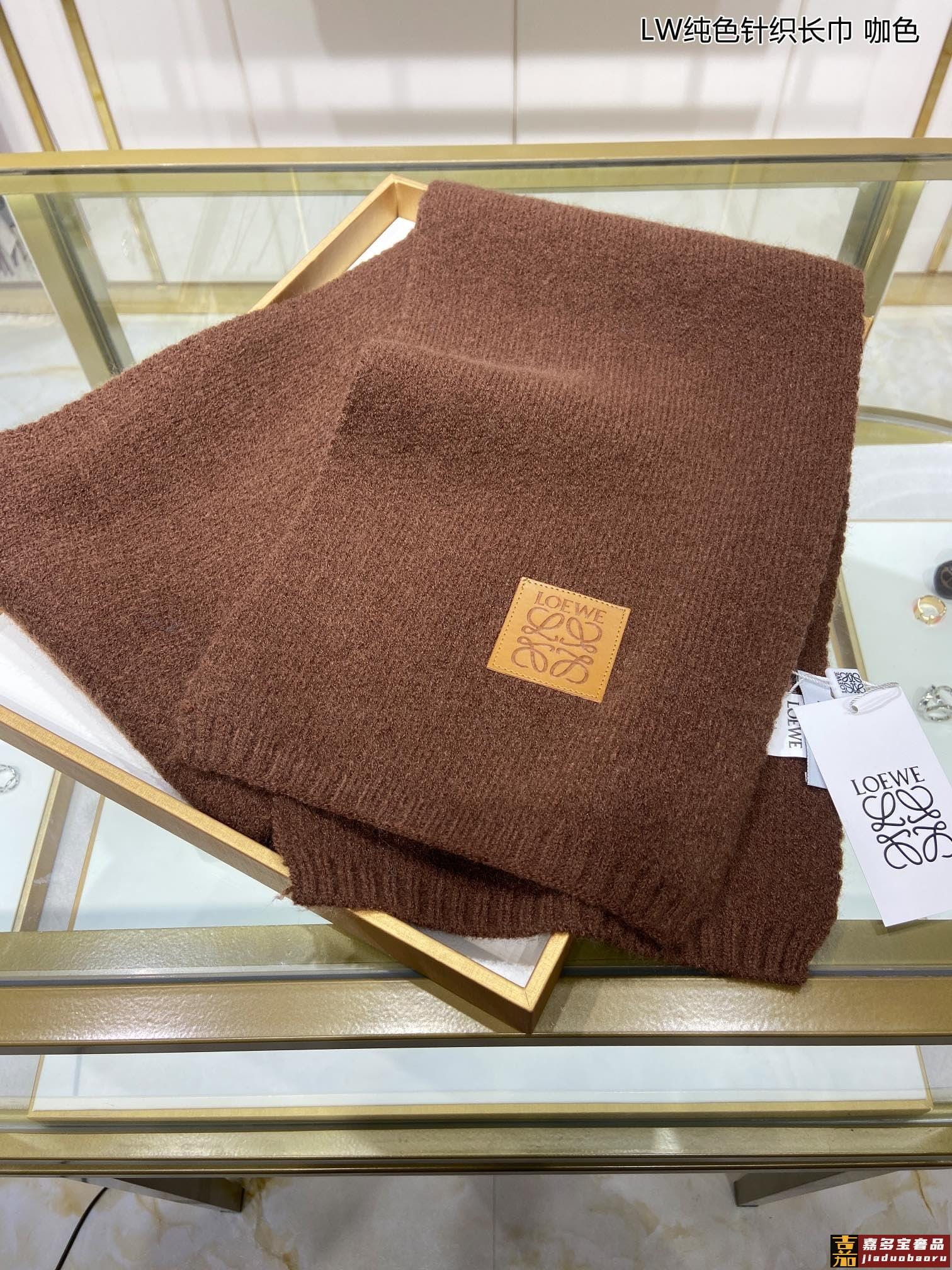 爆款上罗意威家牛货纯色针织长巾皮标纯色针织毛线围巾真是超极高