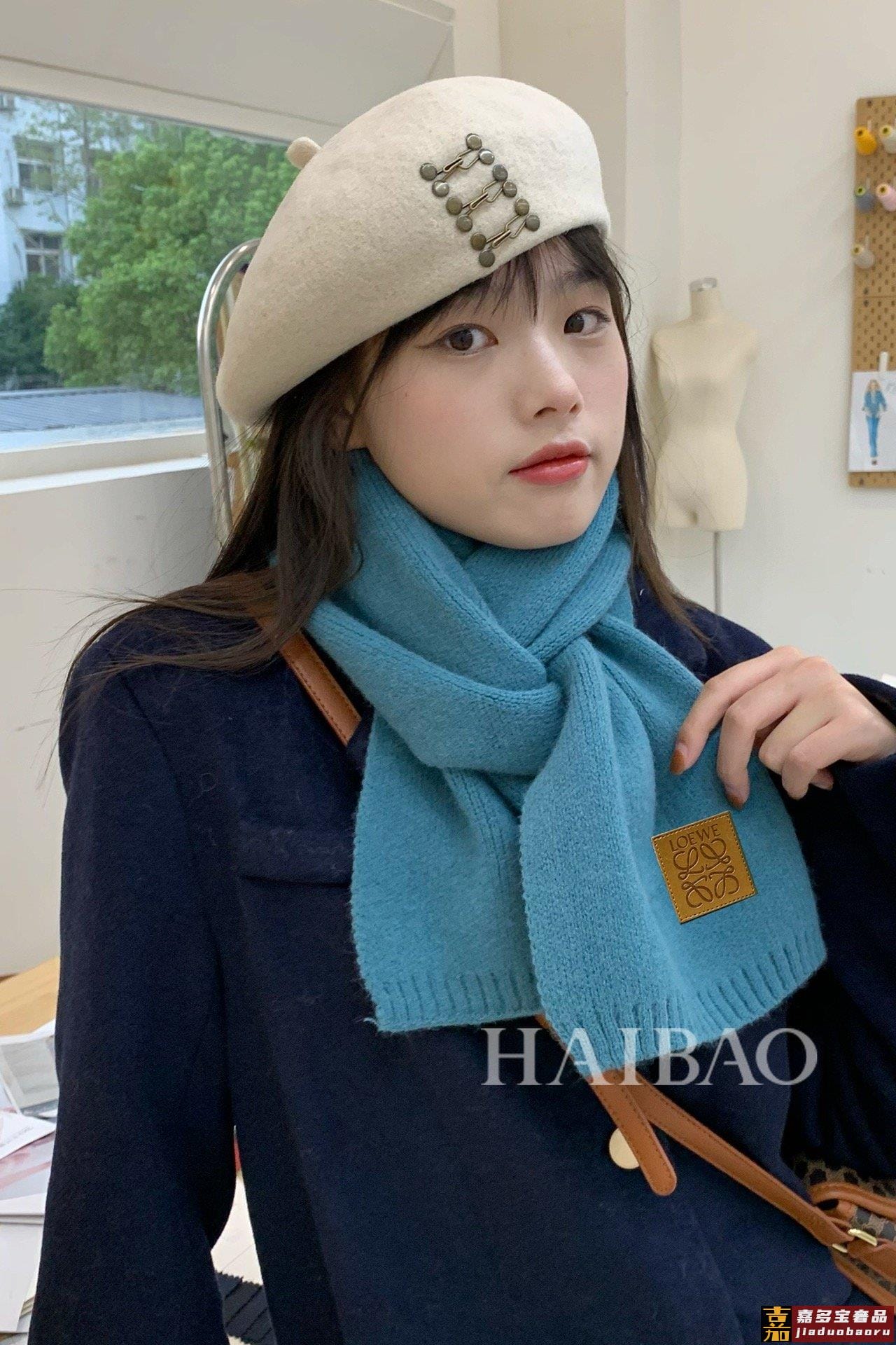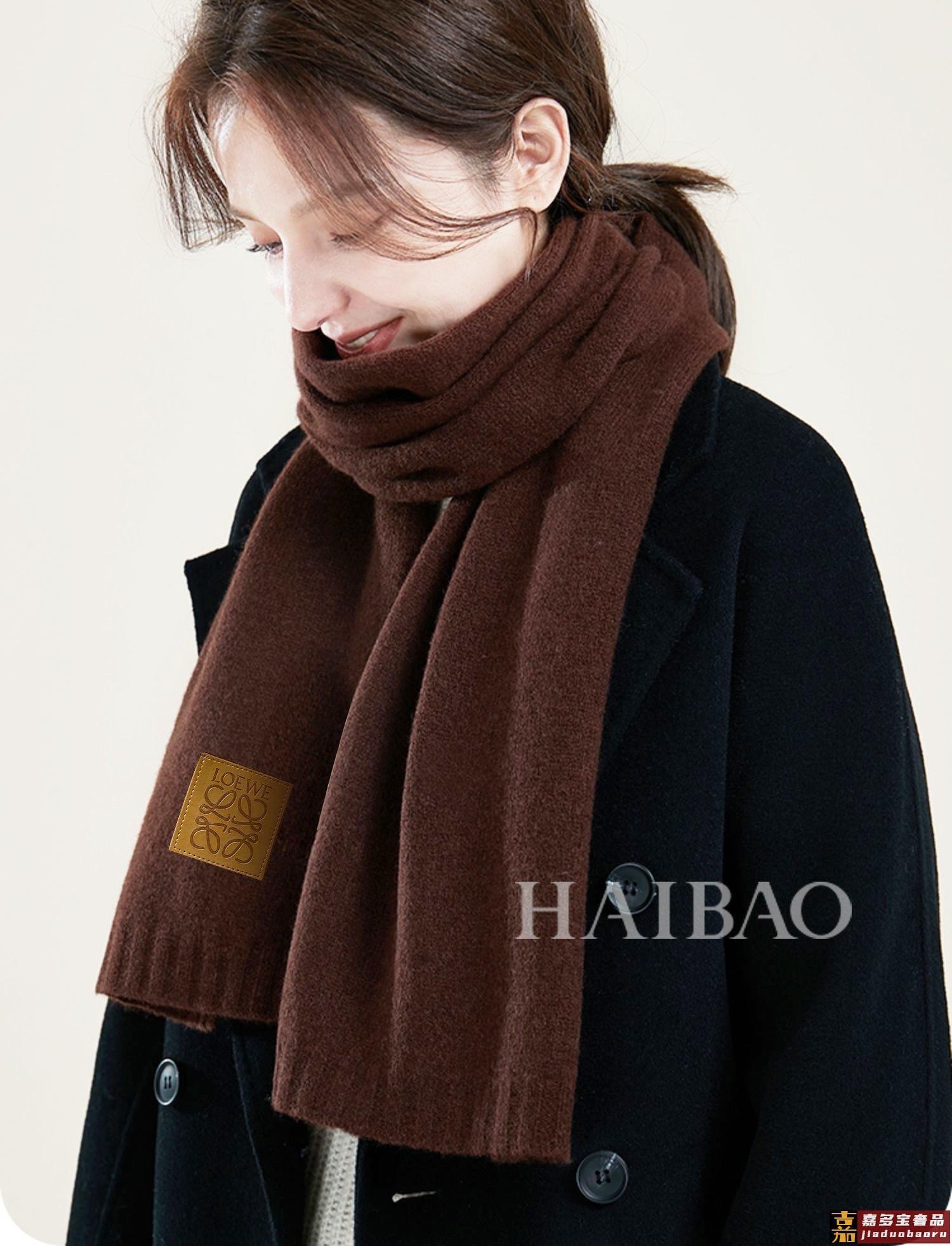 款上罗意威家牛货纯色针织长巾皮标纯色针织毛线围巾真是超极高端