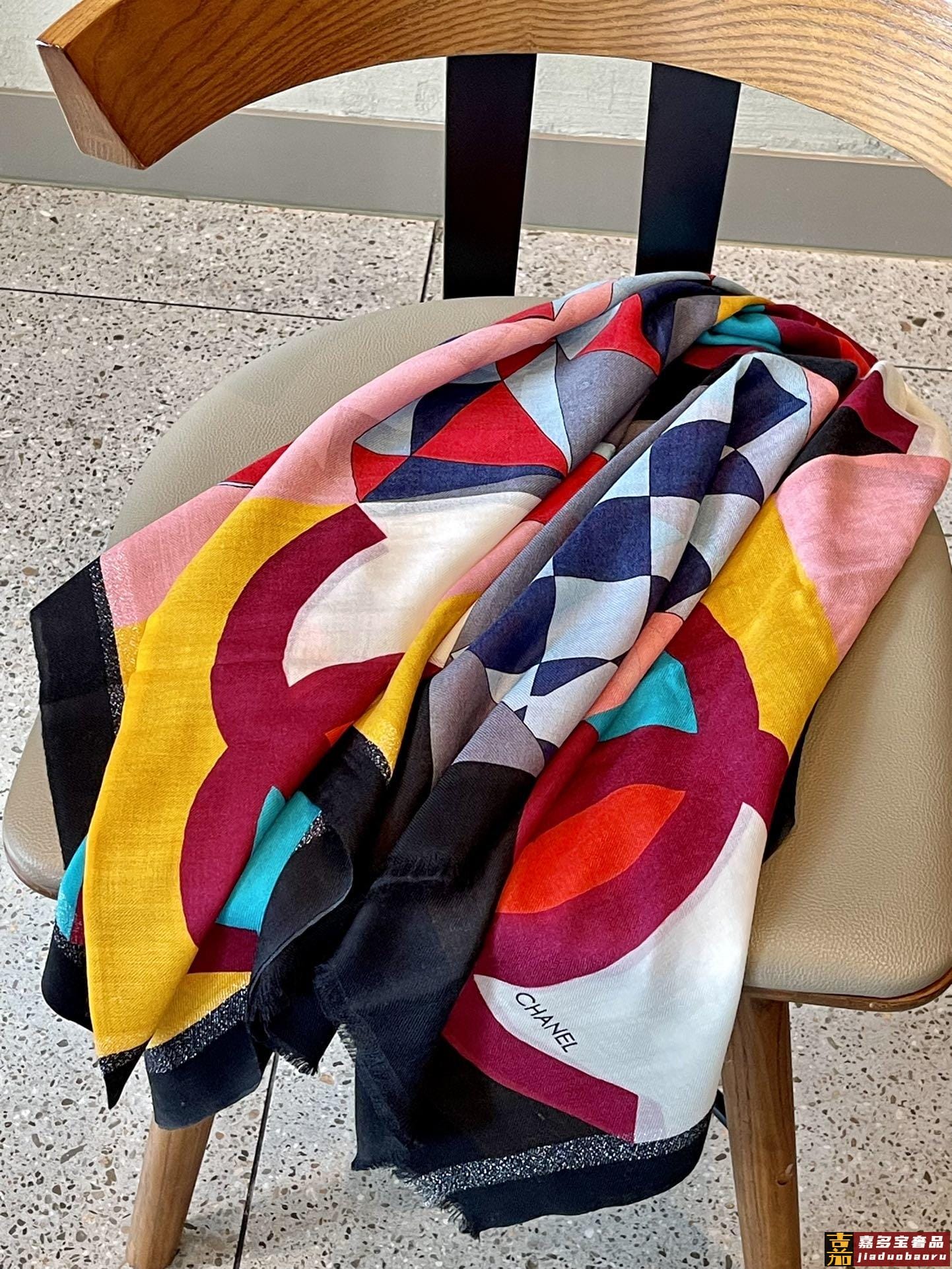 家最新款银丝链条银丝印花长巾度假及日常都非常好搭配的款订一看