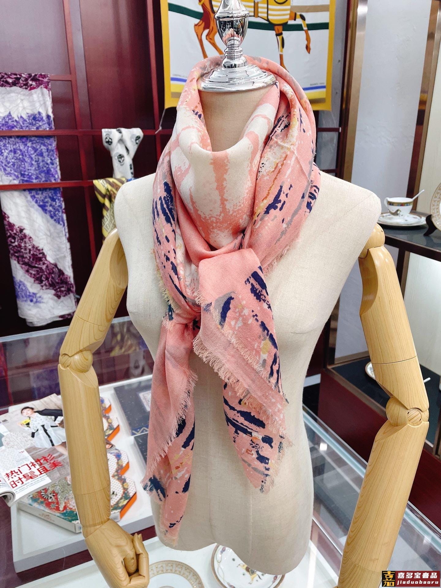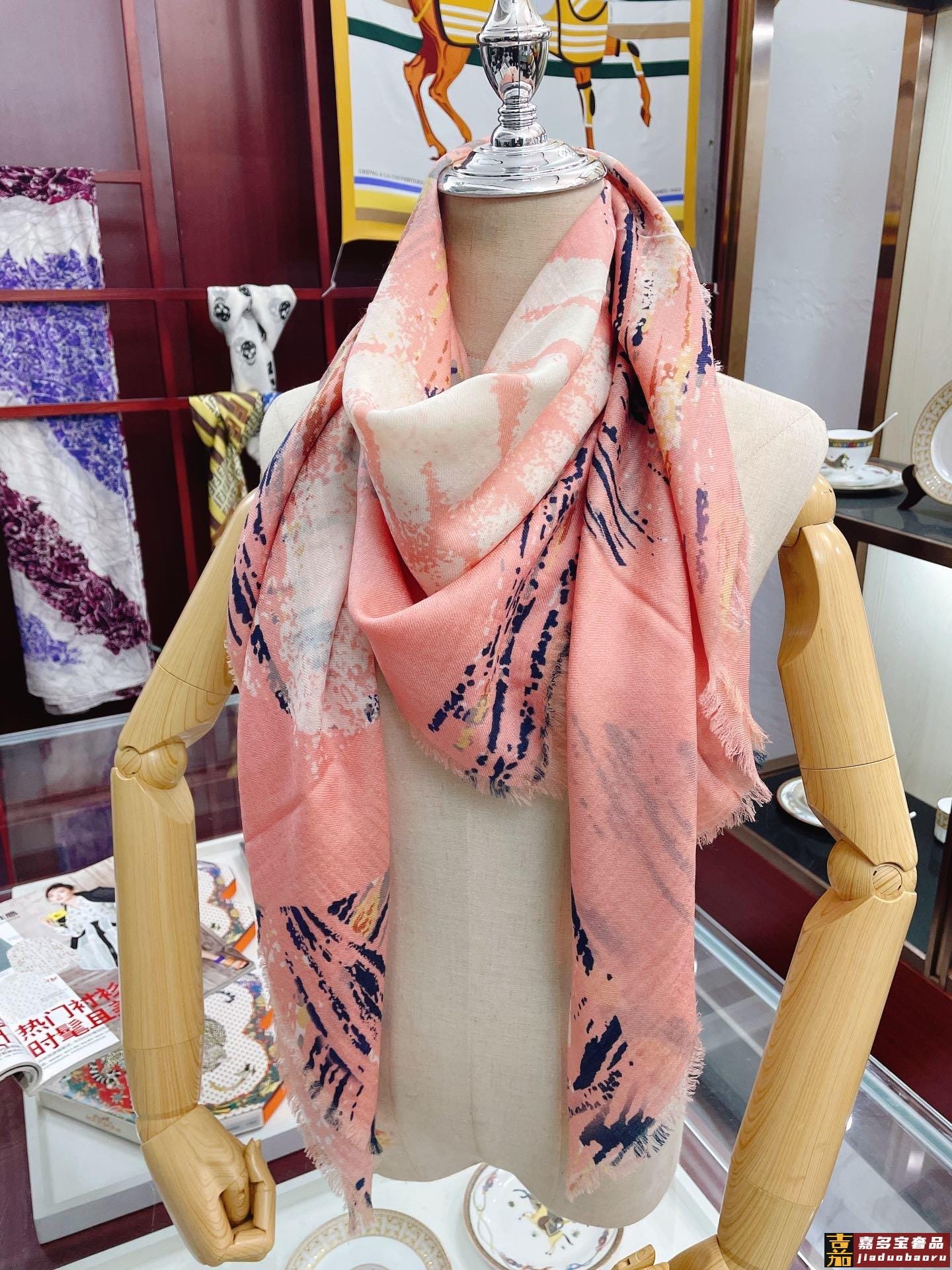 高端羊绒品质专柜新款羊绒长巾佩戴起来优雅华丽透着奢华气质薄厚