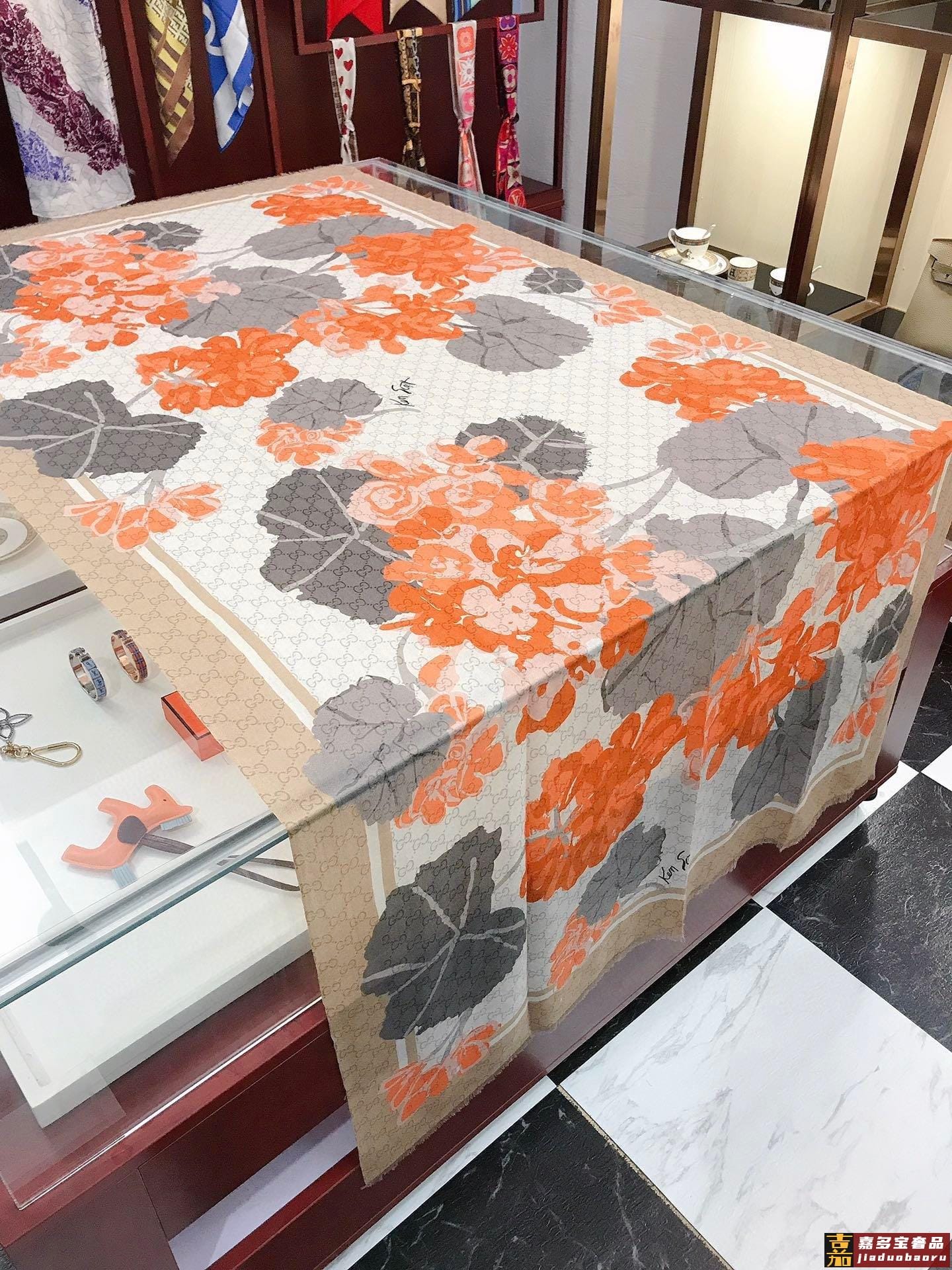 羊绒新款美翻了流泪御用殿堂级极品双色花卉长巾新款专柜在售纯羊