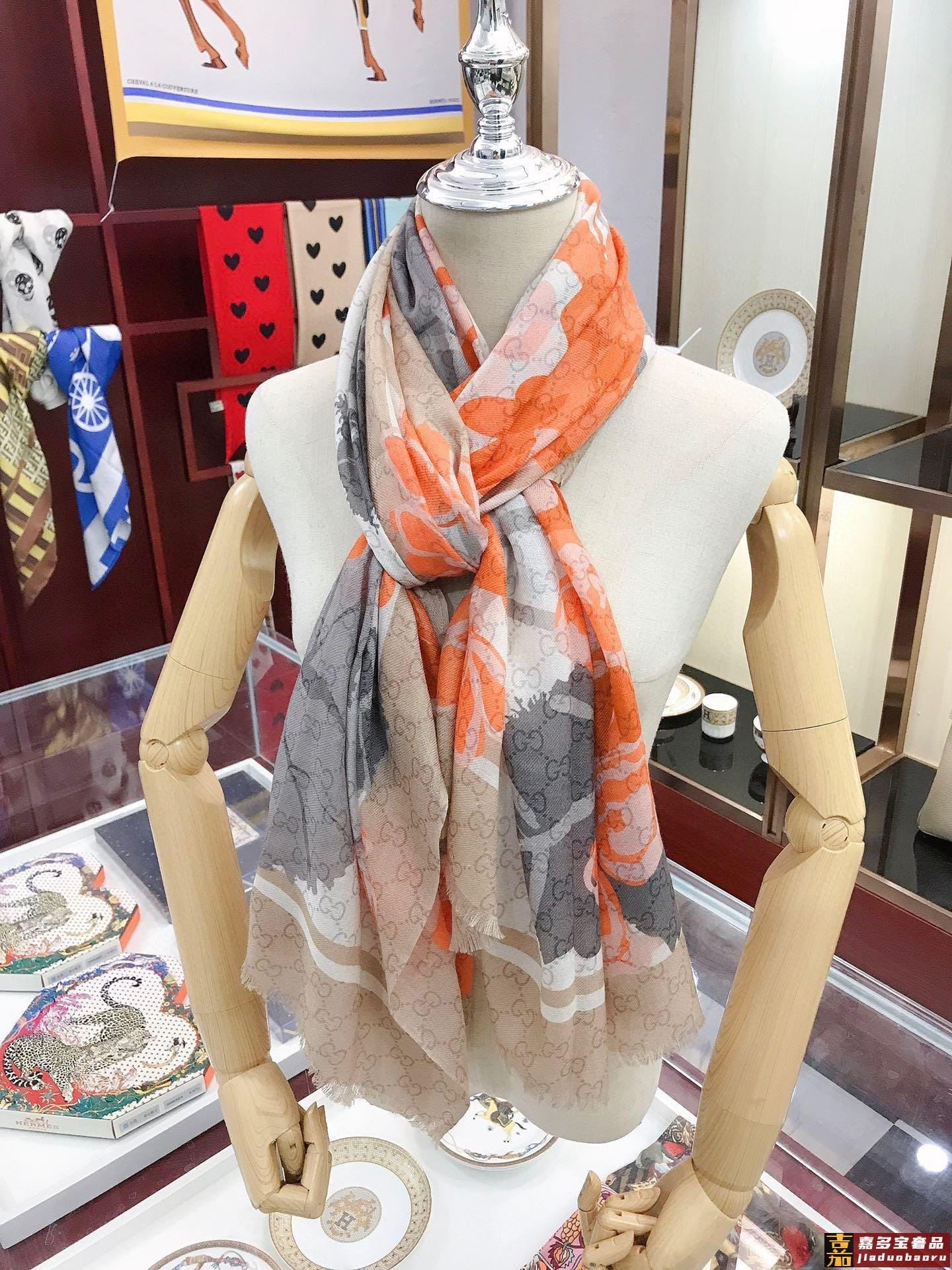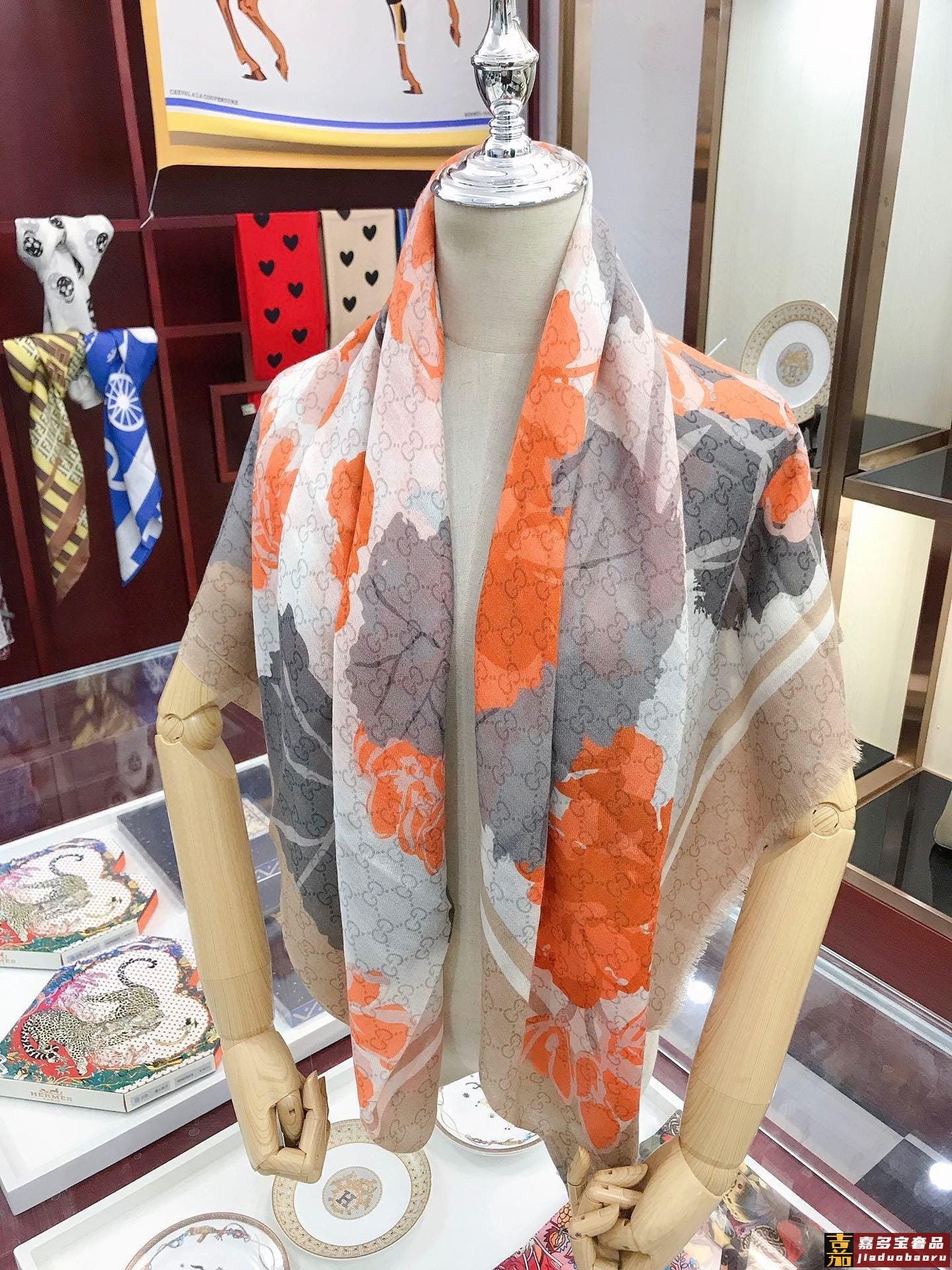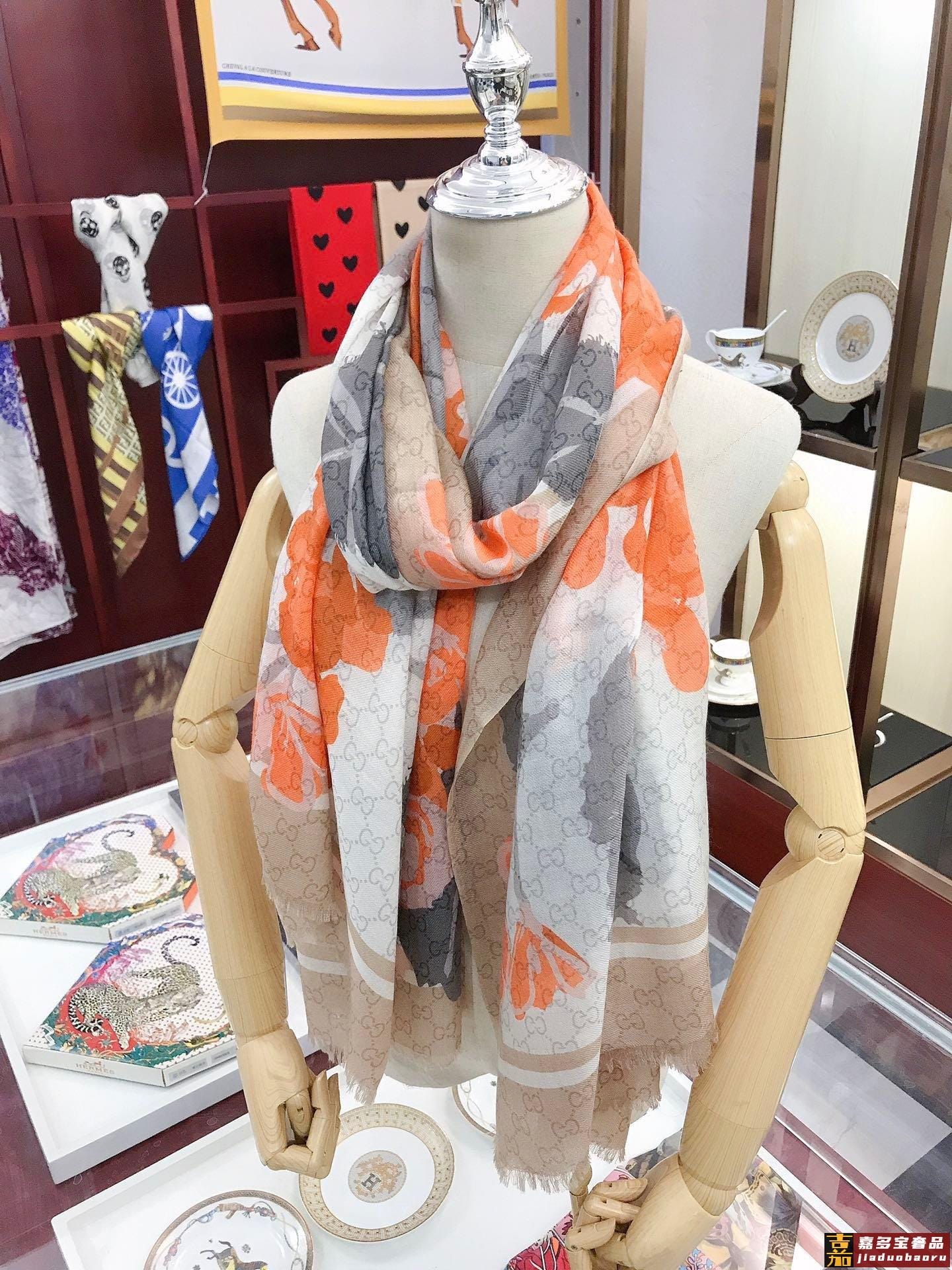 高端羊绒品质专柜新款羊绒长巾佩戴起来优雅华丽透着奢华气质薄厚