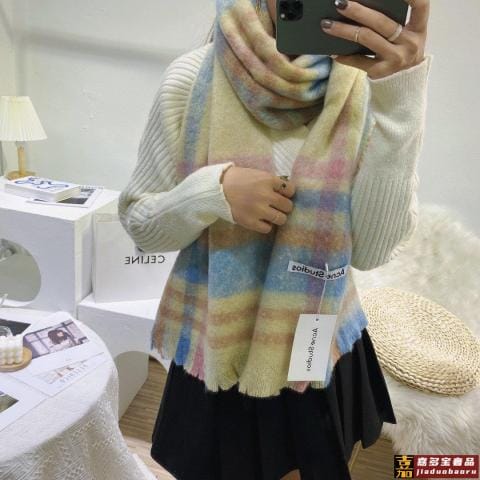 专柜新款同步彩虹格围巾棕格戴上围巾朴素的卫衣一秒钟点亮穿搭呀