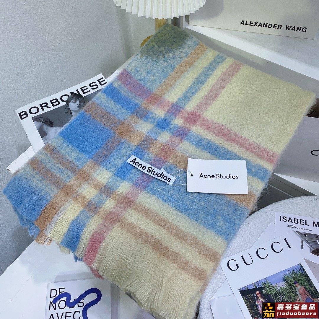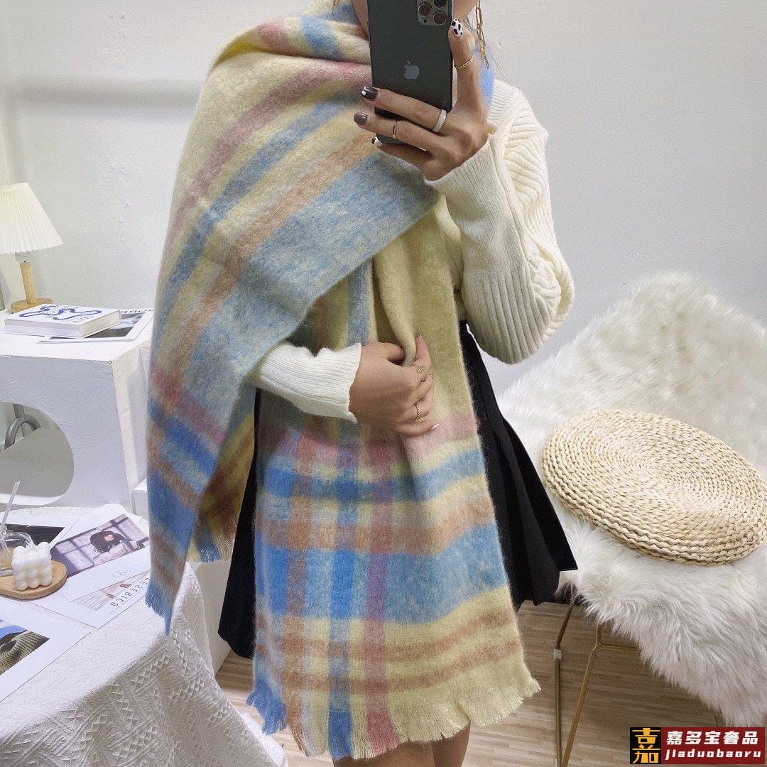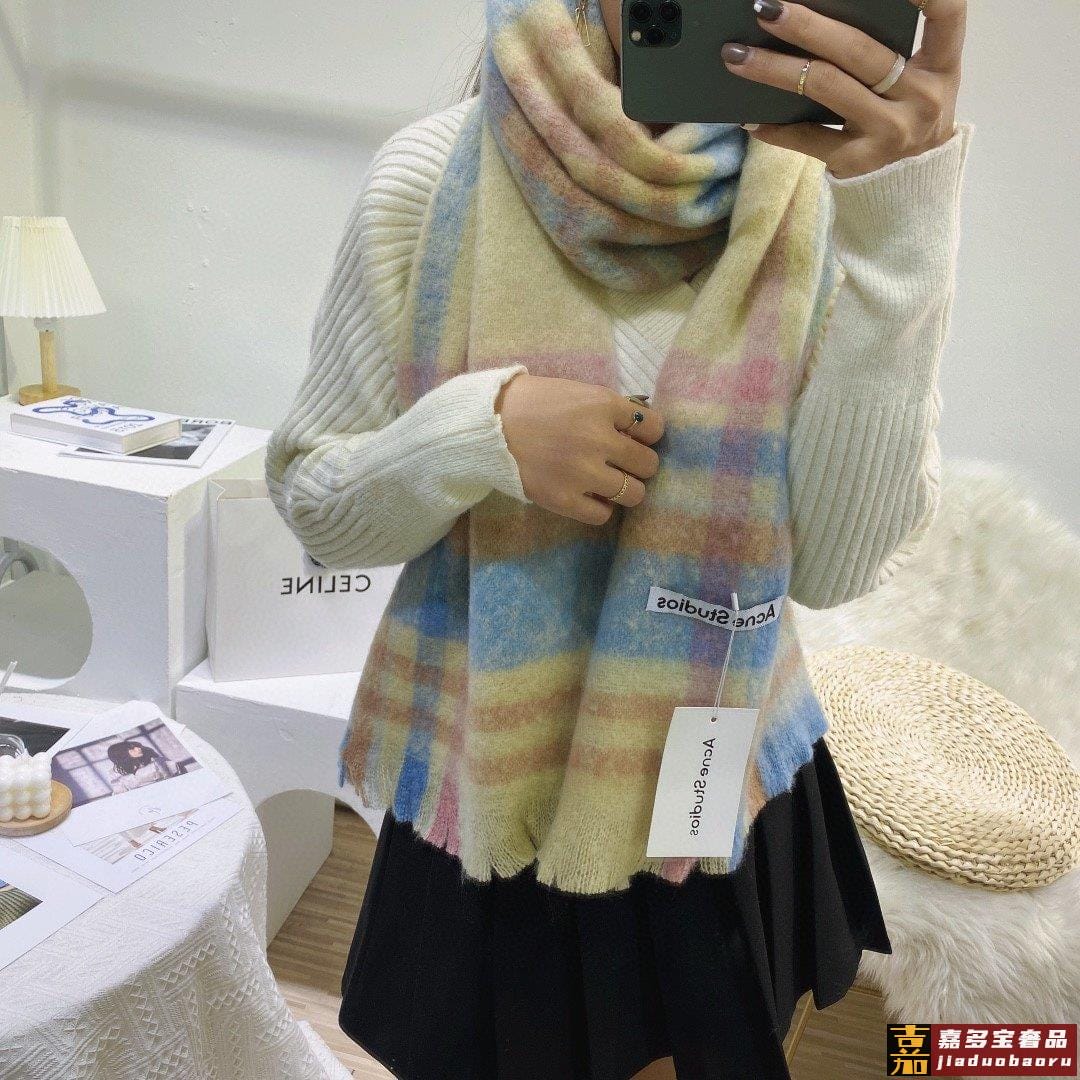 专柜新款同步彩虹格围巾棕格戴上围巾朴素的卫衣一秒钟点亮穿搭呀