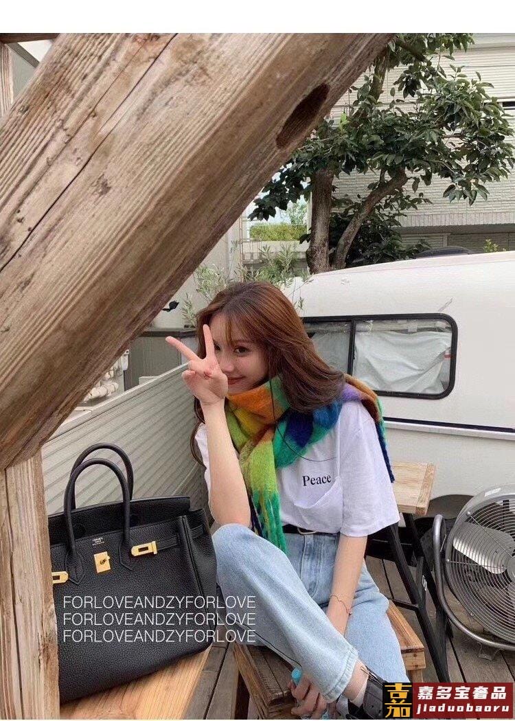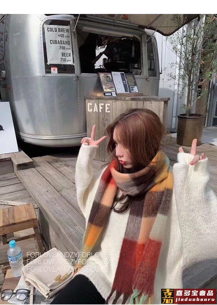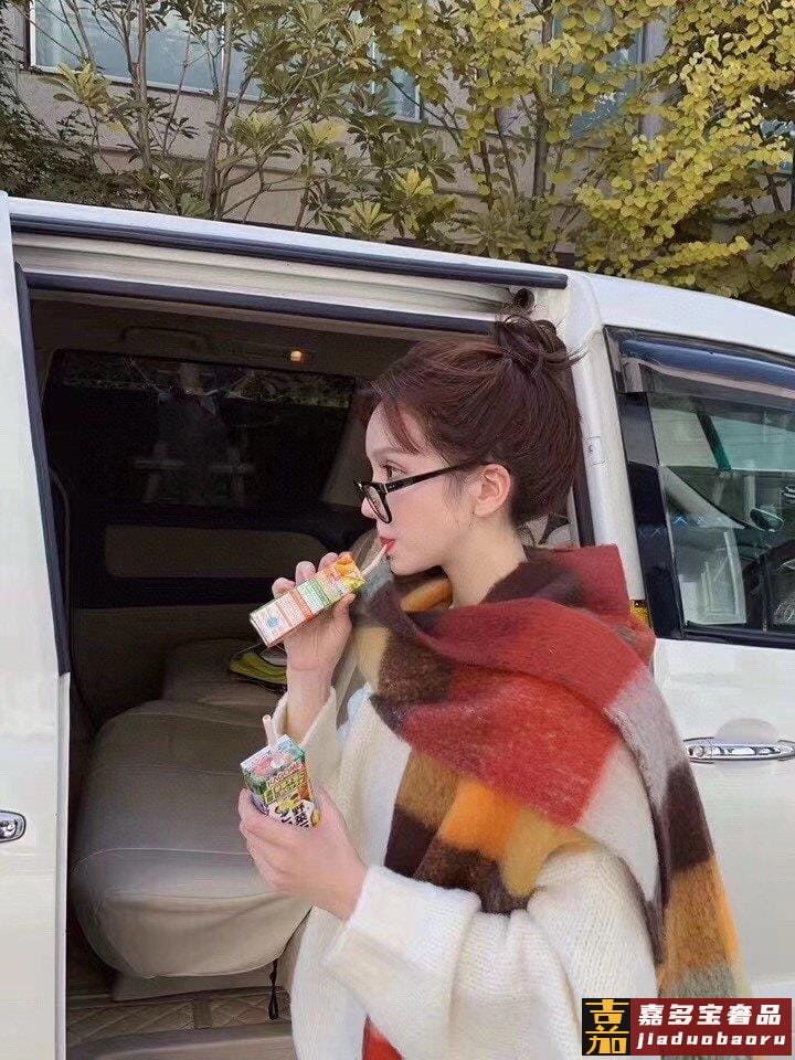 专柜新款同步彩虹格围巾棕格戴上围巾朴素的卫衣一秒钟点亮穿搭呀
