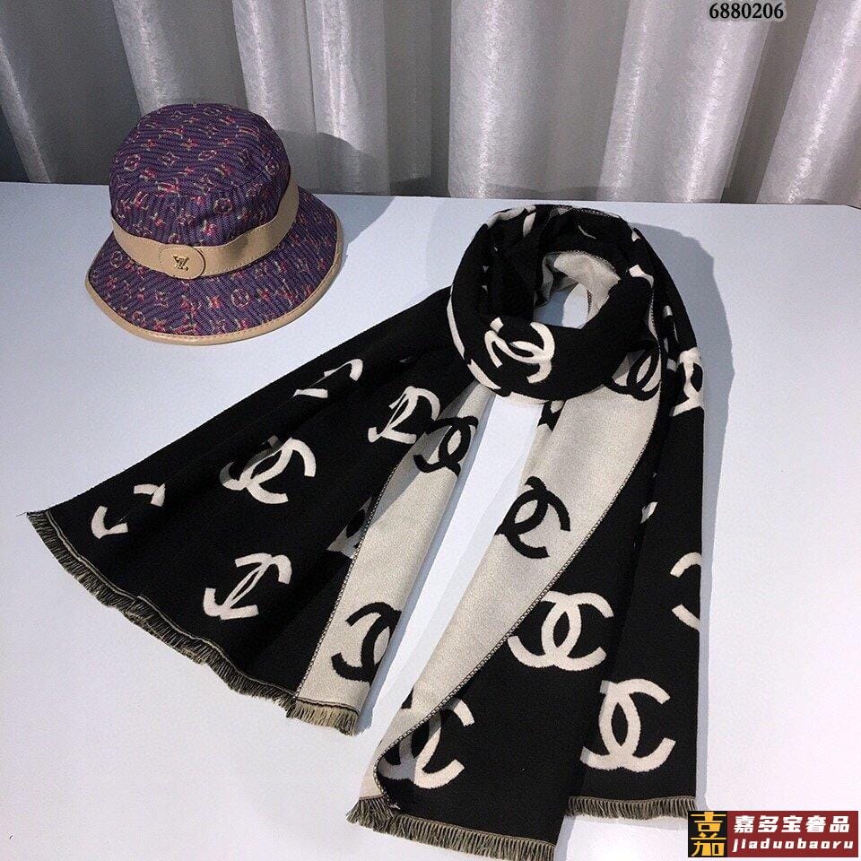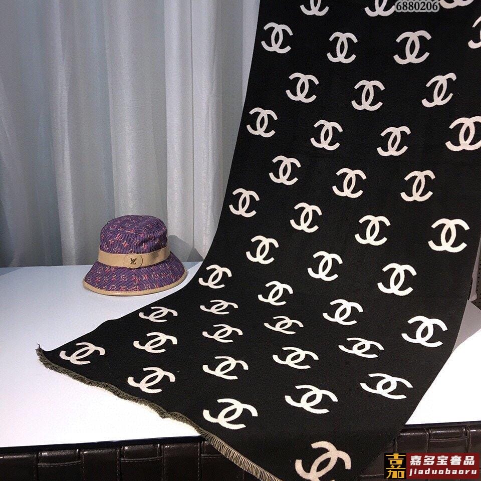 欧版货专营香奈儿新款羊毛小香围巾简单百搭精致刺绣时尚大牌风格