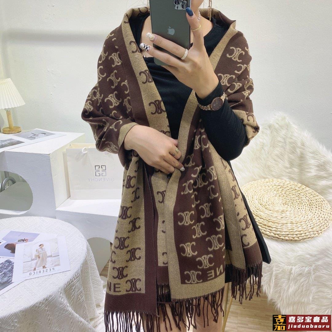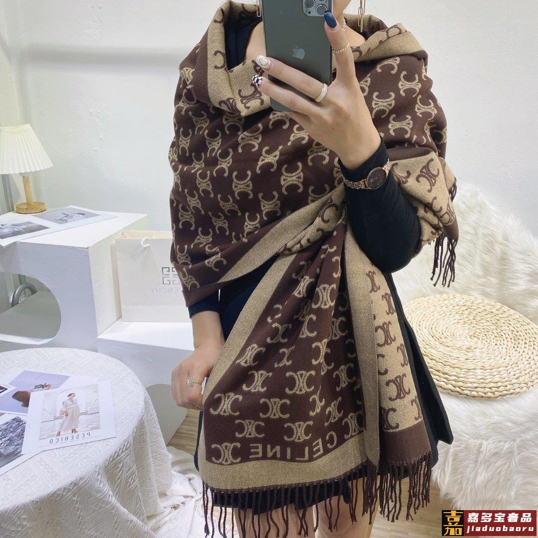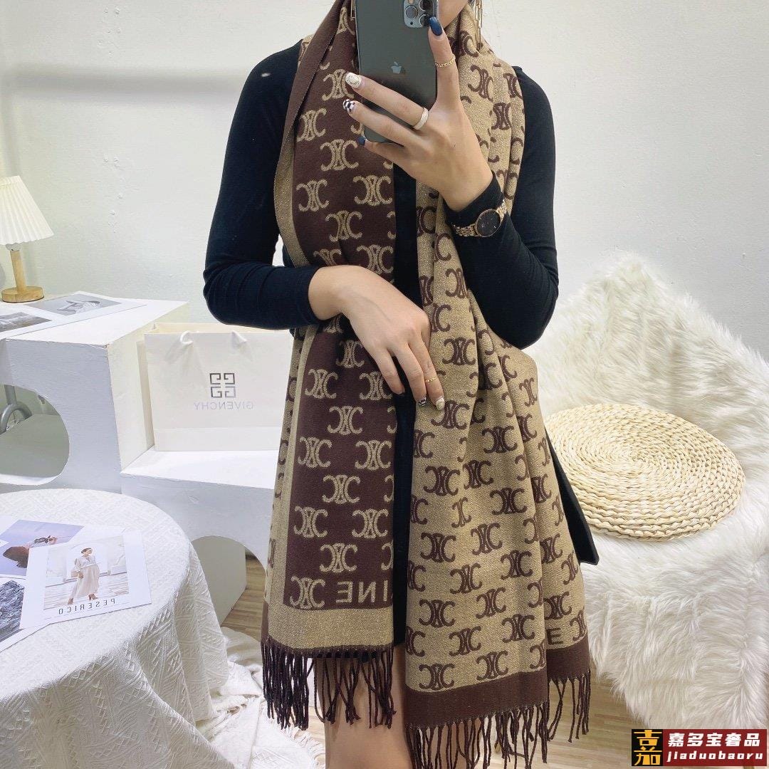 欧版货专营香奈儿新款老花元素仿羊绒字母提花围巾时尚大牌风格做