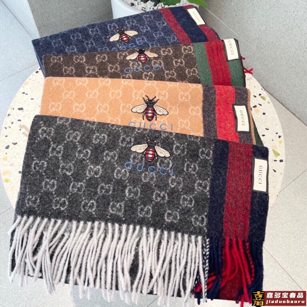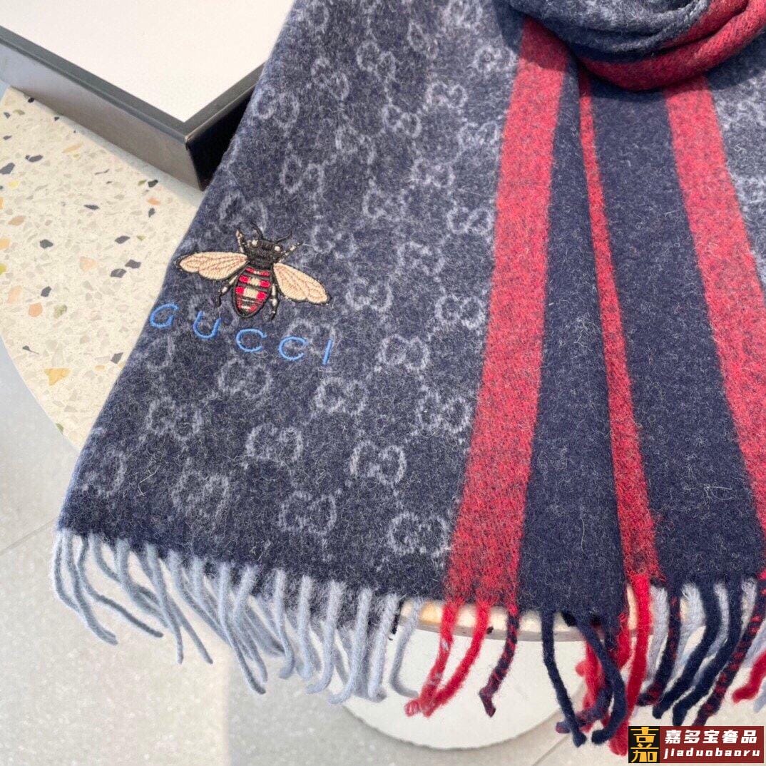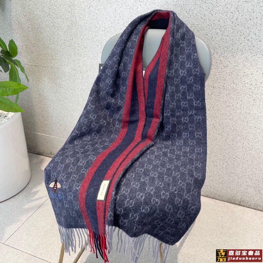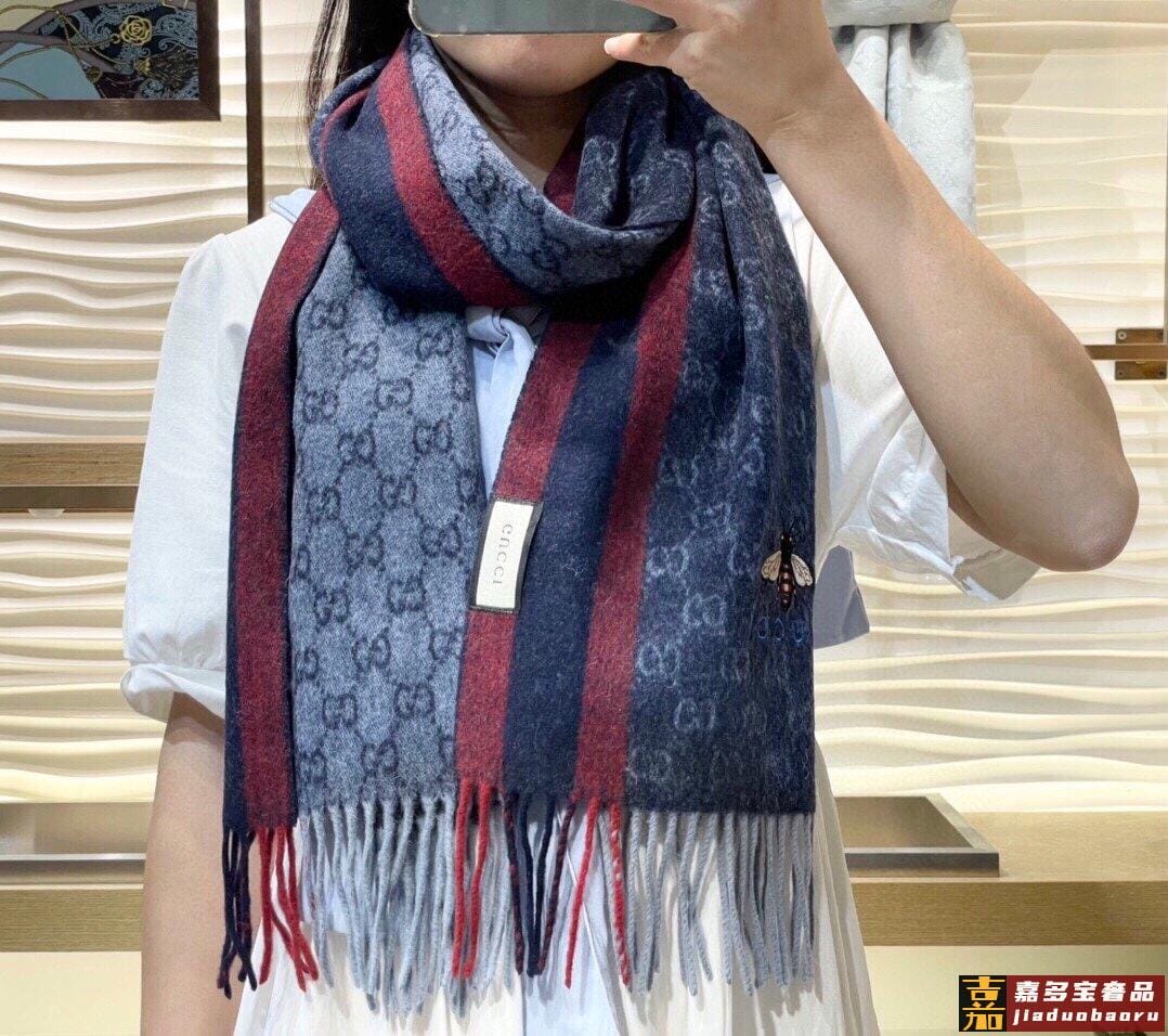 古奇大家经典蜜蜂羊绒围巾今年这个红绿条纹又火了起来众多大牌都