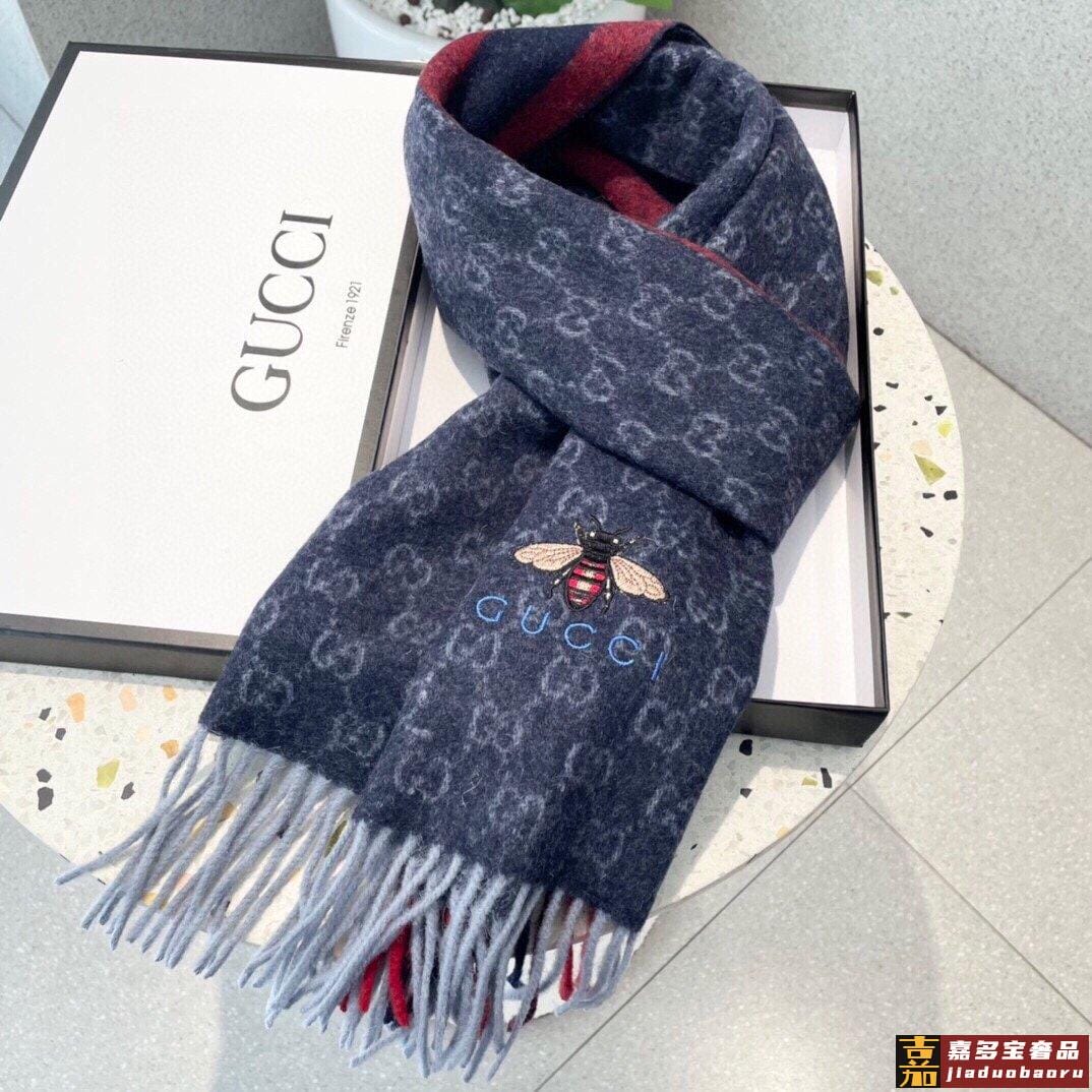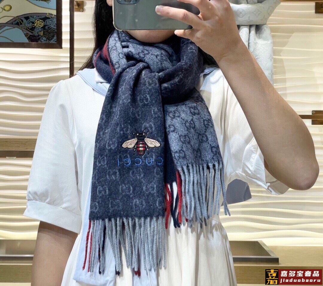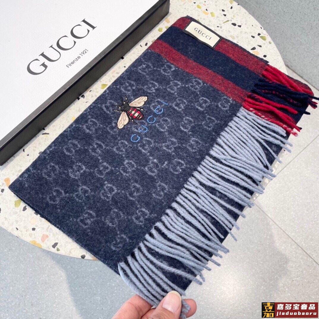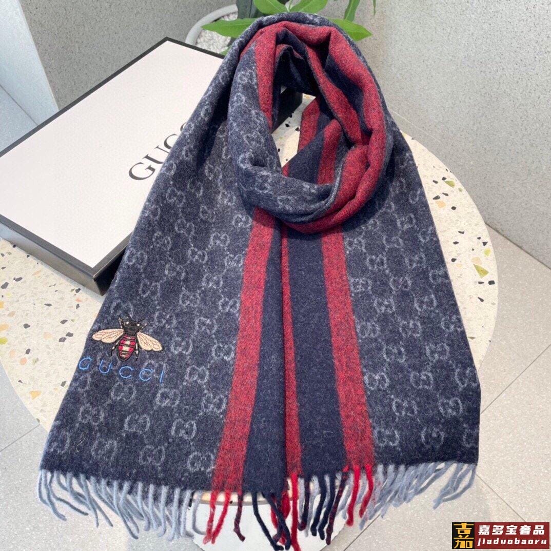 古奇大家经典蜜蜂羊绒围巾今年这个红绿条纹又火了起来众多大牌都