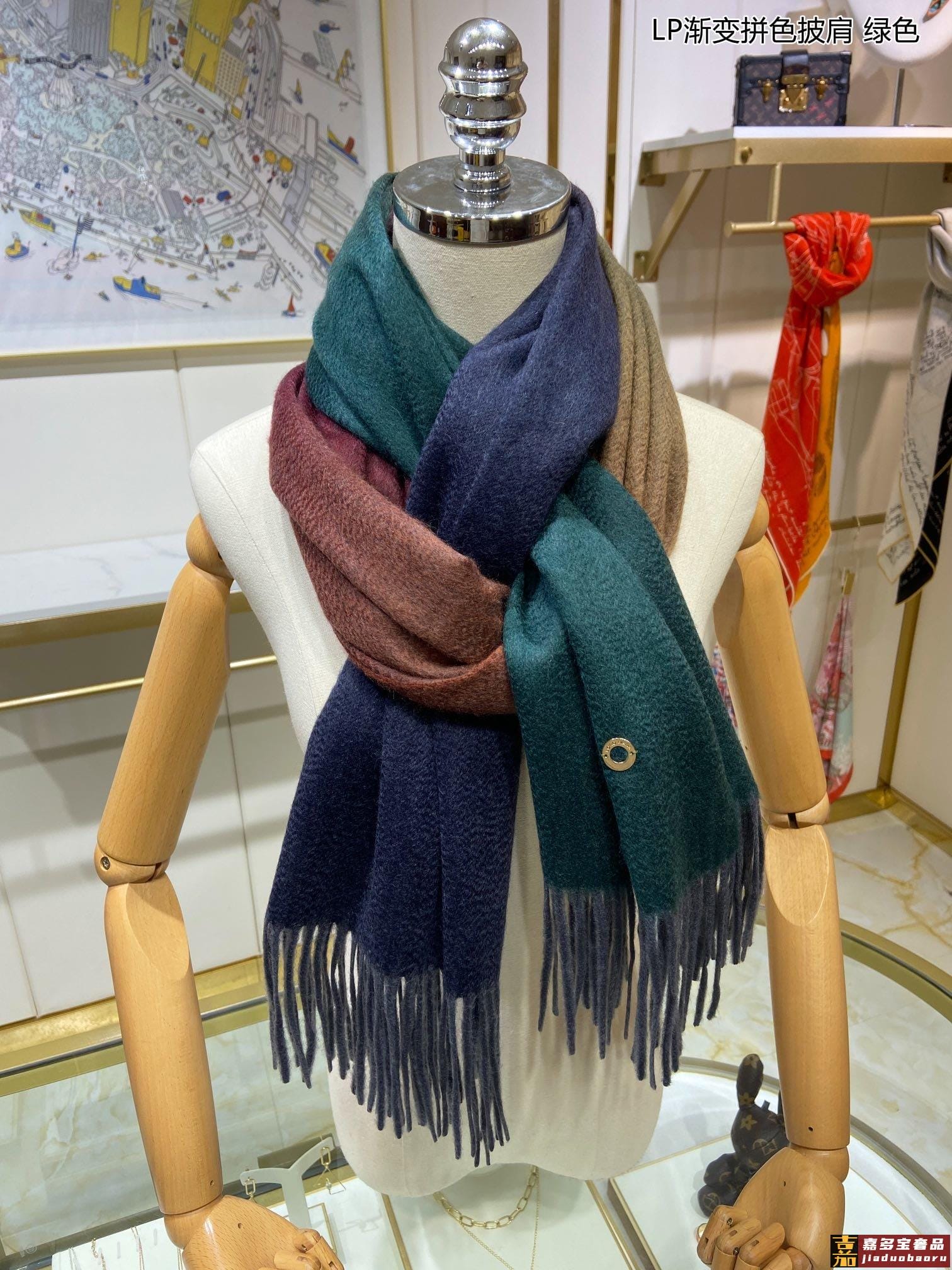 羊绒世家羊绒界的新贵只做最好的皮雅娜秋冬专柜新款渐变拼色披肩