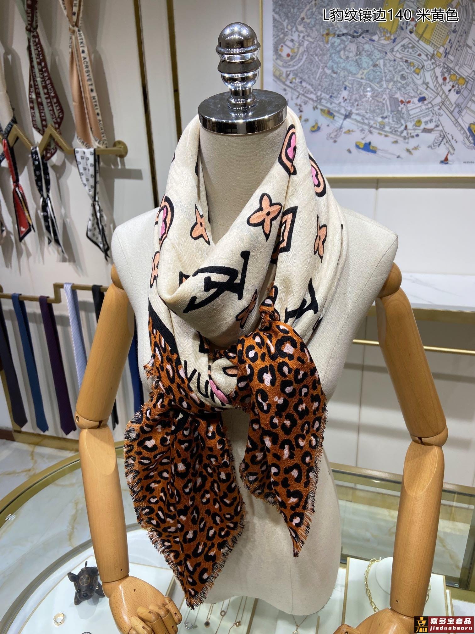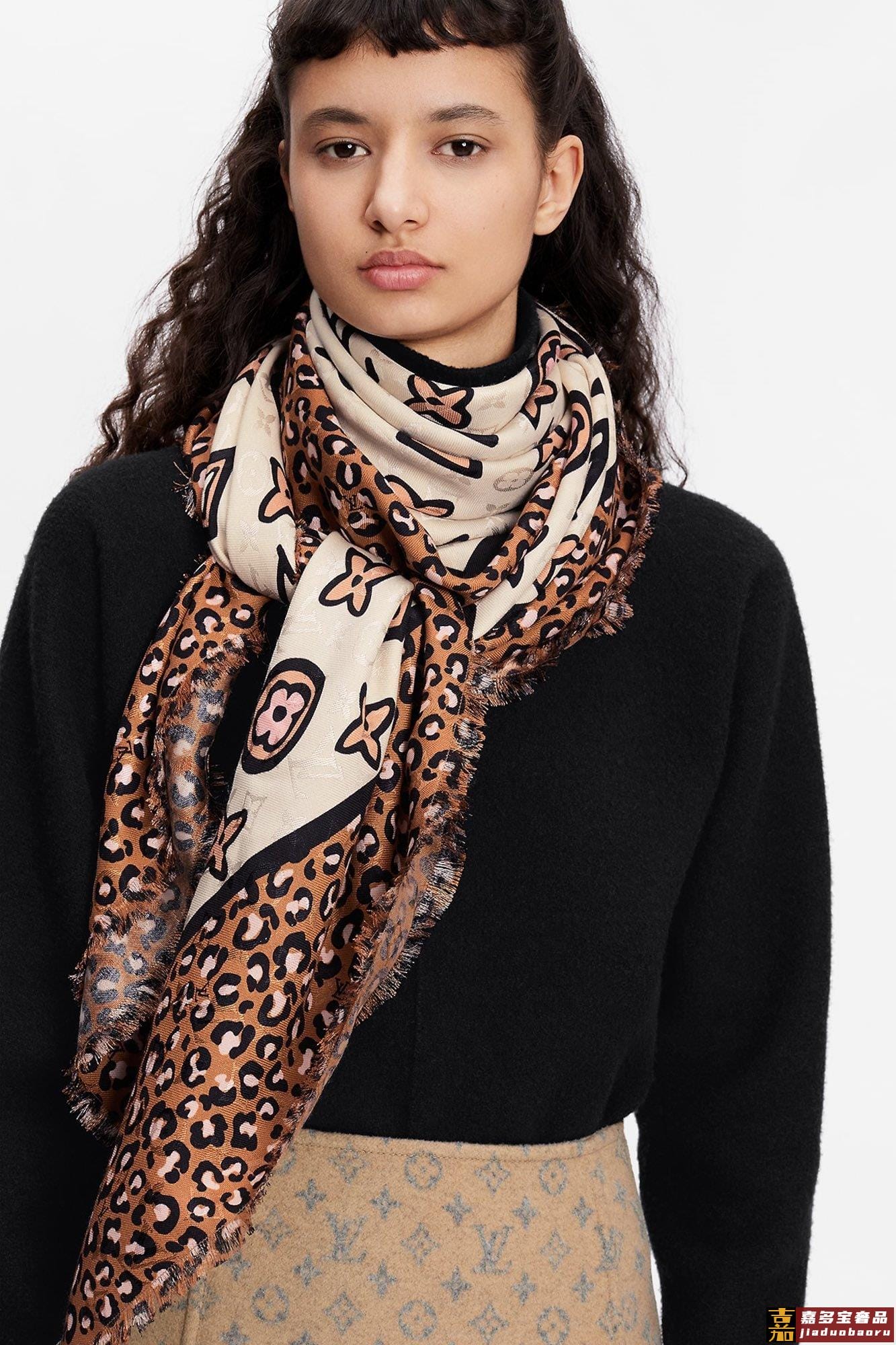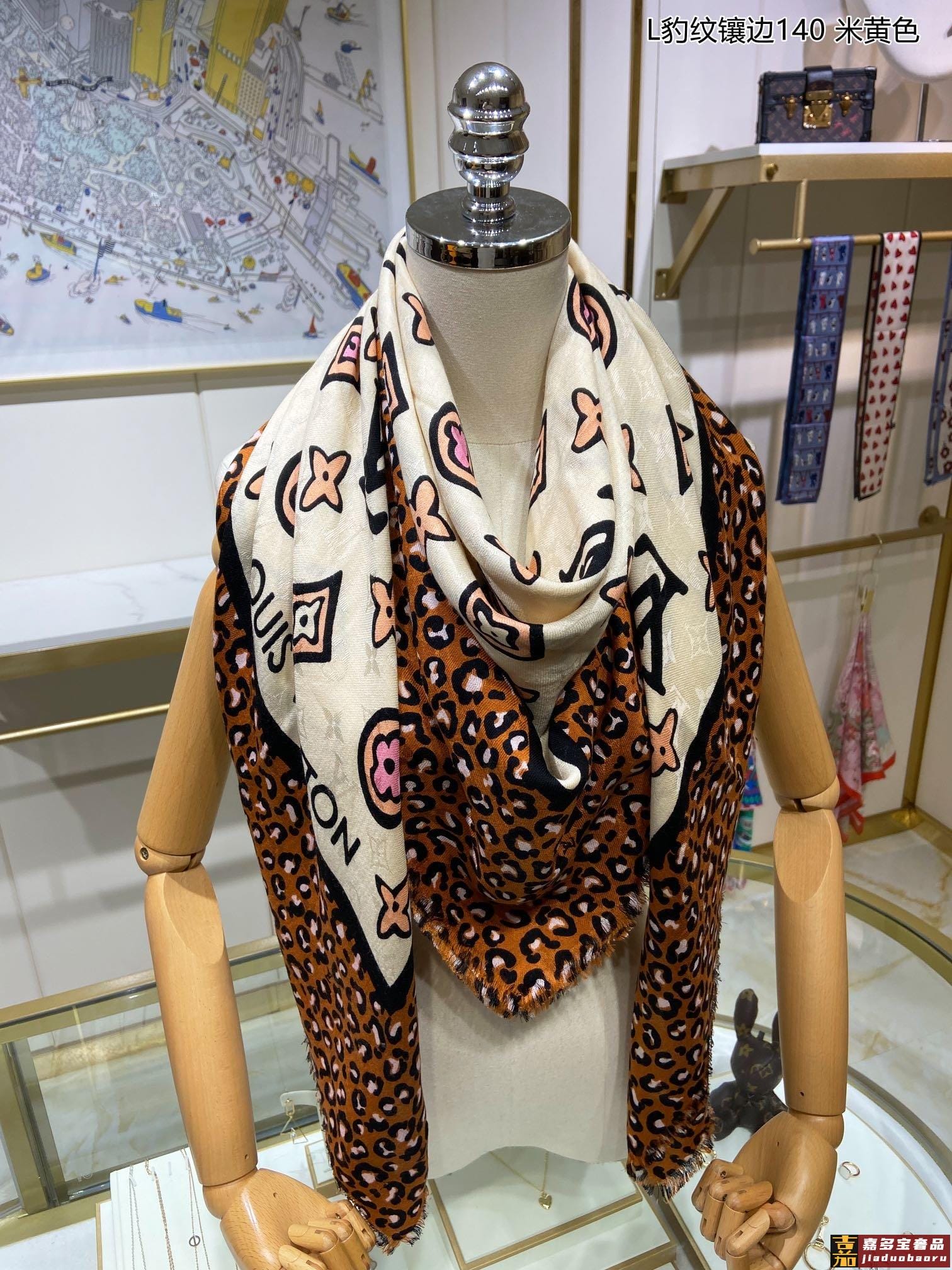 新美极了驴家豹纹镶边提花羊绒方巾披肩取材柔滑丝绒混纺以丝印工